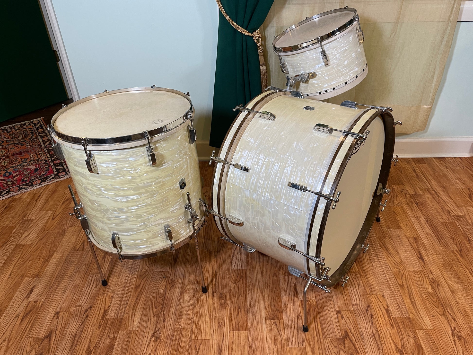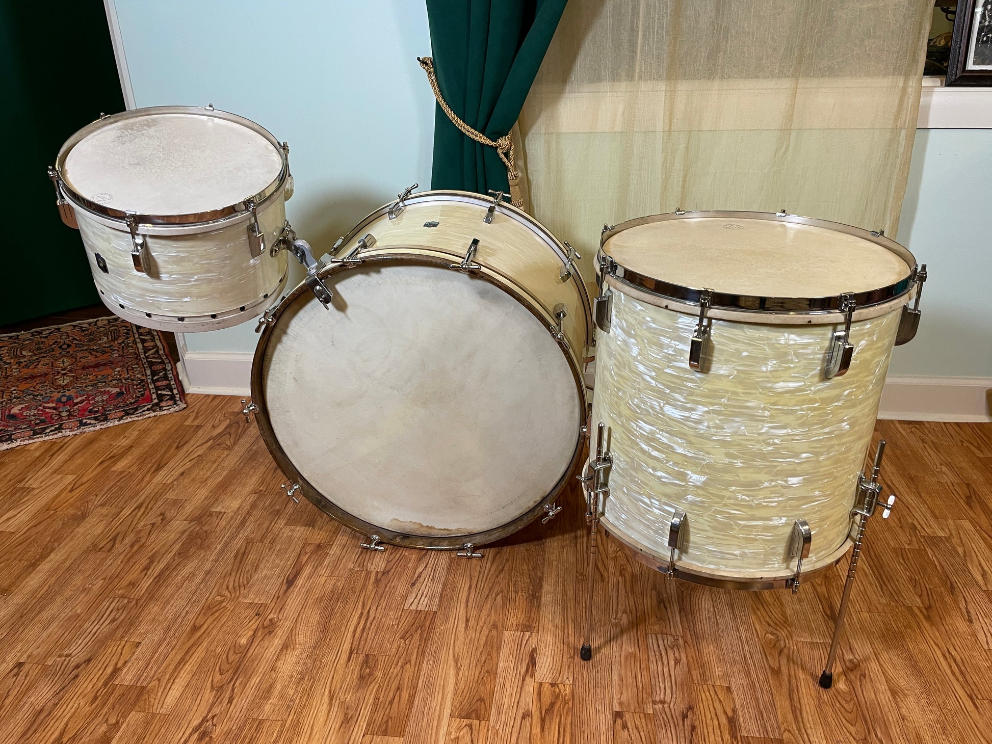 1940s Leedy Drum Set White Marine Pearl 24/13/16