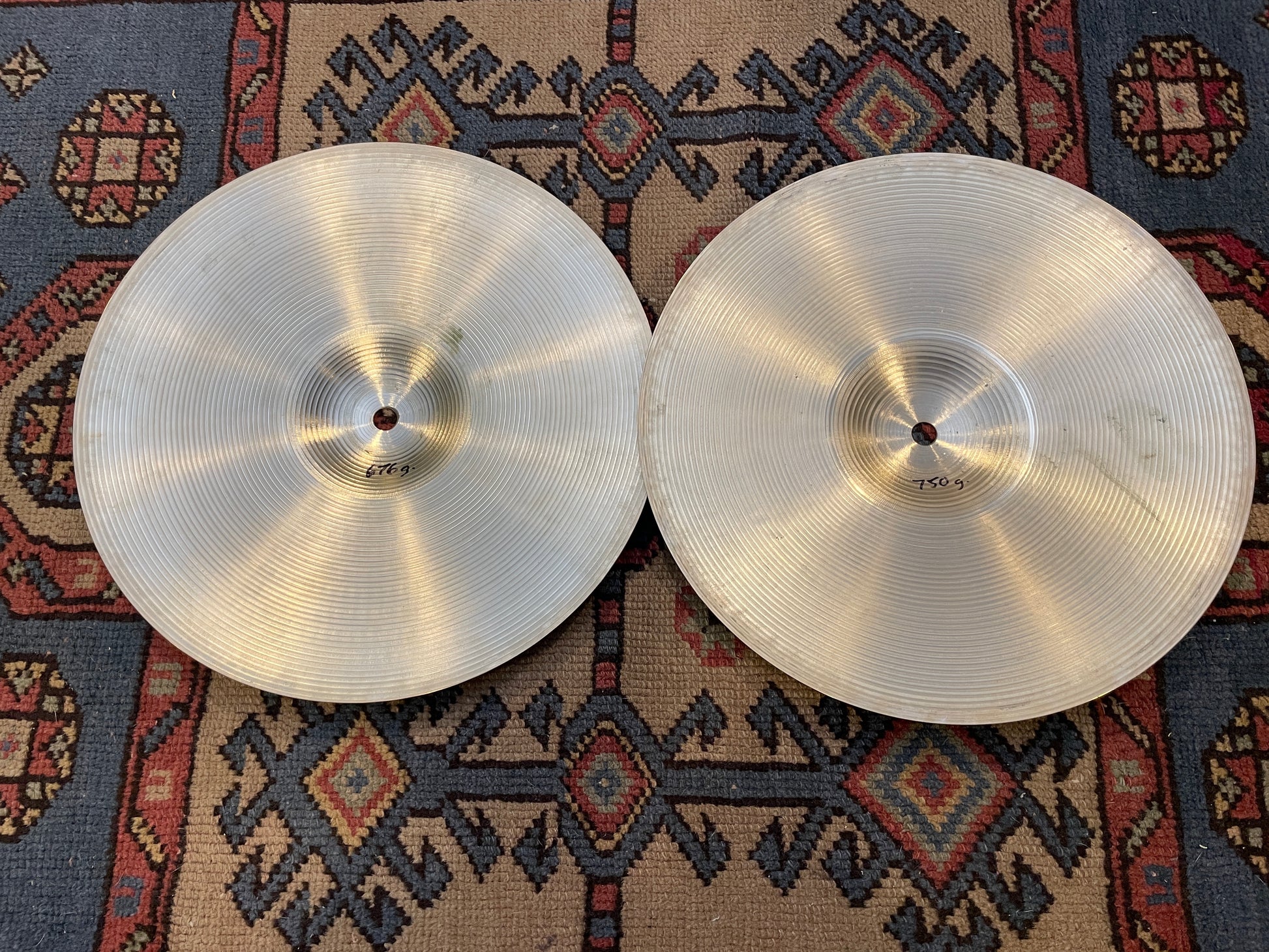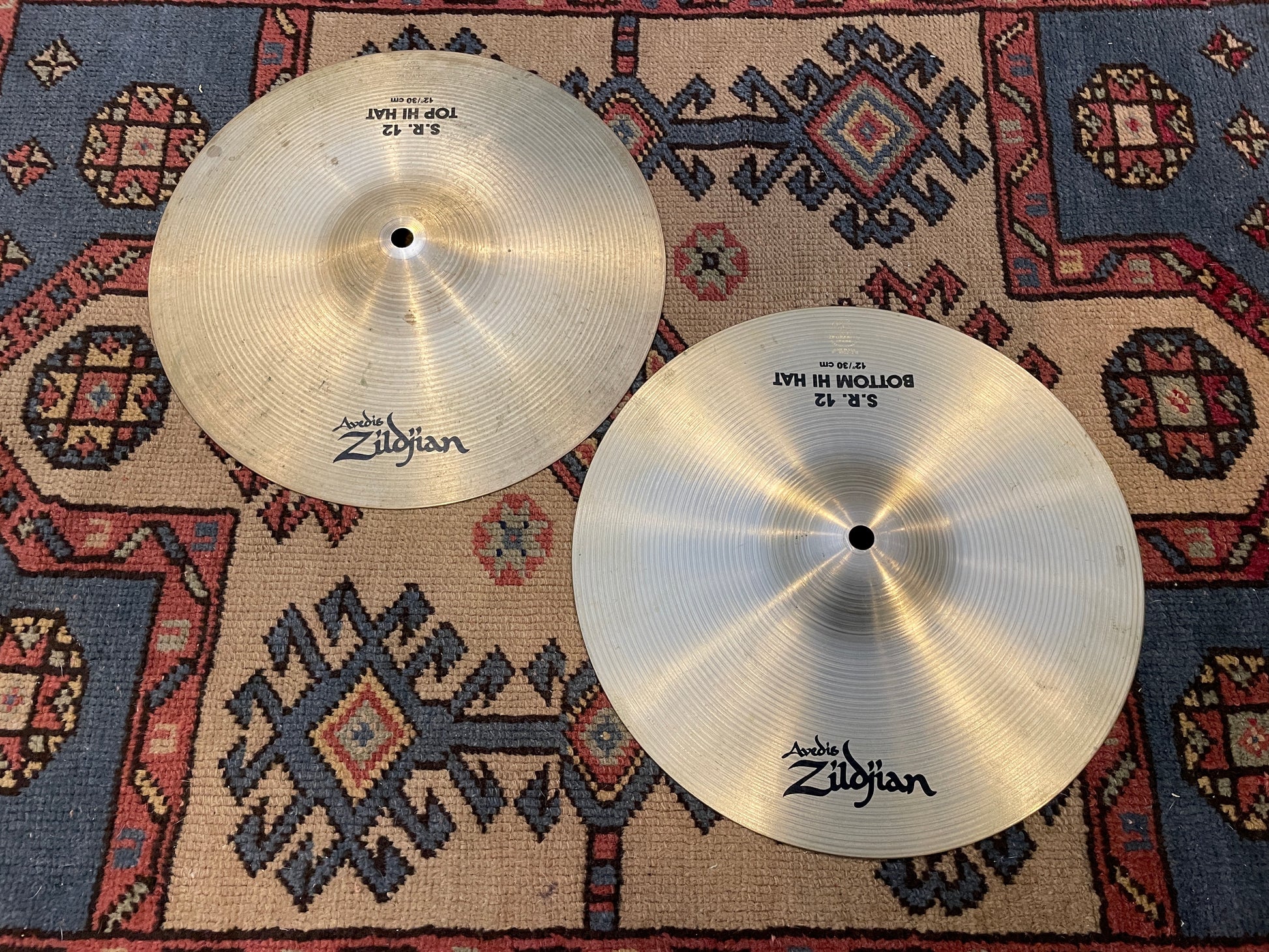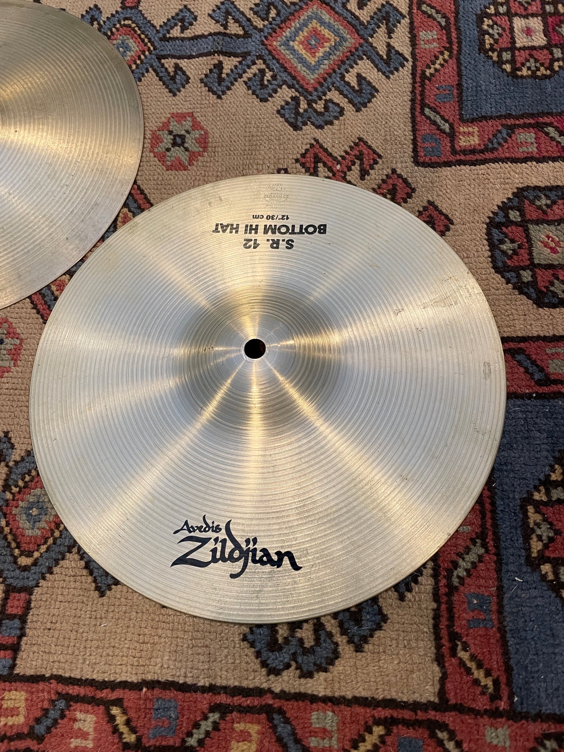 For your kind consideration is this 12" set of Zildjian A S.R. (Studio Recording) hi-hats. They're in good condition and sound fantastic. These don't come up very often so make your move. No cracks, bends, flea bites, or keyholes. Weighs in at 676 & 750 grams. Enjoy!