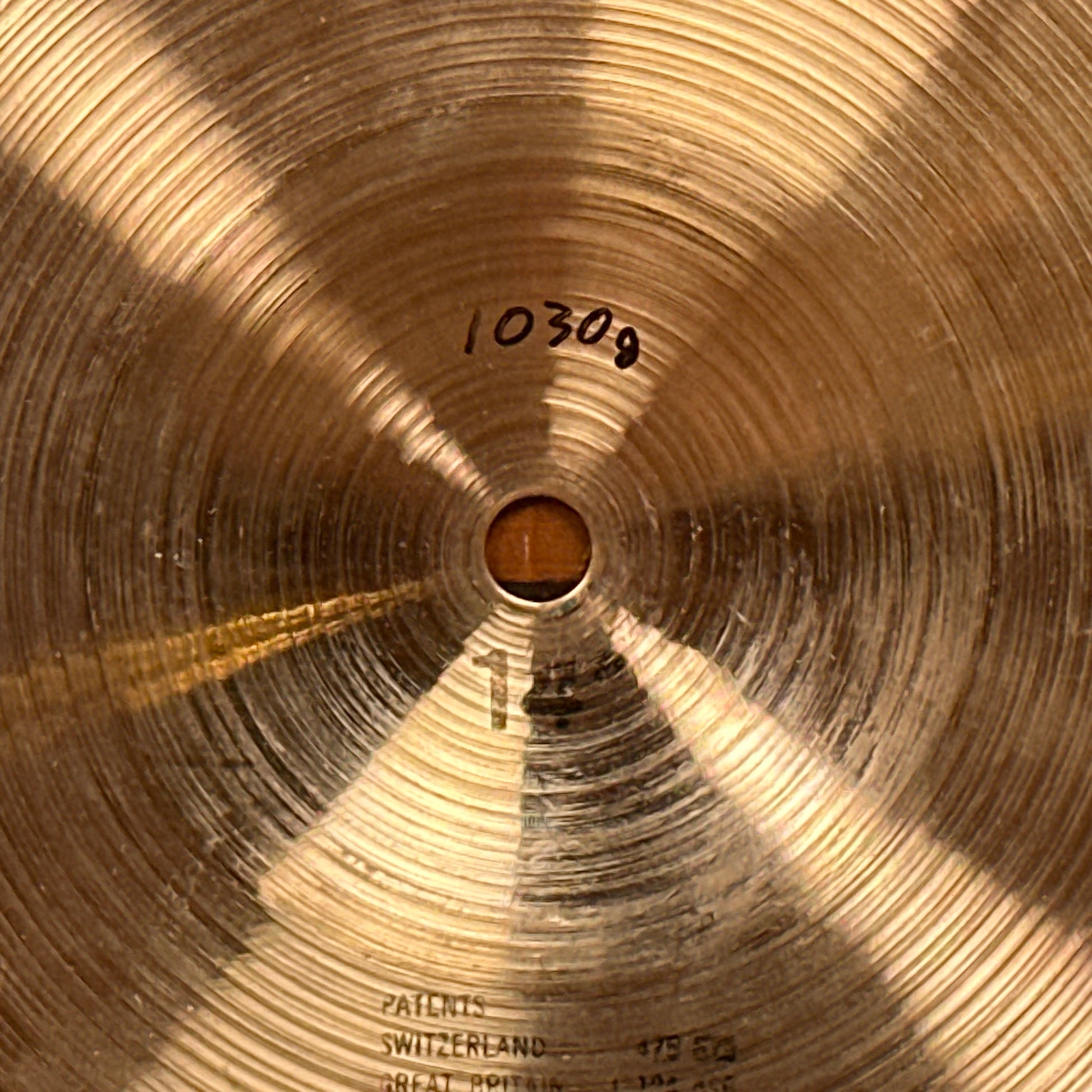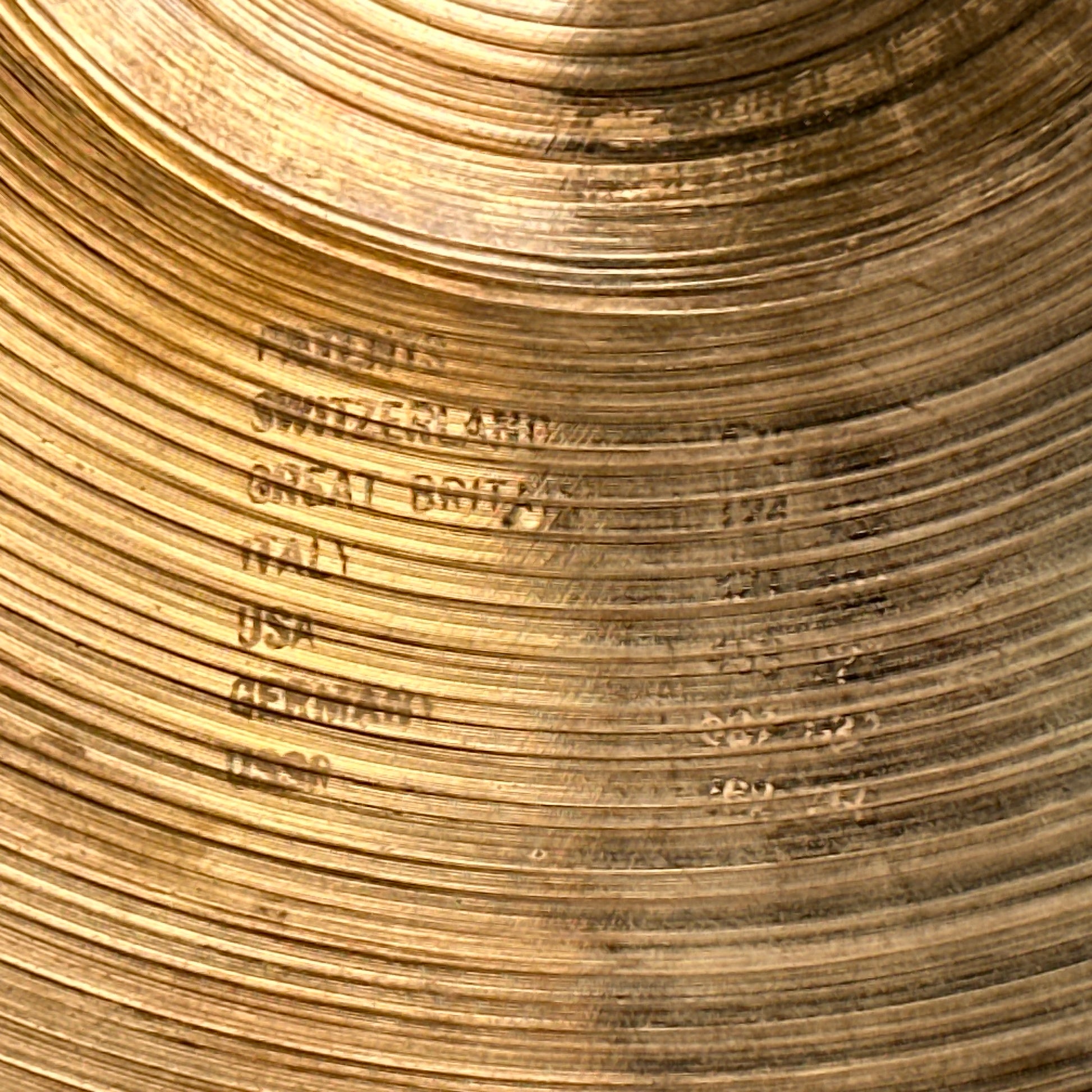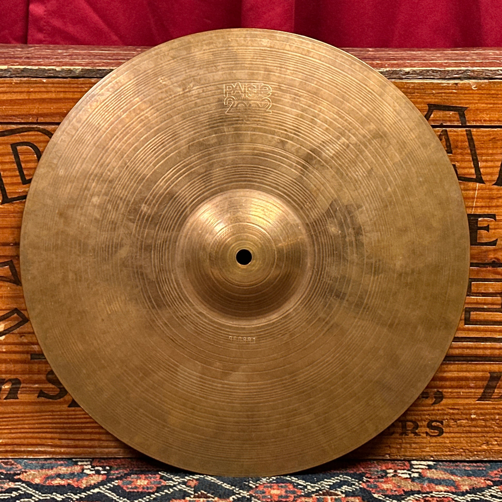 For your prime listening and viewing pleasure is this vintage 14" Paiste 2002 Sound Edge hi-hat cymbal pair. These black label 2002s were made in Switzerland in 1979 based on the consecutive serial numbers. They're in great condition with a patina on top and the original patent number ink stamp on the clean bottom. Sound Edge hi-hats were massively popular in the 1970s and were played by so many of the greats including Bonham. Take a listen to our demo video and you'll recognize the classic Paiste sound. The waved edge of the bottom cymbal gives extra clarity to the chick sound. They have nice stick definition, project without being too loud, and sound great recorded. No cracks, bends, flea bites, or keyhole. These weigh in at 950 grams on the top and 1030 grams on the bottom. Enjoy!