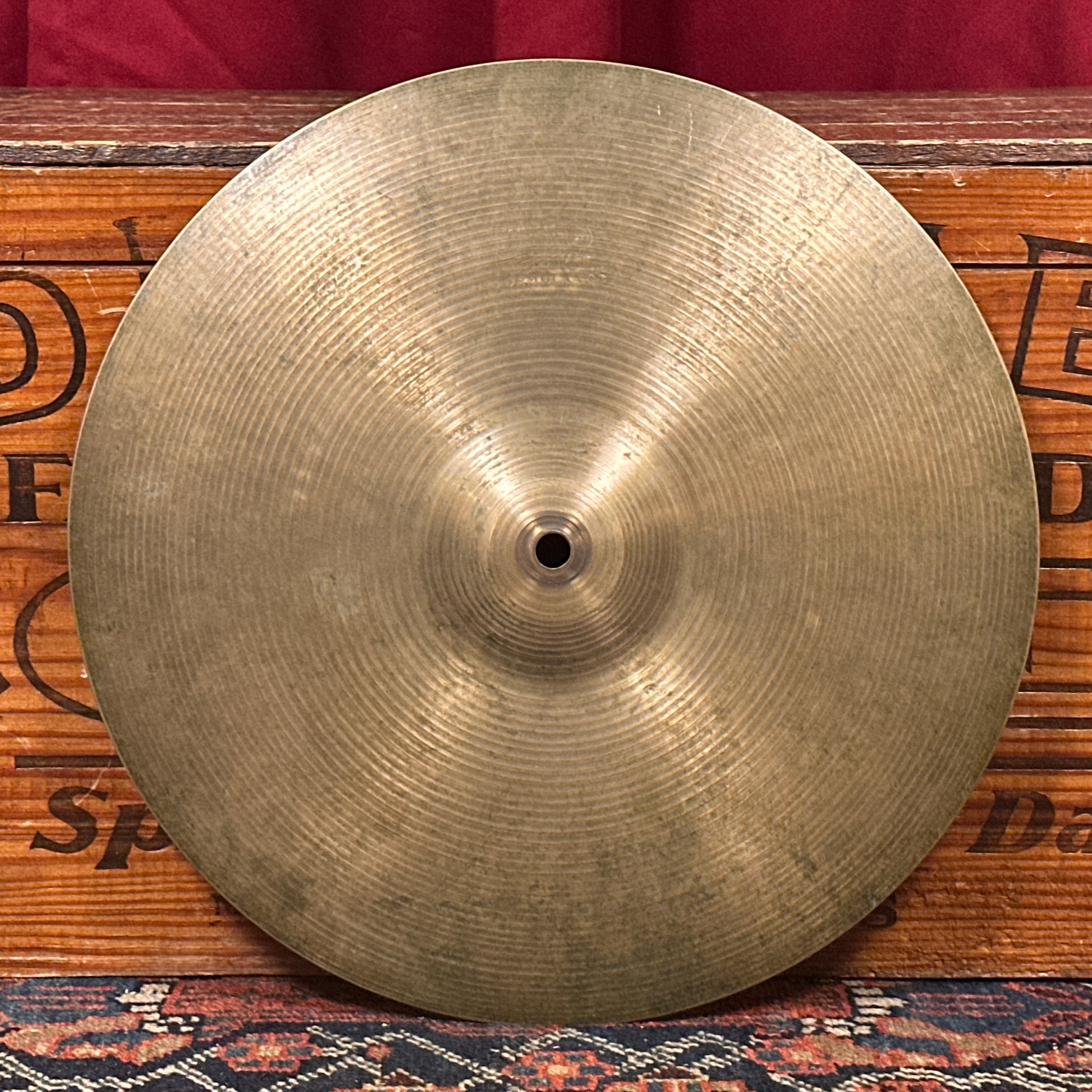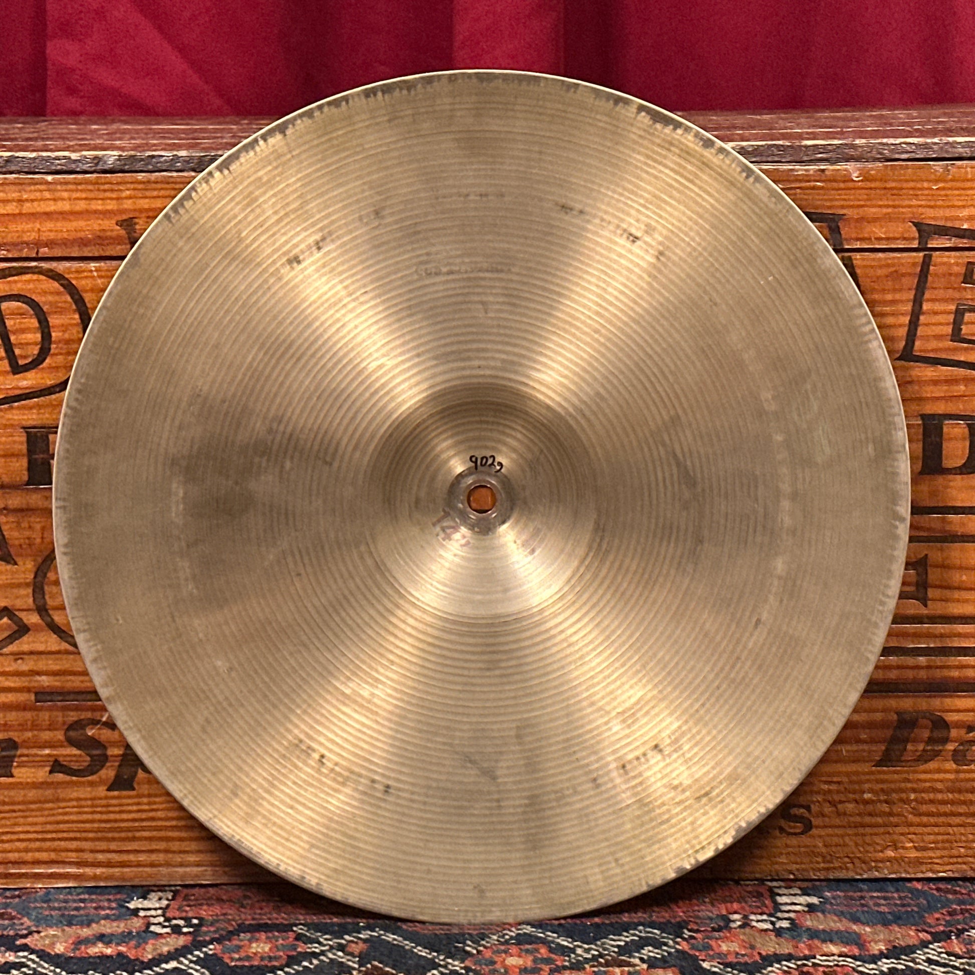 For your kind consideration is this vintage 14" Paiste Formula 602 pre-serial hi-hat single cymbal. It's in great condition with a strong patina. This pre-serial B20 cymbal was made in Switzerland with the classic Formula 602 sound these cymbals are revered for. The solid stamp Paiste and Formula 602 lettering started in mid-60s to early 1970s and it has only its red ink 14" stamp on the underside of the bell which would indicate it was a top cymbal though it could be easily paired with another lightweight cymbal. No cracks, bends, or keyhole and just a few small spots of edge roughness. It weighs in at a versatile 902 grams. Enjoy!