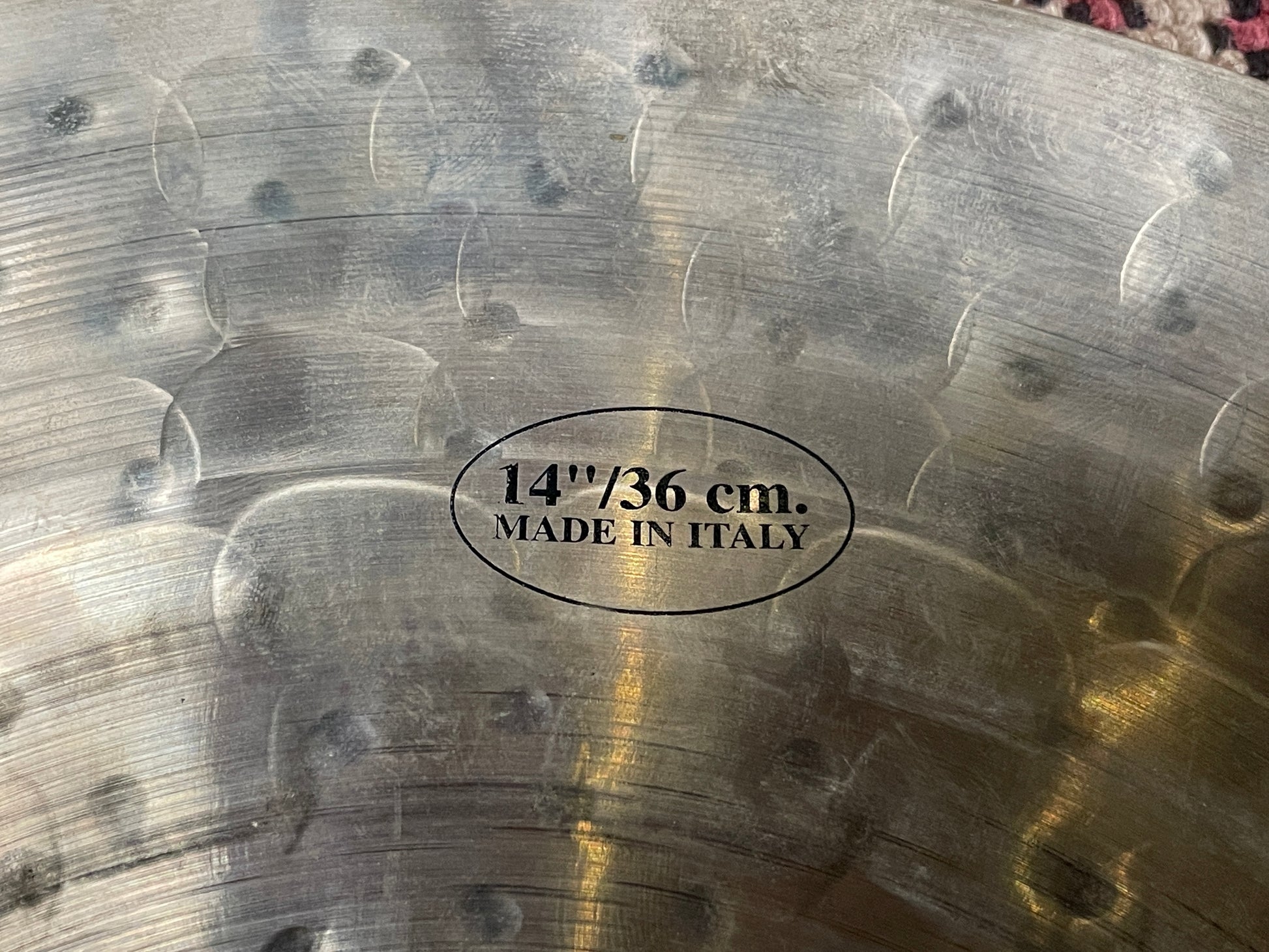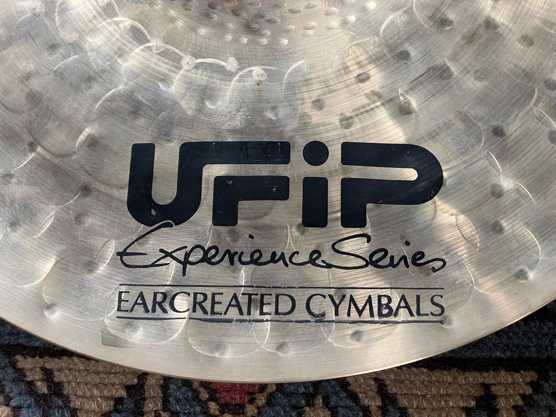 For your kind consideration is this 14" UFIP Experience Series Real China cymbal. It's in great condition and sounds perfectly trashy. A Chinese style cymbal with an unusual down turned edge and a standard shaped bell. These cymbals are available in Rotocast B20 Bronze and in Rolled Bronze. The afore mentioned cymbal has a sharp attack with a soft and rich sound. The Rolled Bronze cymbal undergoes the same heat process that is used on the Tiger Series and are distinguishable by their trashy and aggressive sound. No cracks, bends, flea bites, or keyhole. Weighs in at 650 grams. Enjoy!