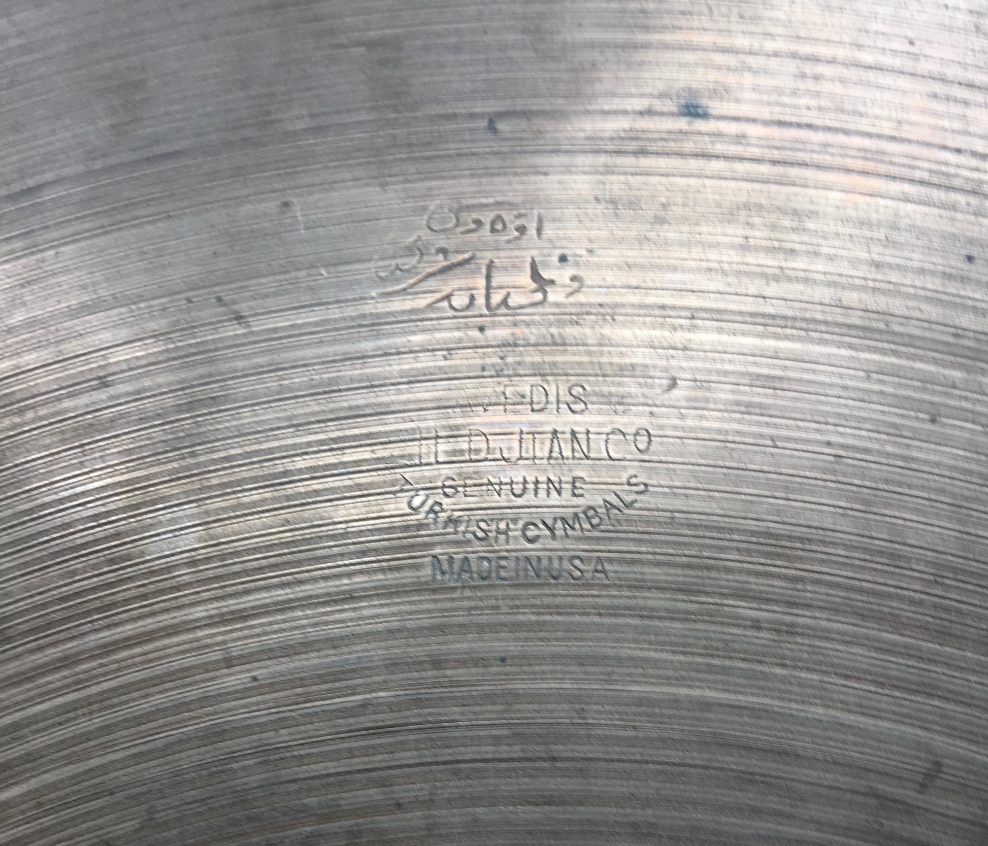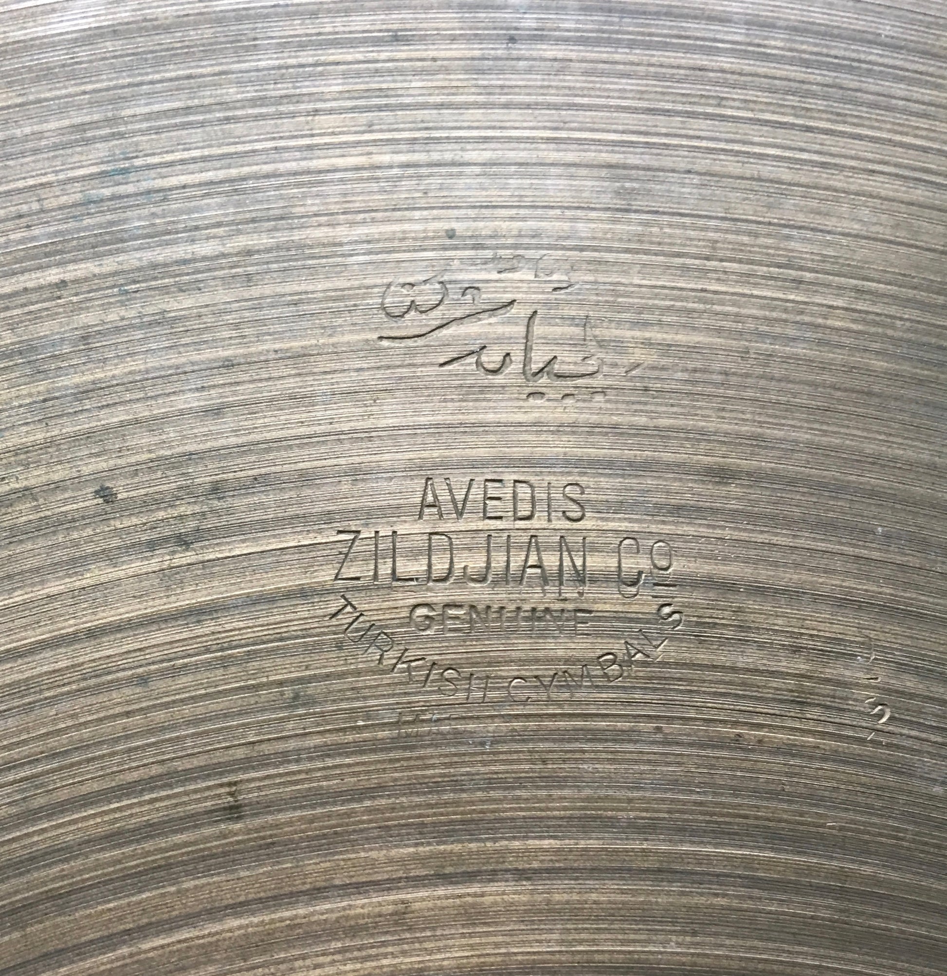 For your viewing and listening pleasure is this exquisite pair of vintage 1929-40 Zildjian A First Stamp 14" hi hats, which happen to weigh in at an incredible light weight. Unlike many of the early A first stamp cymbals, these both measure a true 14". They have very K like qualities and exhibit gorgeous hammering. The top, which still has a visible hand signature on the bottom side of the bell, has nice edges with no fleabites, but as is the case with just about any well played cymbal of this size, age, and weight, there is a small edge bend, and a dip from where the cymbal was played most. But since the cymbal is thin, when just a little foot pressure is applied on the hi hat stand, the hats close perfectly together with zero gap. The bottom hat has one small flea bite. They are in incredible condition for hats of this age and thinness with no cracks. Most importantly, they sound amazing! These are historical, incredible hats from the early days of Avedis Zildjian Cymbals, when a lot more of the manufacturing process was done by hand than during any other era of Avedis cymbals. Enjoy!