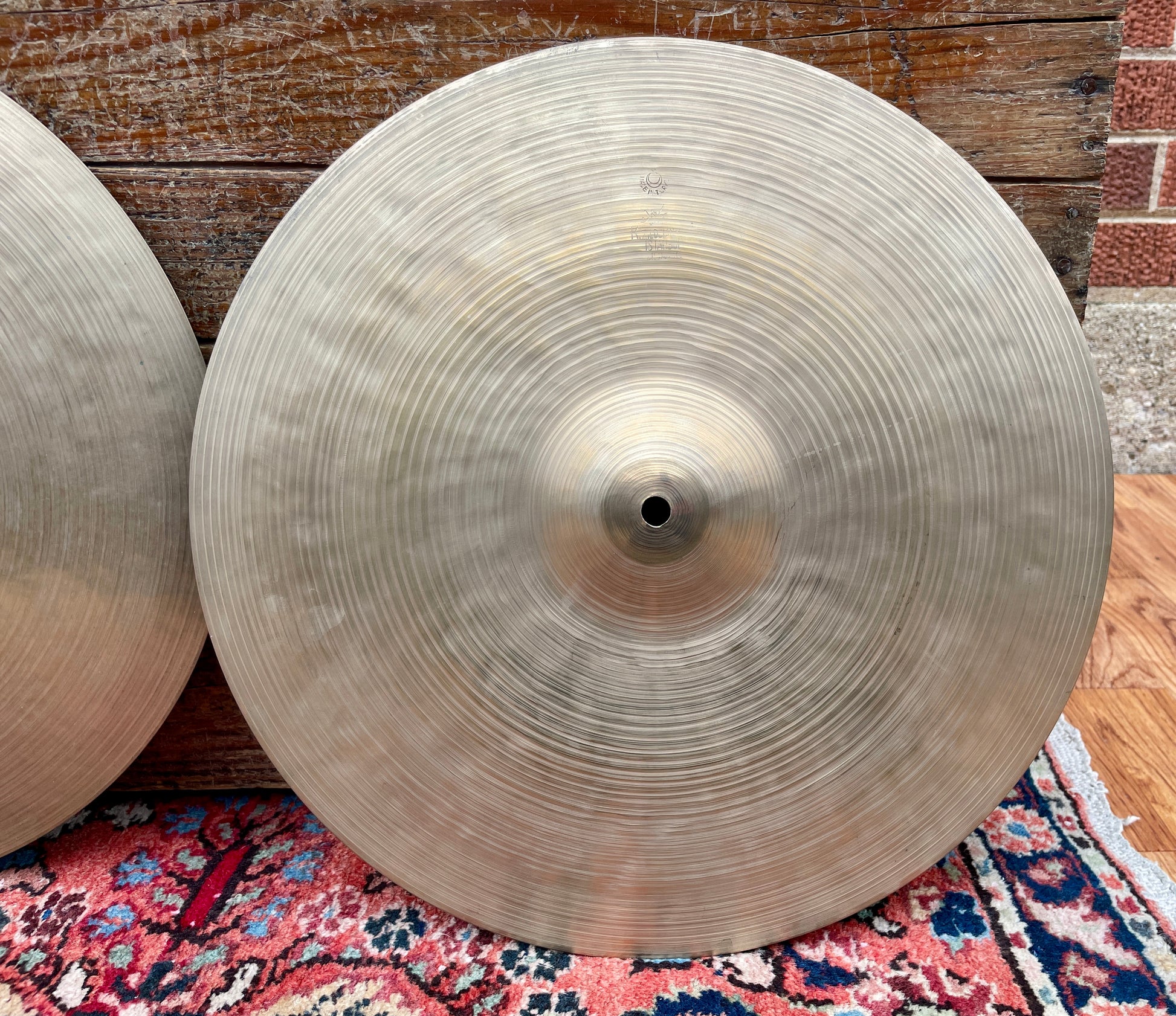 For your extreme viewing and listening delight is this beautiful pair of vintage 15" K Zildjian Istanbul Intermediate stamp hi-hat cymbals made between 1959-1966. These cymbals are a lovely match with the bottom being ever so slightly larger measuring approximately 15-1/8" to the tops near exact 15" which makes for a perfect pair and prevents air-lock. They are in fantastic collector's clean condition with no defects in their beautiful thin edges. They have a responsive woody stick definition and a warm, articulate chick with a fantastically beautiful splash and wash. These complex and musical cymbals are everything one could hope for from a set of vintage K Istanbul hats, with the added body you gets from a 15" size. No cracks, bends, flea bites, or keyhole. They weigh in at 864 grams on top and 1072 grams on bottom. Enjoy!