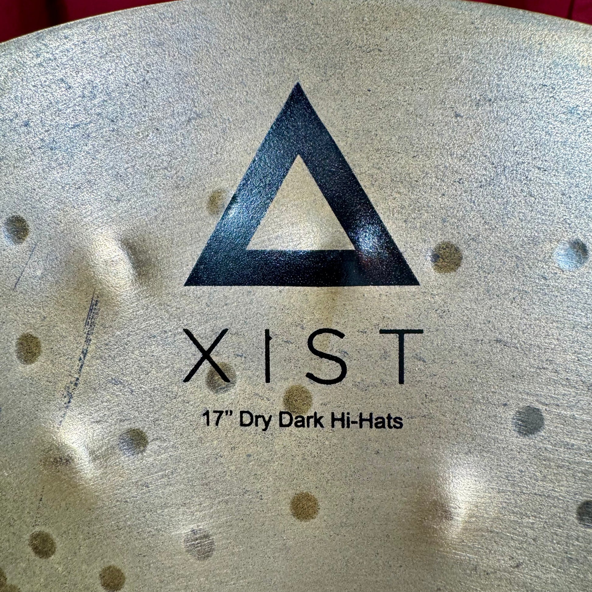 For your kind consideration is this brand new 17" Istanbul Agop Xist Dry Dark hi-hat cymbal pair. These washy hats are dark and trashy with a quick decay. When not used as a hi hat pair, the top cymbal makes an explosive full bodied crash, and the bottom can be used as a small light ride or bell effect. This pair weighs in at 1072 grams for the top and 1488 grams for the bottom. Enjoy!