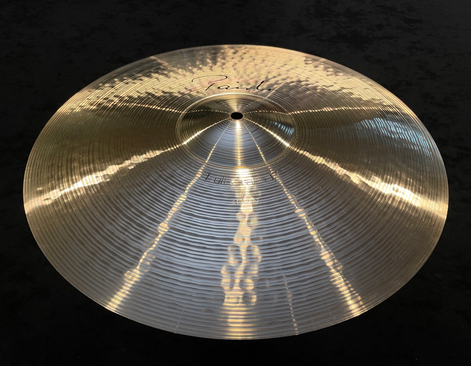 For your kind consideration is this 17" Paiste Signature Full Crash. It's in great condition and sounds fantastic. Nearly new condition. Bright, full, warm, brilliant sparkling. Wide range, balanced, clean mix. Even response with warm, shimmering sustain. A very versatile, general purpose crash cymbal. No cracks, bends, flea bites, or keyhole. Weighs in at 1228 grams. Why pay $358 for a new 17" Paiste Signature Full Crash when you could have this cymbal for a fraction of the price? Enjoy!