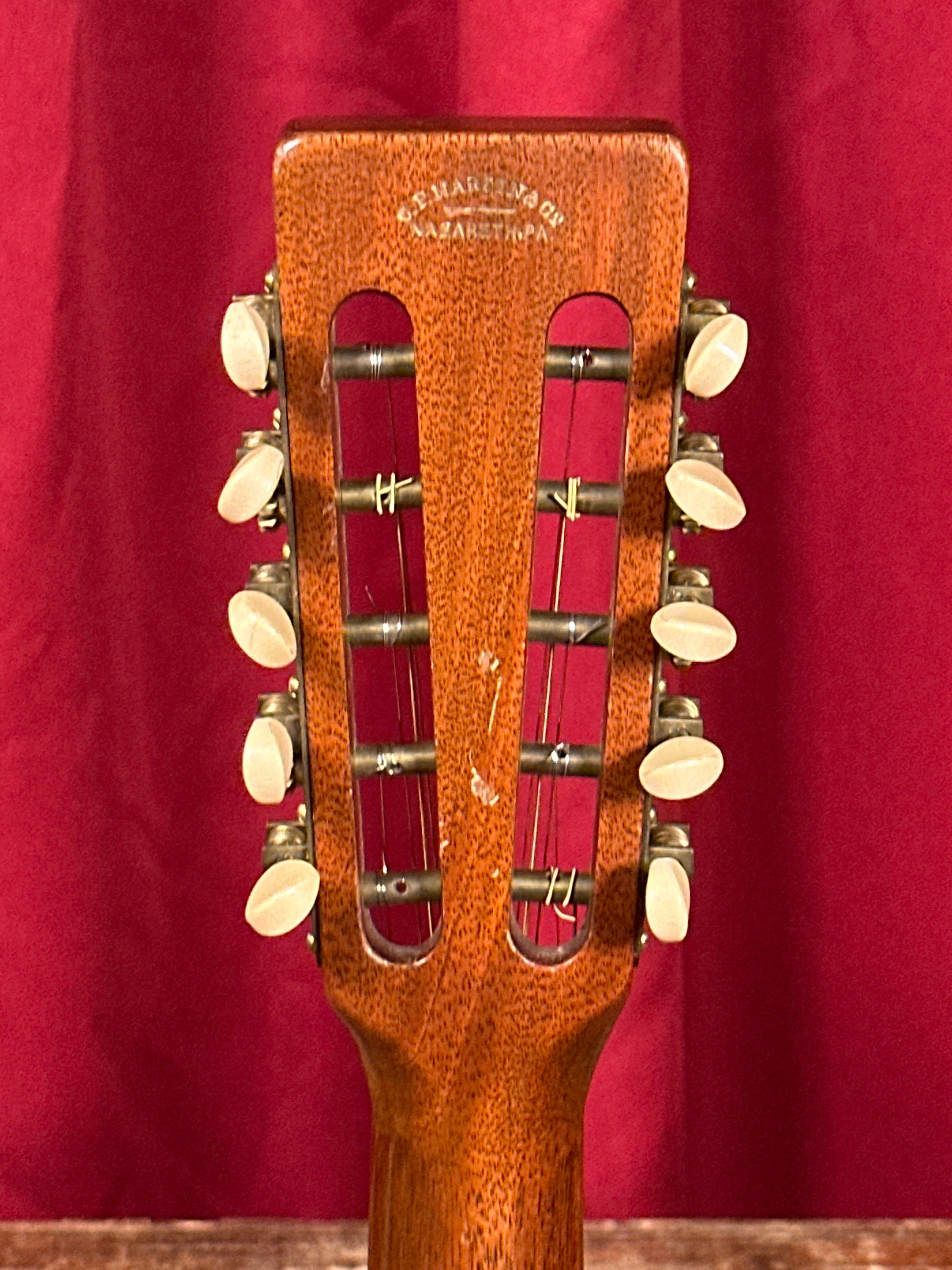 For your kind consideration is this vintage C. F. Martin T-17 Tiple with a natural lacquer finish from 1930. It's in overall great condition with modest play wear, including marks along the lower treble bout edge and back and some wear to the finish on the top as one would expect on a nearly 100 year old folk instrument. This North American style tiple was introduced by C. F. Martin in 1919 and is a 10-string version of the soprano-style guitars that had been in use since the 1700s. This T-17 model was built in Martin's Nazareth, PA factory in 1930 based on the serial number. It features a mahogany body with a rosewood bridge and mahogany neck fitted with a rosewood fingerboard and ebony nut. This 1930s model has an X-braced top that is slightly more sturdy than the fan-braced models from the 1920s. The tuners all function well and the buttons are all intact. It's not every day you come across a pre-war tiple in such good playing condition and this one is a joy to play. It includes what looks to be a period correct chipboard case that does have a broken handle but is safe for storage. If you're ready to bring some tonal variety to your collection, this beauty is ready for the gig. Enjoy!