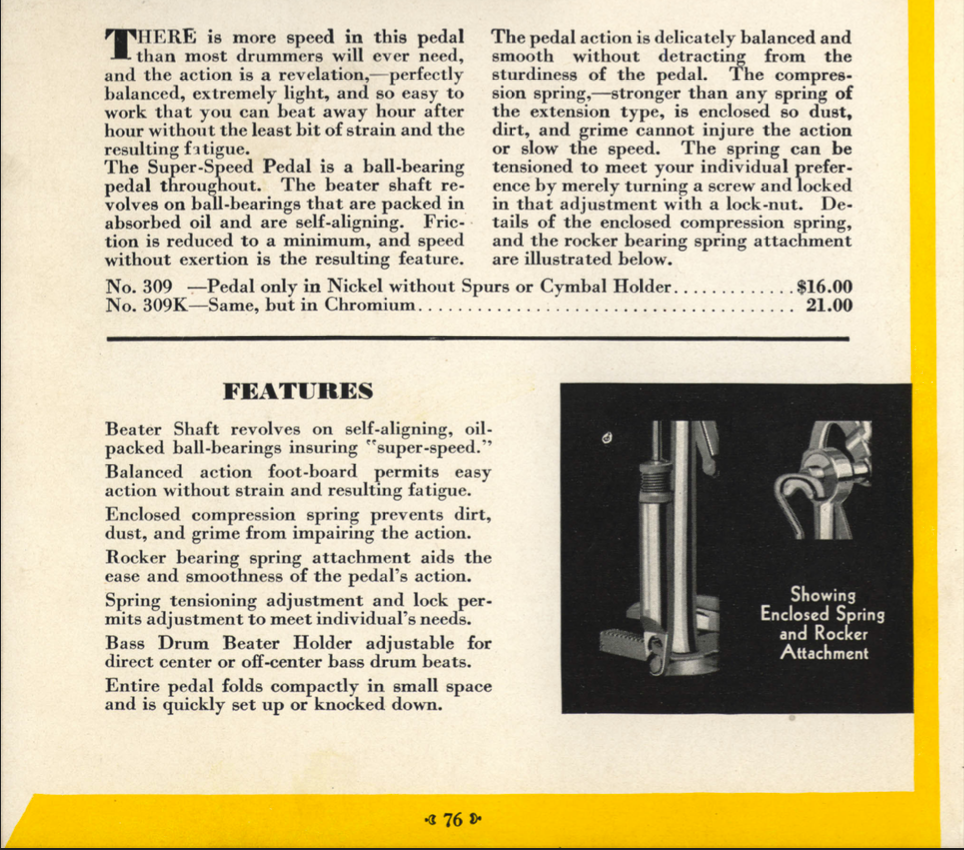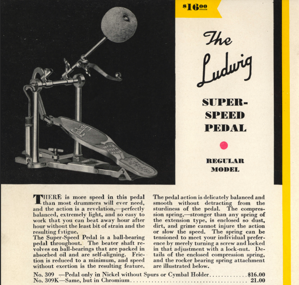 1930s Ludwig No. 309K Super Speed Bass Drum Pedal Chrome Regular Model