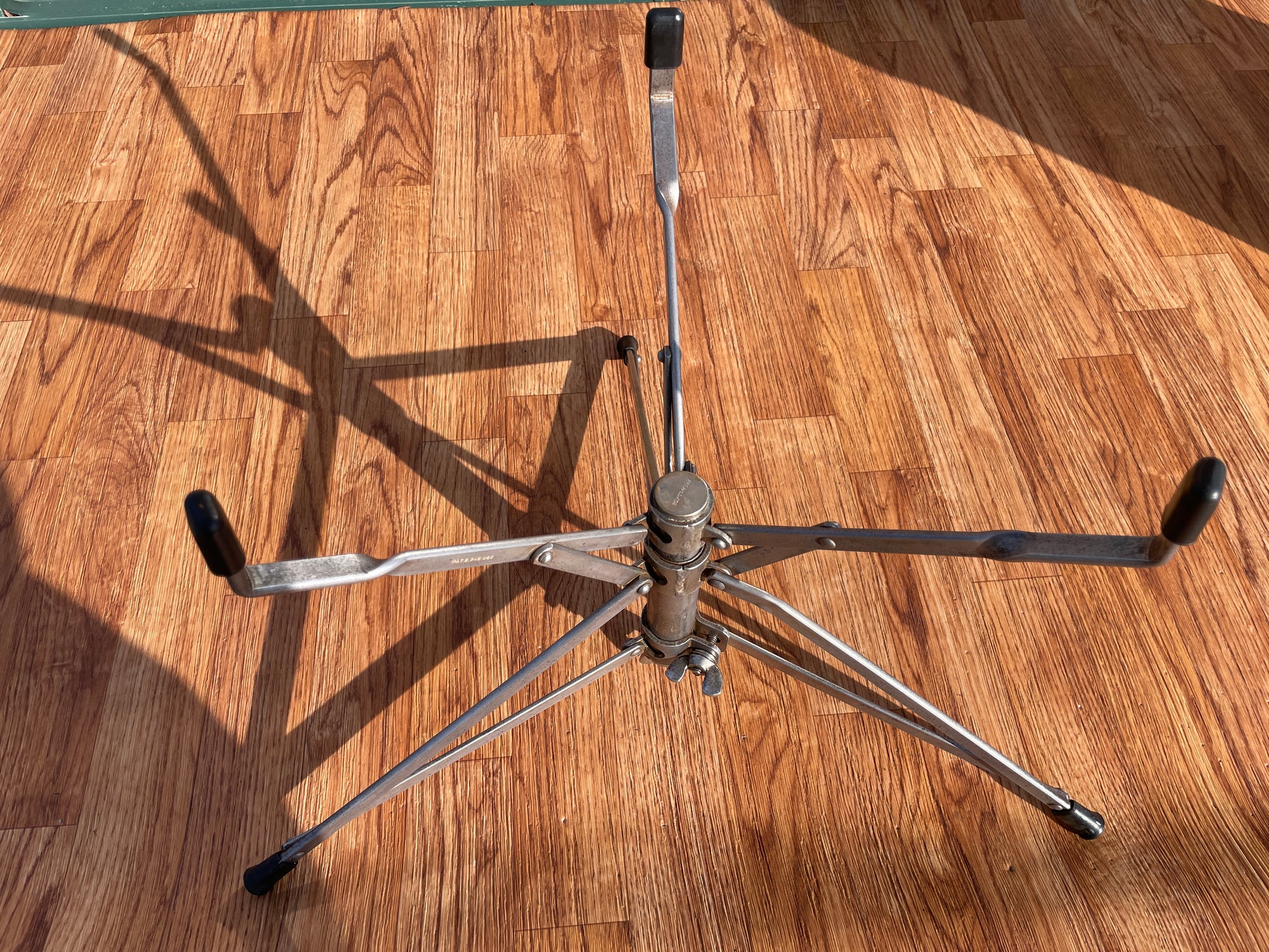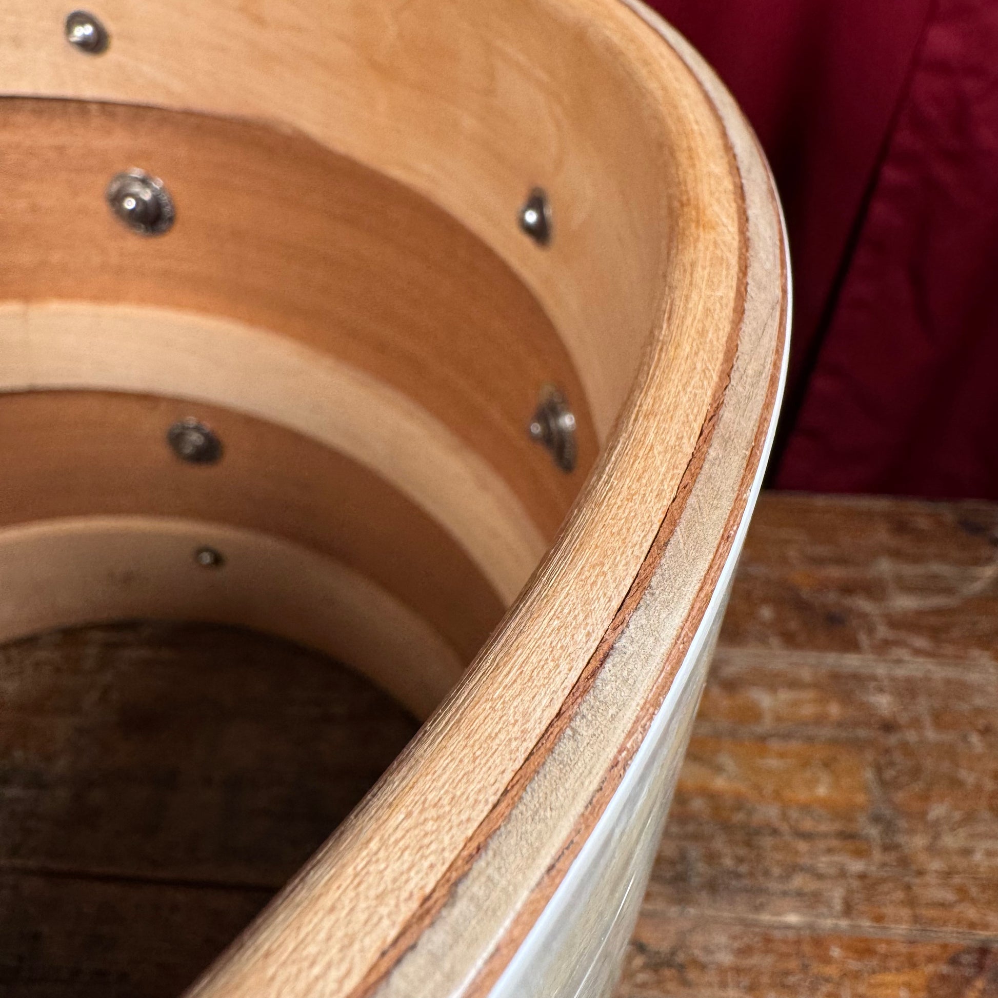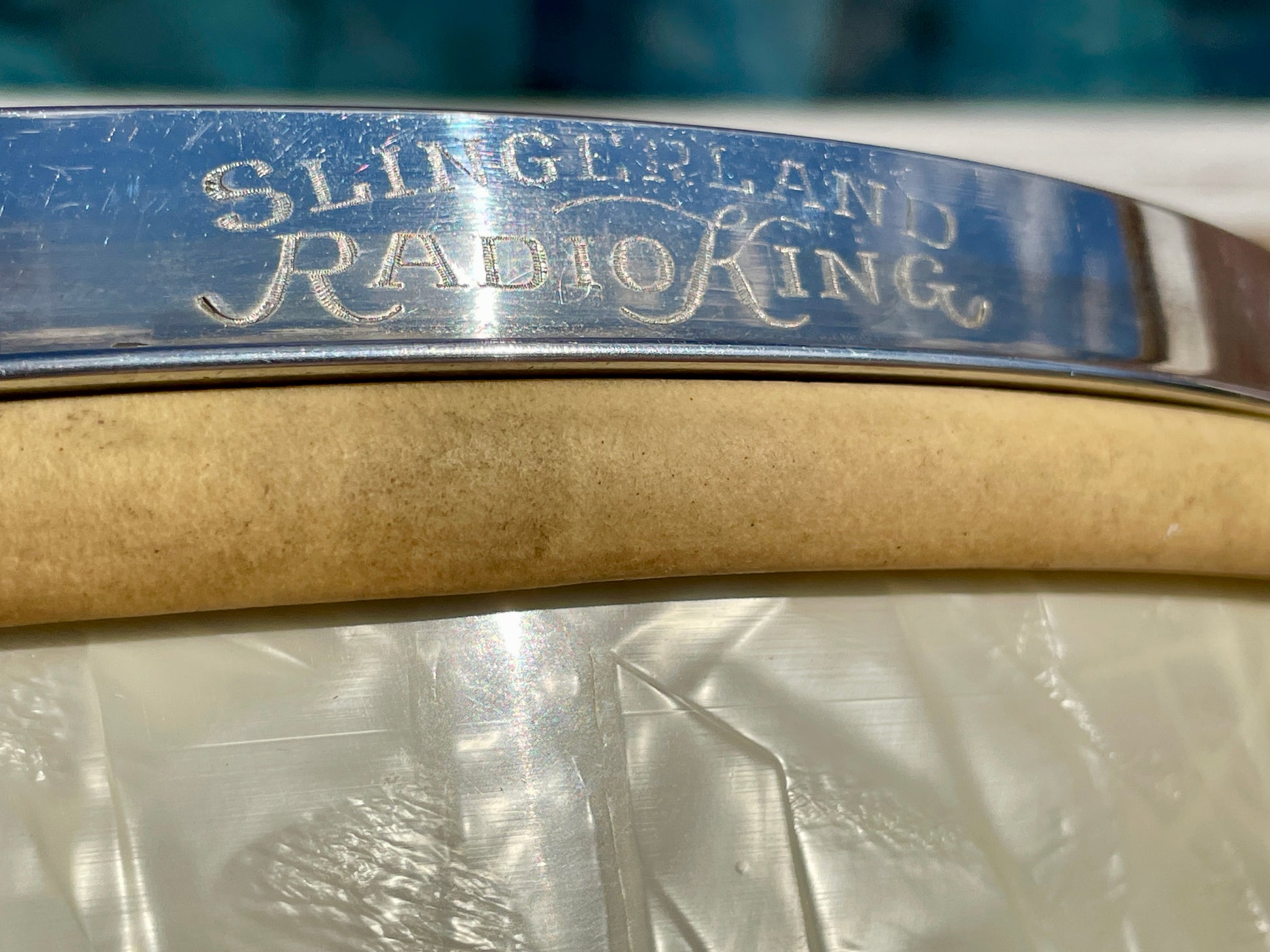 For your supreme viewing pleasure is this rare vintage Slingerland 12x14 Radio King tom from the 1930s with original cradle. This drum was originally owned by Barrett Deems, who famously played with Louis Armstrong. The beautiful White Marine Pearl wrap is in excellent shape with a tight seam. Made during Slingerland’s golden era, this rare pre-war drum showcases the craftsmanship and warm, resonant tone that made Radio Kings legendary among jazz and swing drummers. There are no additional holes or modifications. This stunner is 100% original including heads and cradle. This is a beautiful piece of early drum history that deserves a loving home. Enjoy!