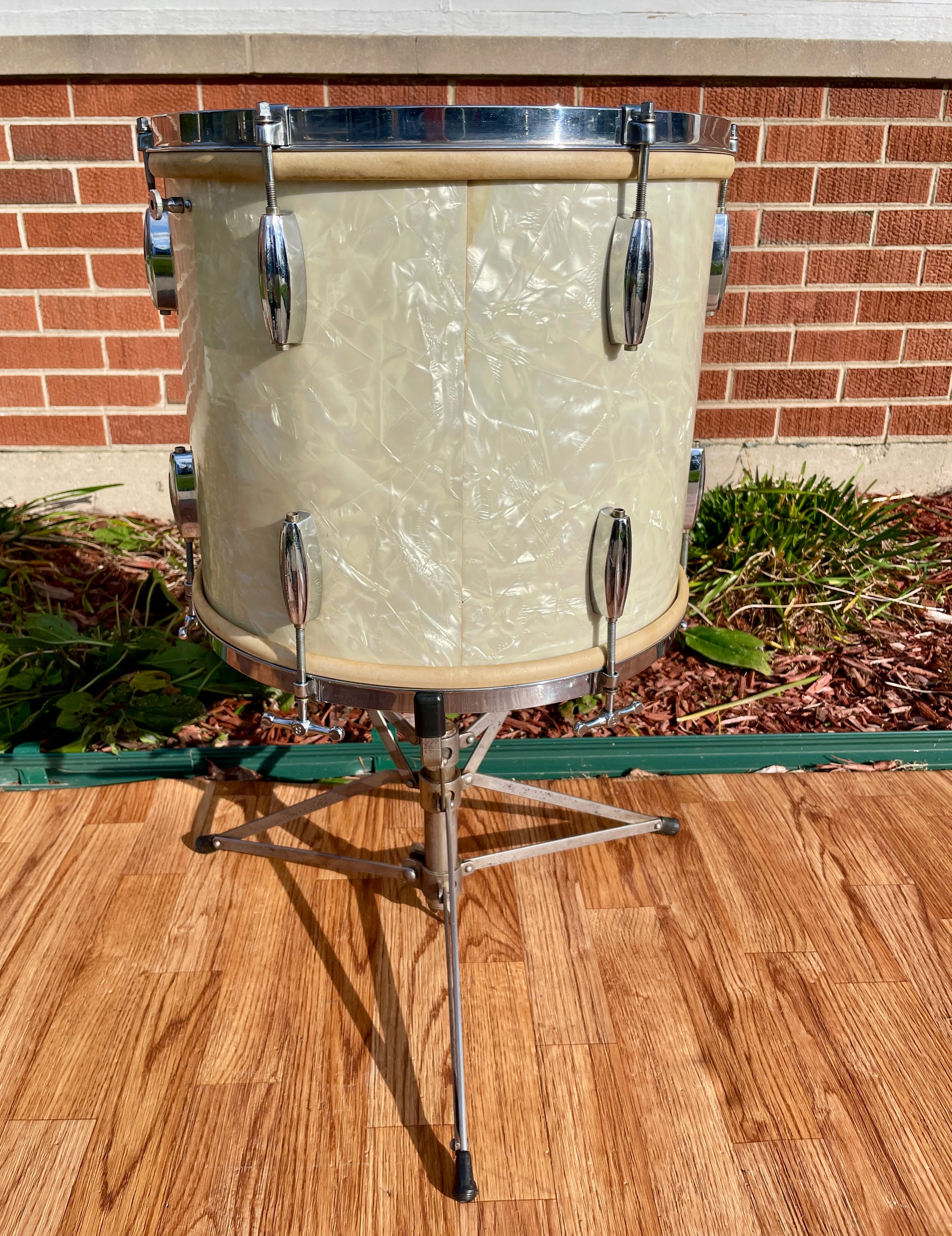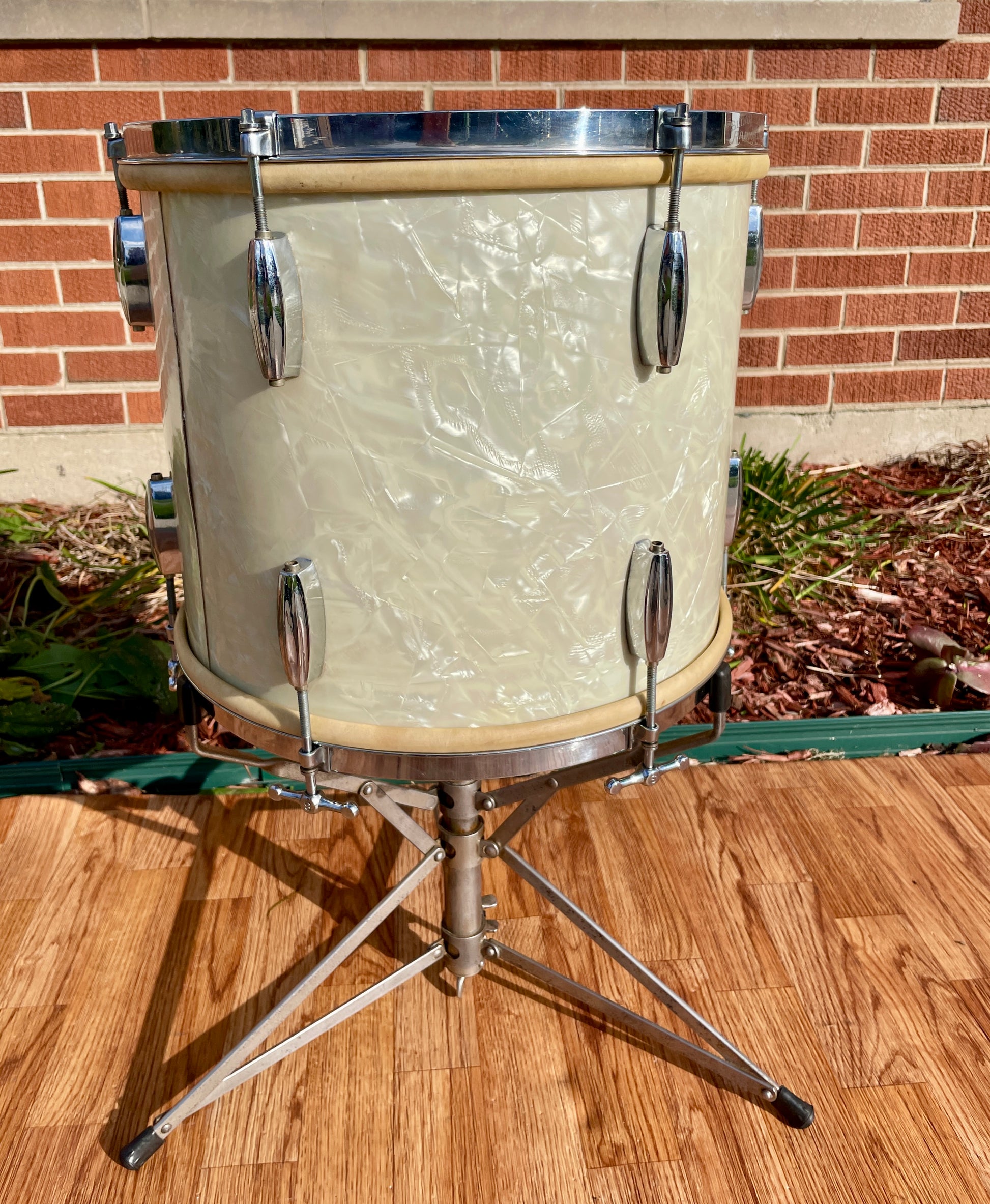 1930s Slingerland Barrett Deems 12x14 Radio King Tom Drum White Marine Pearl w/ Stand
