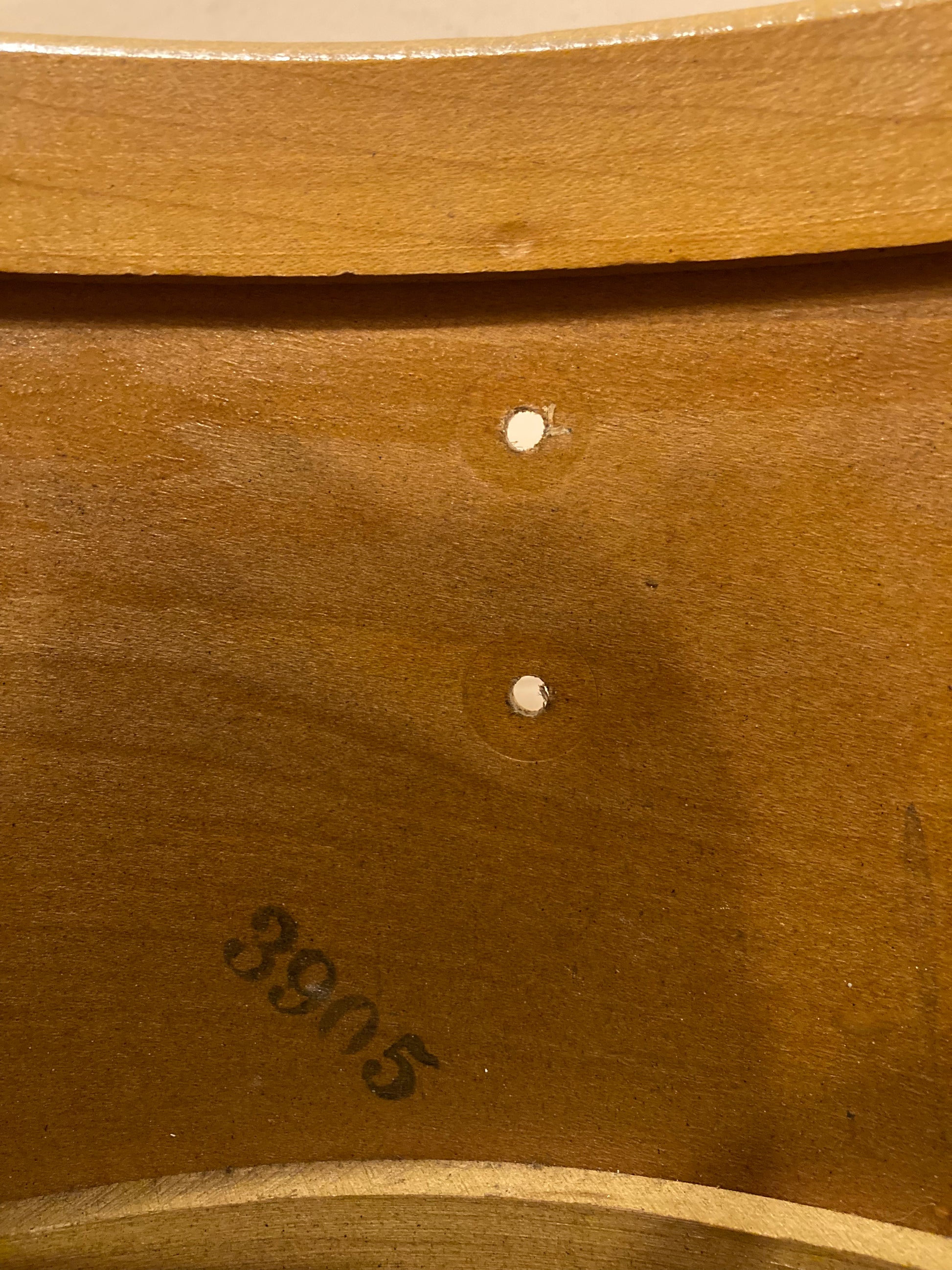 For you kind consideration is this vintage Leedy single tension 7x11 tom. This size was introduced in the late 30s with the Ludwig version designed by Ray Bauduc to fit snugly on the trap rail or bass drum. It was massively popular size at the time and this single tension, tack head bottom style tom came on a variety of Leedy's outfits as shown in the 1941 catalog. It's in great condition for its age with normal wear on the white lacquer finish on what looks to be a 2-ply wood shell. The original Beavertail lugs and tone control have been removed and the original mount is present and functional. The bearing edges are true and original and the bottom calf skin tack head still sounds great. The original nickel hoop and calf head are included. There are no extra holes or modifications of any kind. This drum is ready is a great candidate for your next Leedy project. Enjoy!