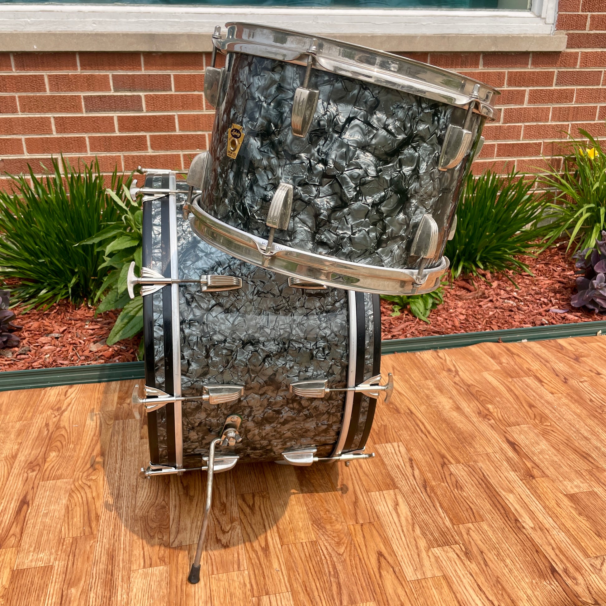 1959 Ludwig New Yorker Drum Set Black Diamond Pearl Trans Badge 22/12