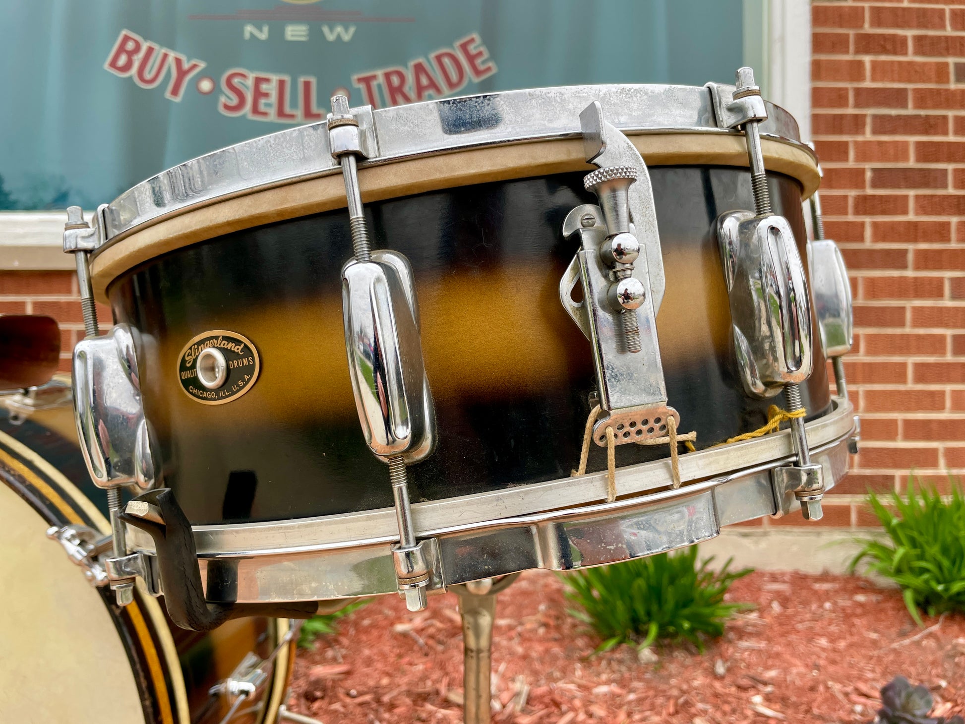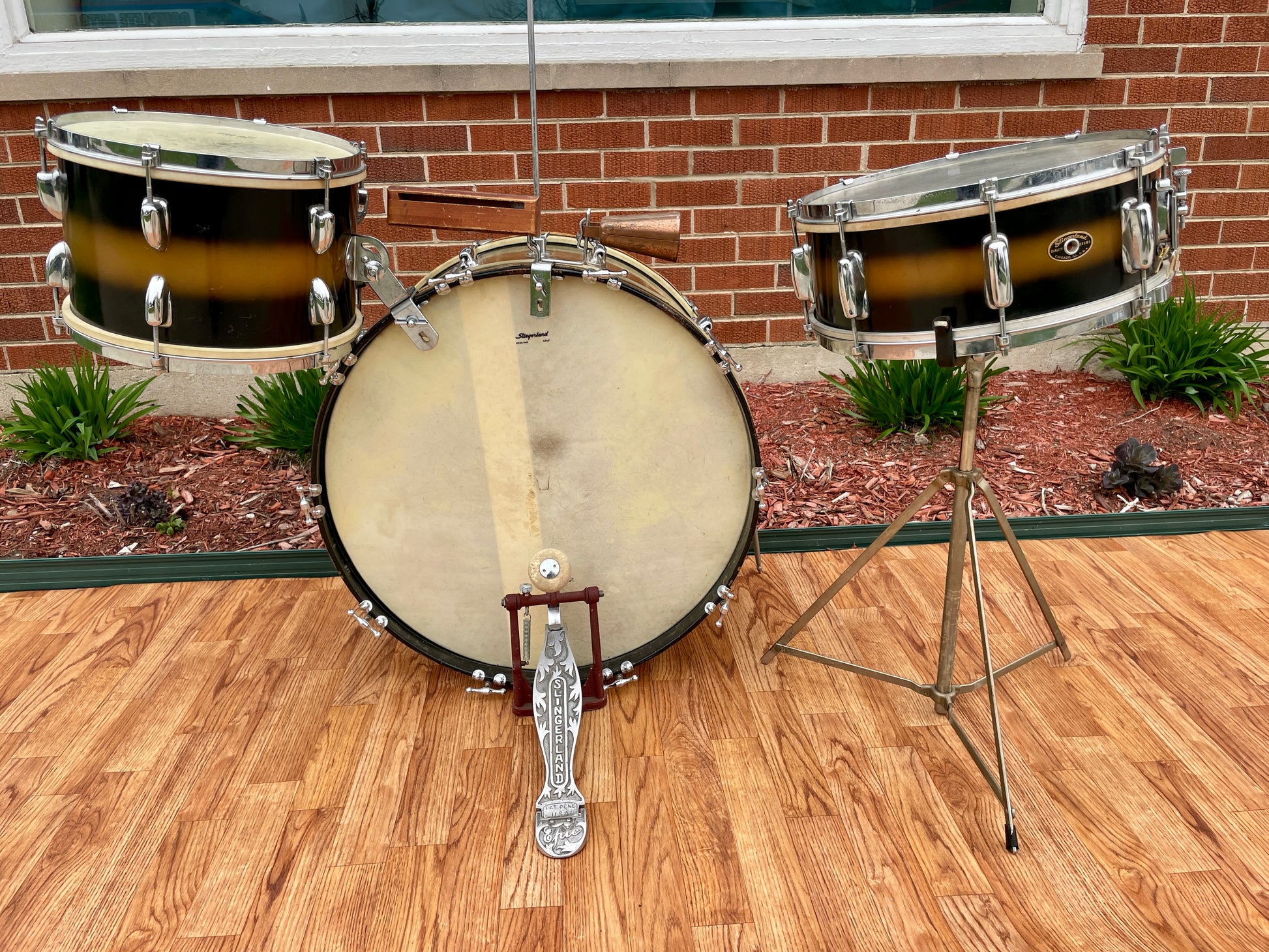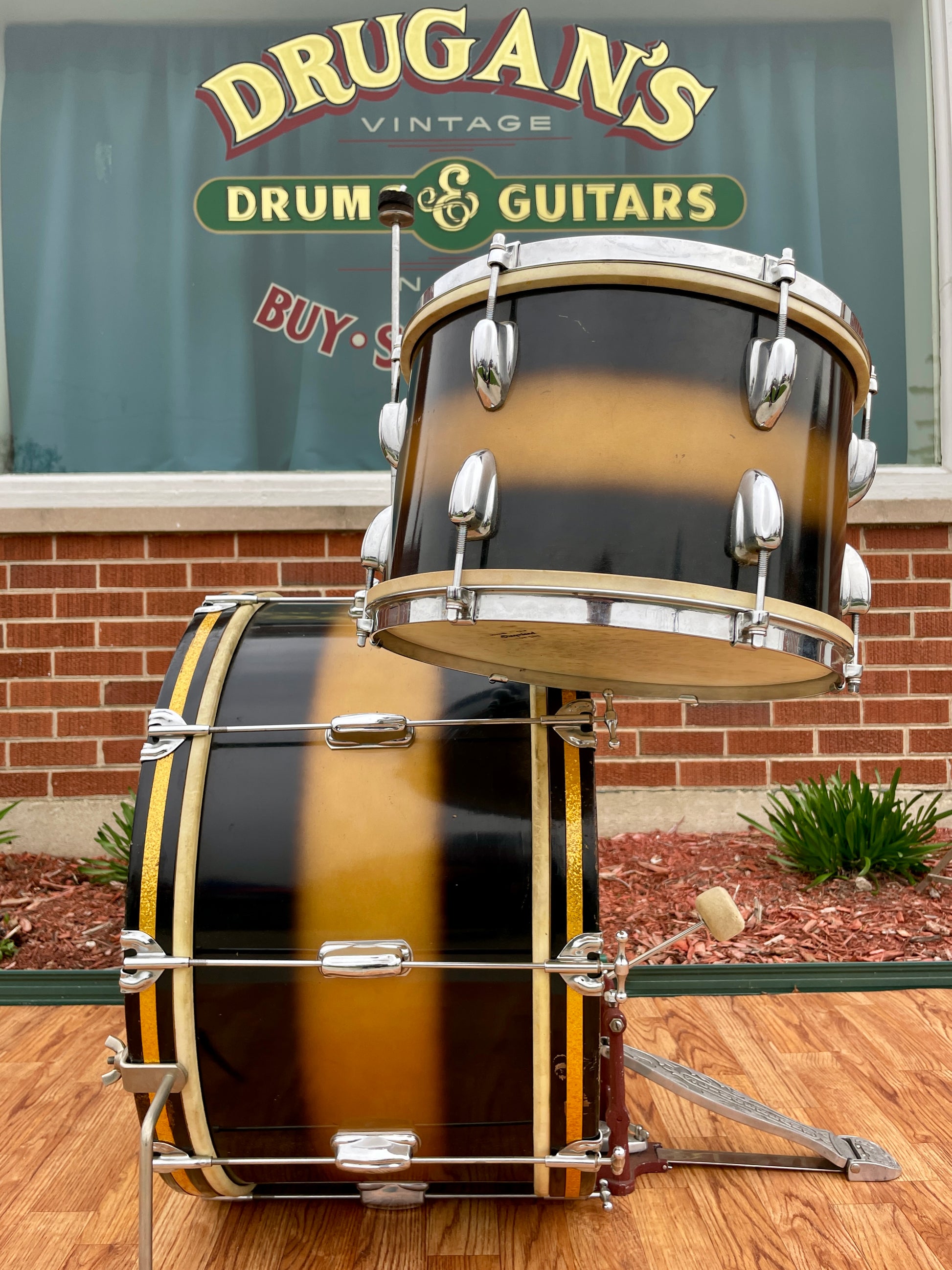 1959 Slingerland Swingmaster Ensemble 5-N Outfit Drum Set Black Gold Duco 12x22/12/5.5x14