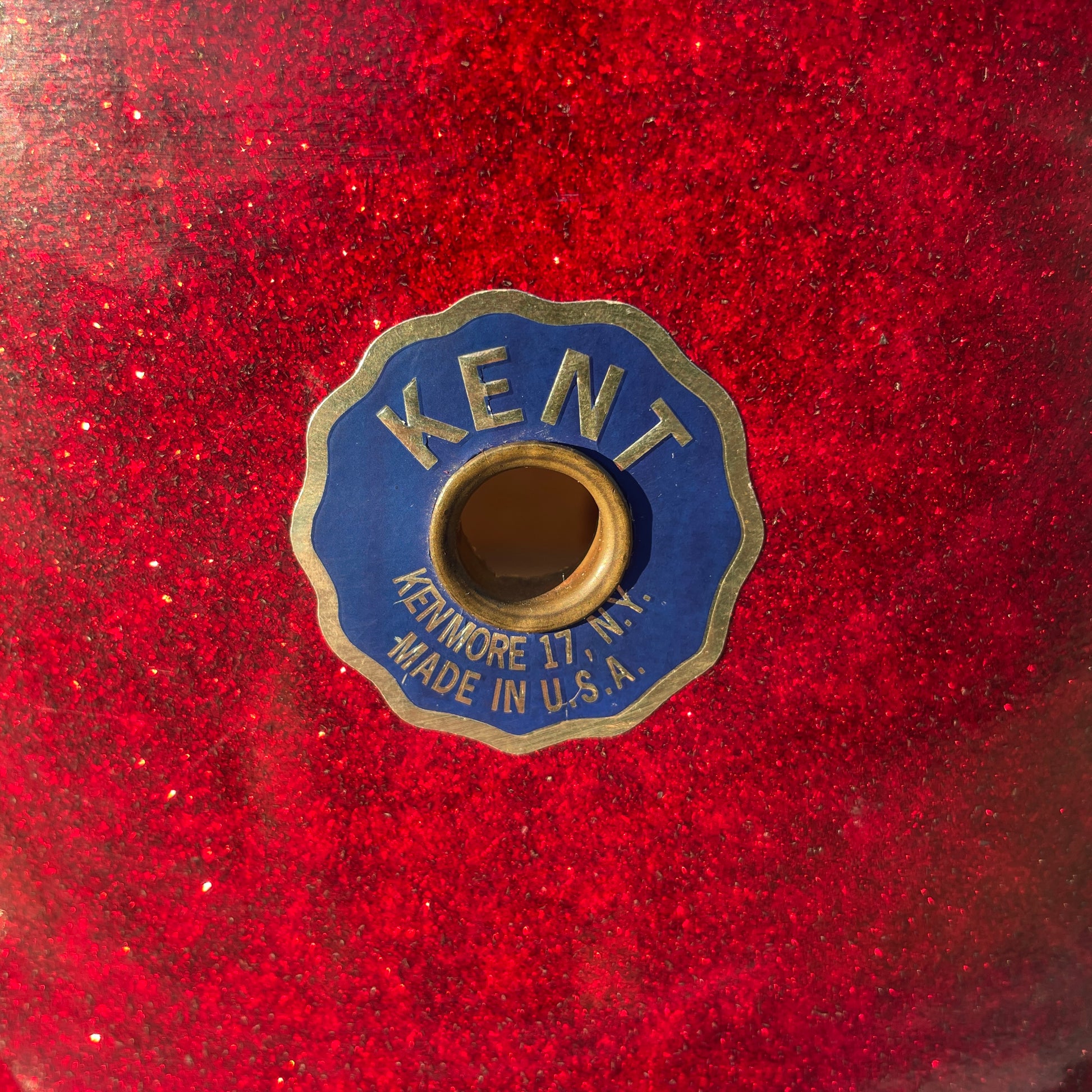 For your kind consideration is this vintage Kent 13" tom in red sparkle wrap. It's in very good condition overall and all original aside from the heads and what looks to be an aftermarket badge. Kent marketed these as 9x13 drums but the actual measurement is closer to 8-1/2" deep. The bottom bearing edge has an uneven, rough area where the plies come together. It does not prevent the drum from tuning up well and sounding great. It is gig-ready and would make an excellent choice for adding some vintage tone to your setup without paying collector prices. Looking to build out a Kent set? See our other listing for the matching 16" floor tom. Enjoy!