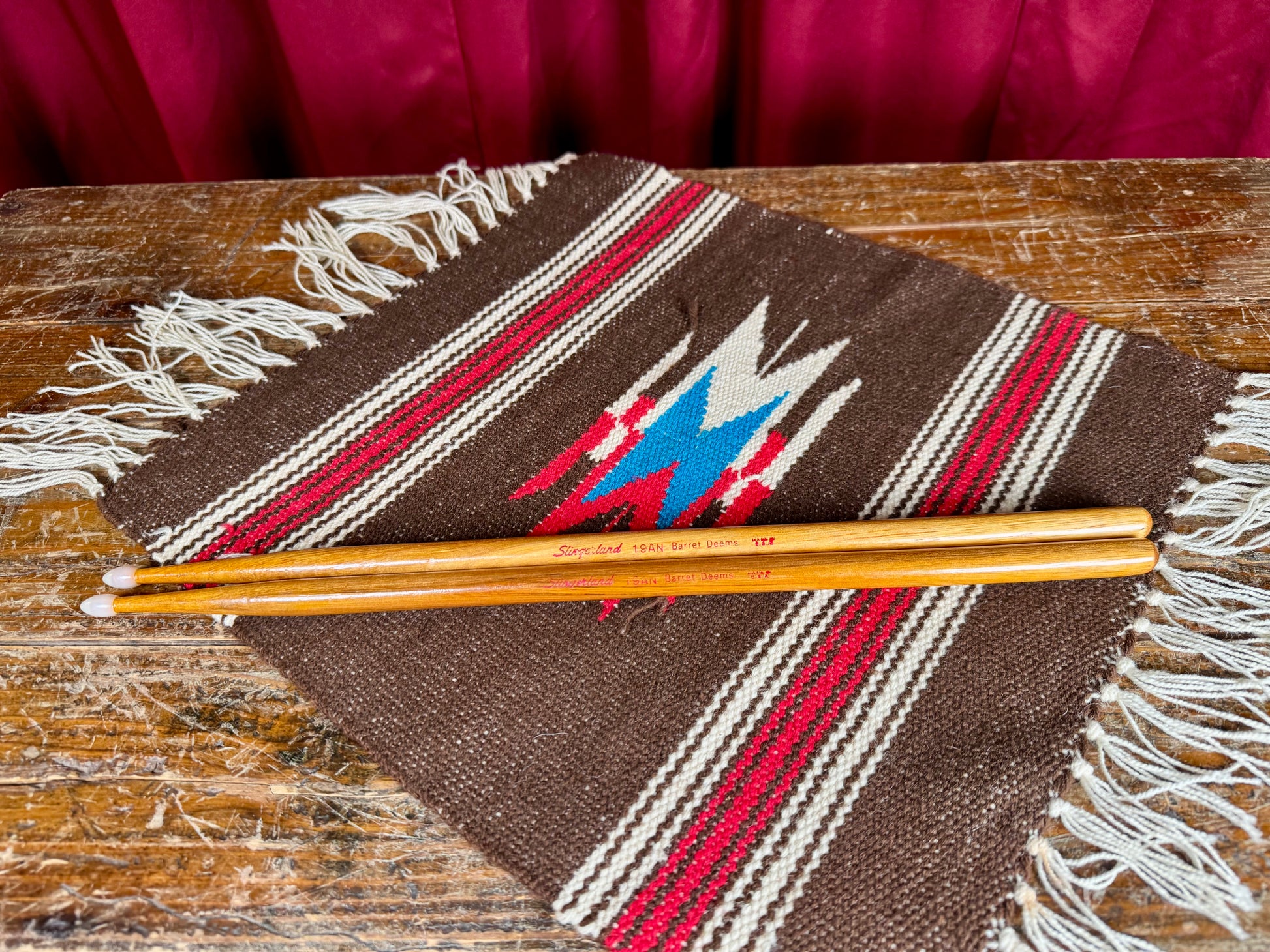 For your kind consideration is this very gently used pair of Slingerland drum sticks. This is the 19AN Barrett Deems nylon tip model and measure 16" in length. Great collectors item with a absolutely minimal amount of wear. Enjoy!