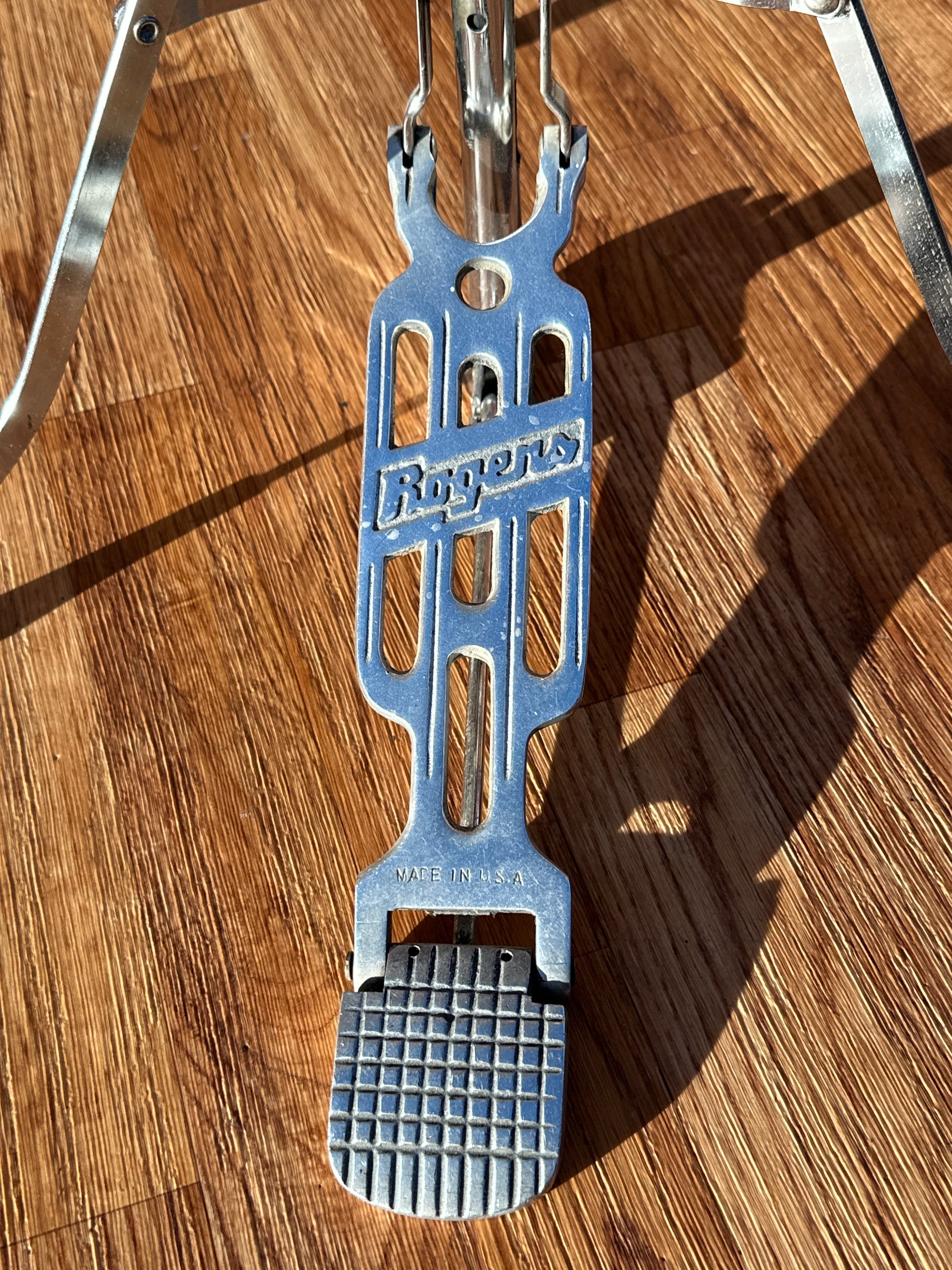 For your kind consideration is this vintage Rogers No. 4401 Swiv-O-Matic hi-hat stand from the mid-60s. This one is in excellent condition with very light wear. This is the model 4401, witch has the hinged two-piece footboard that debuted in the 1964 catalog. This one is all original and still has the smooth action that made it the hi-hat stand of choice for Buddy Rich, Bonham, and countless others for good reason. This would be right at home with your beloved vintage Rogers set. Enjoy!