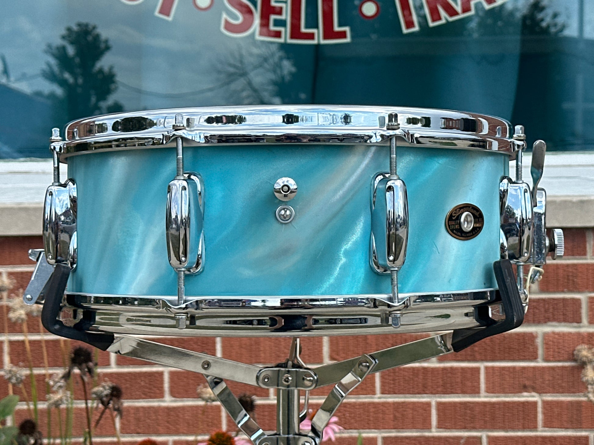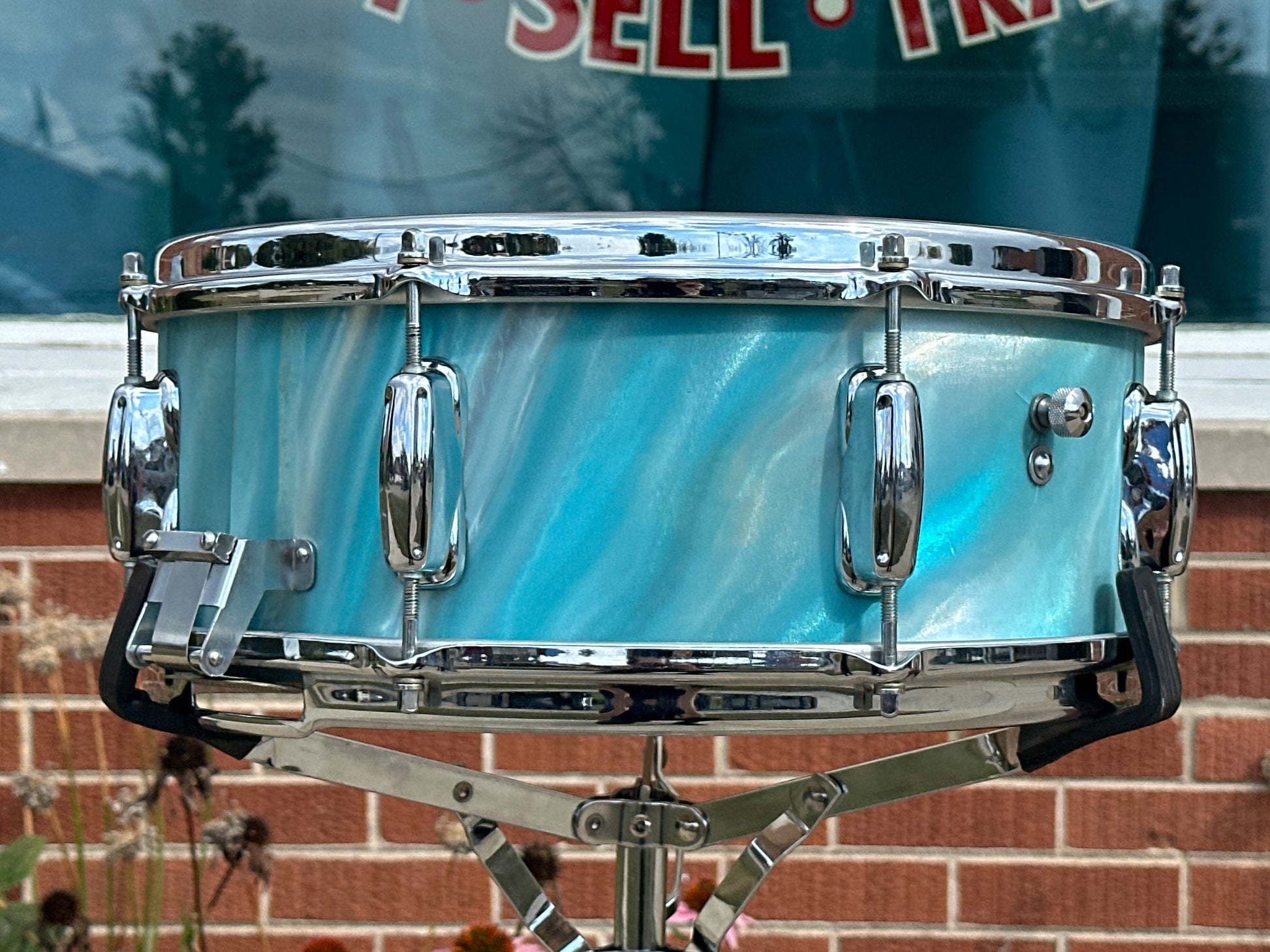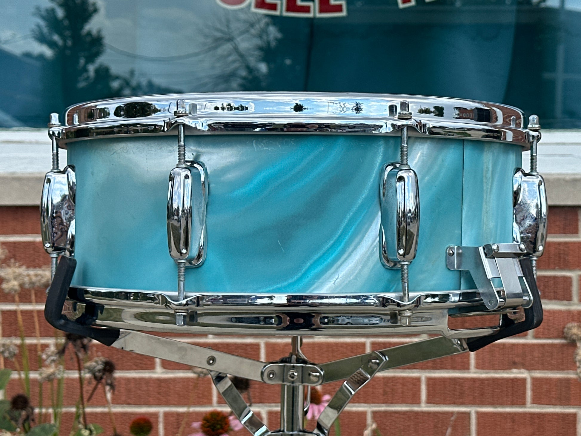 1960s Slingerland 5.5x14 Artist Model 3-Ply Snare Drum Aqua Green Satin Flame 8 Lug