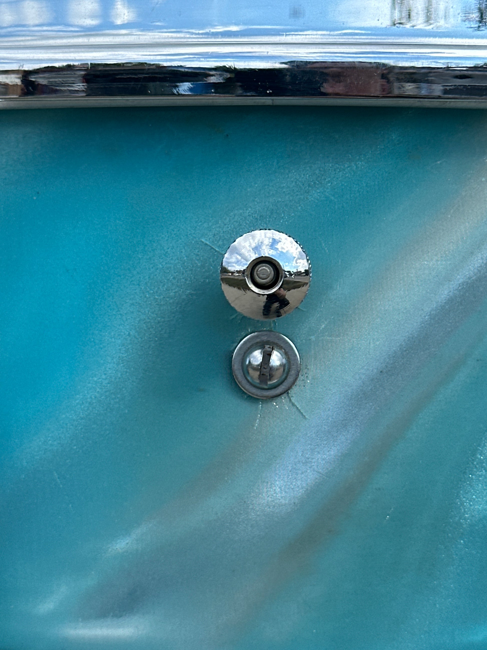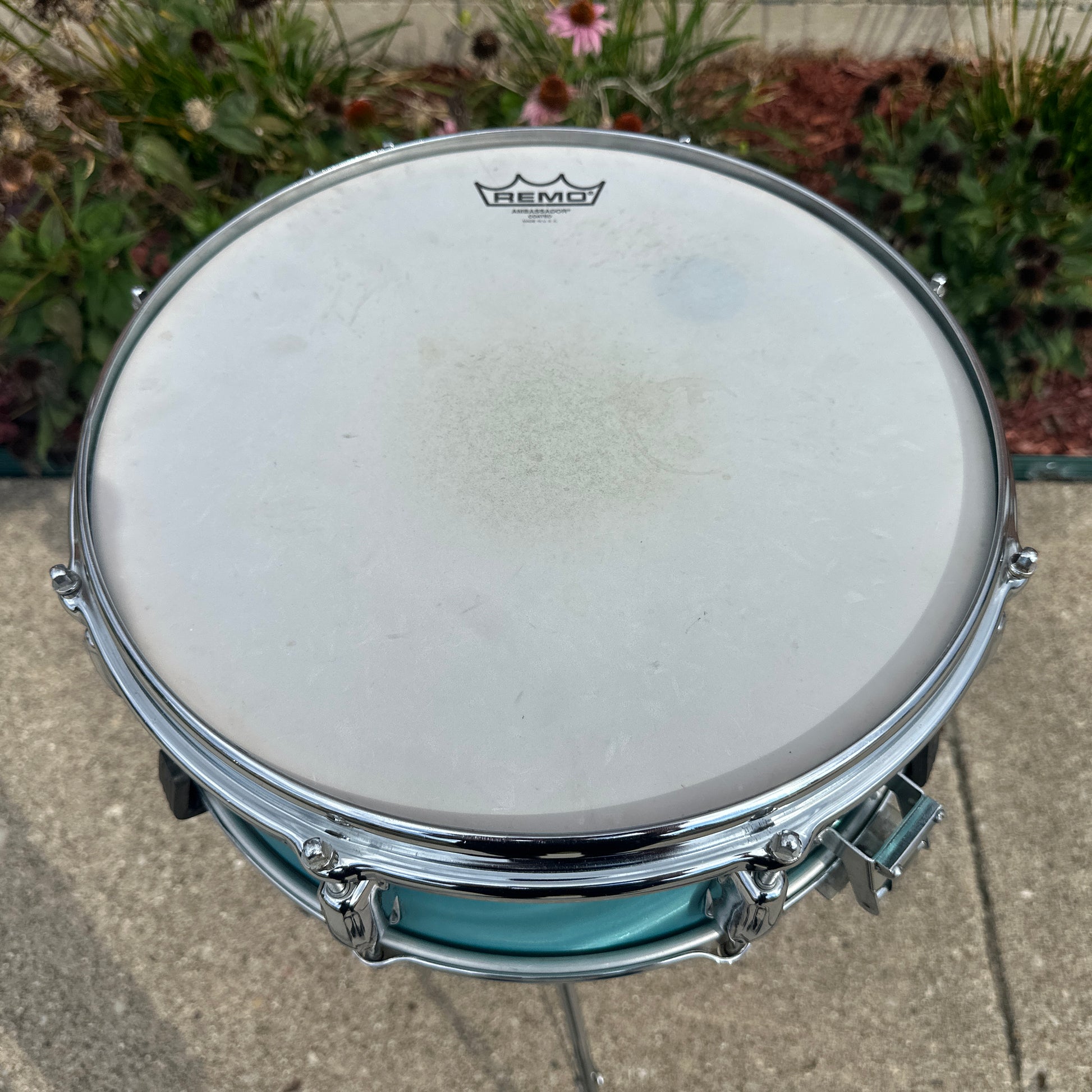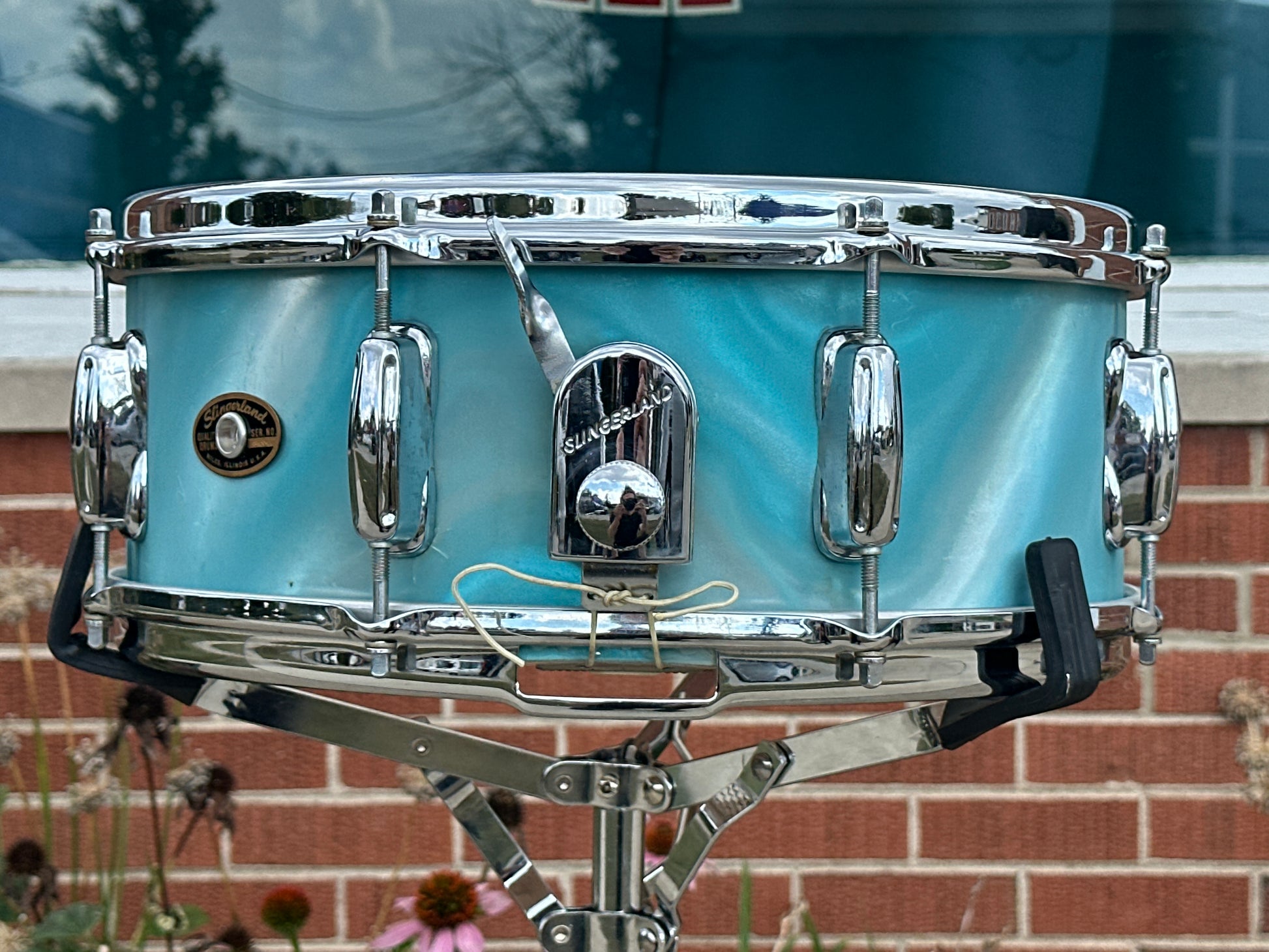 1960s Slingerland 5.5x14 Artist Model 3-Ply Snare Drum Aqua Green Satin Flame 8 Lug