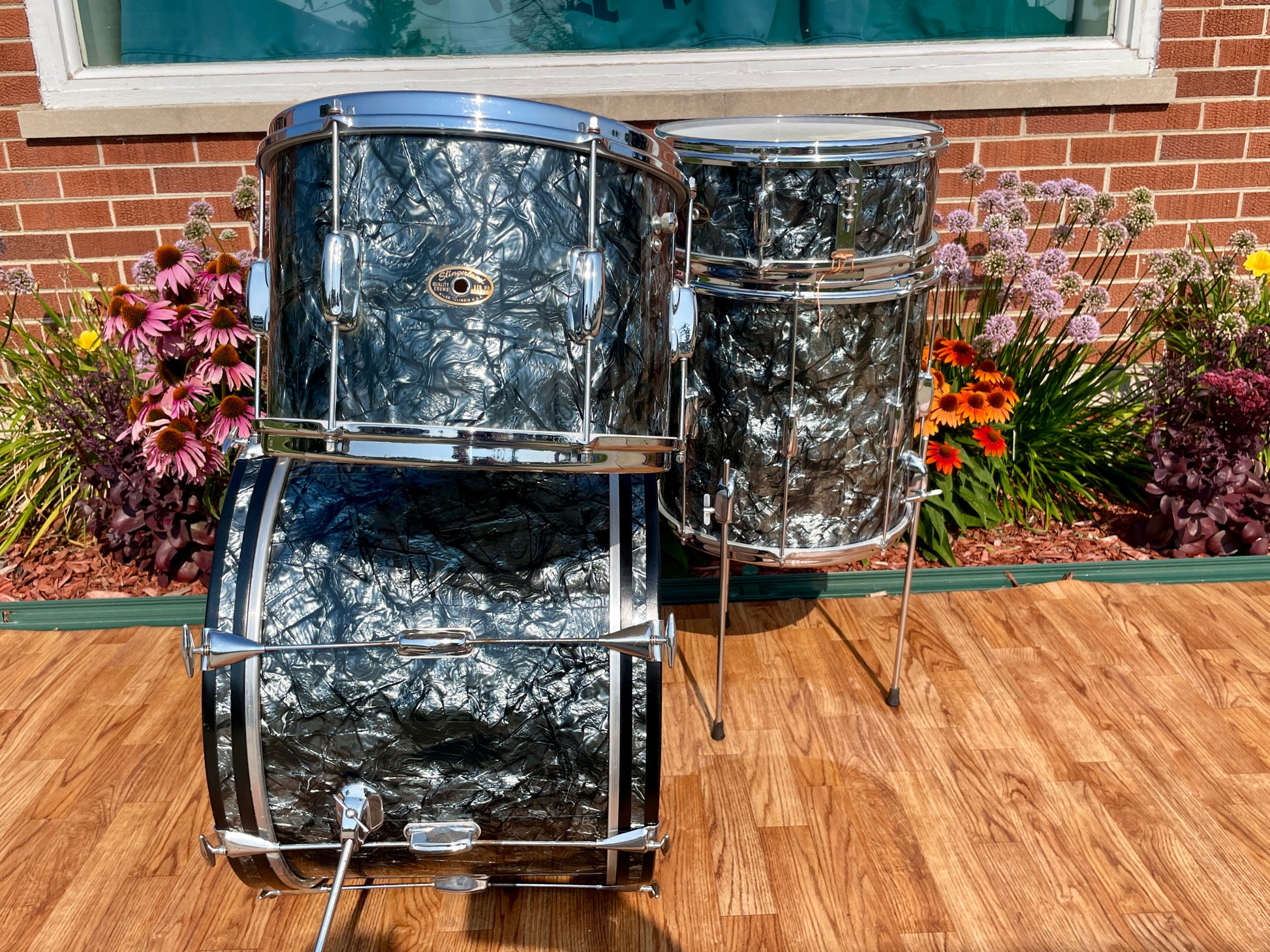 1960s Slingerland No. 74N Stage Band Drum Set Black Diamond Pearl 20/13/14 w/ 5.5x14 Snare Drum