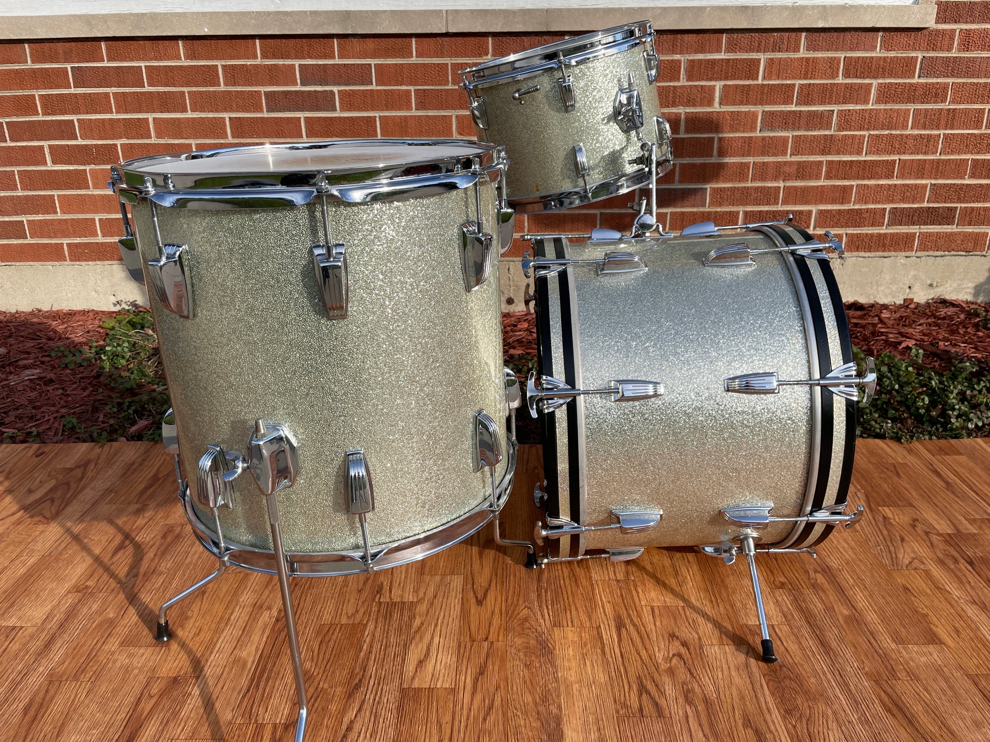 1966 Ludwig Jazzette Silver Sparkle Drum Set 12x18/12/14