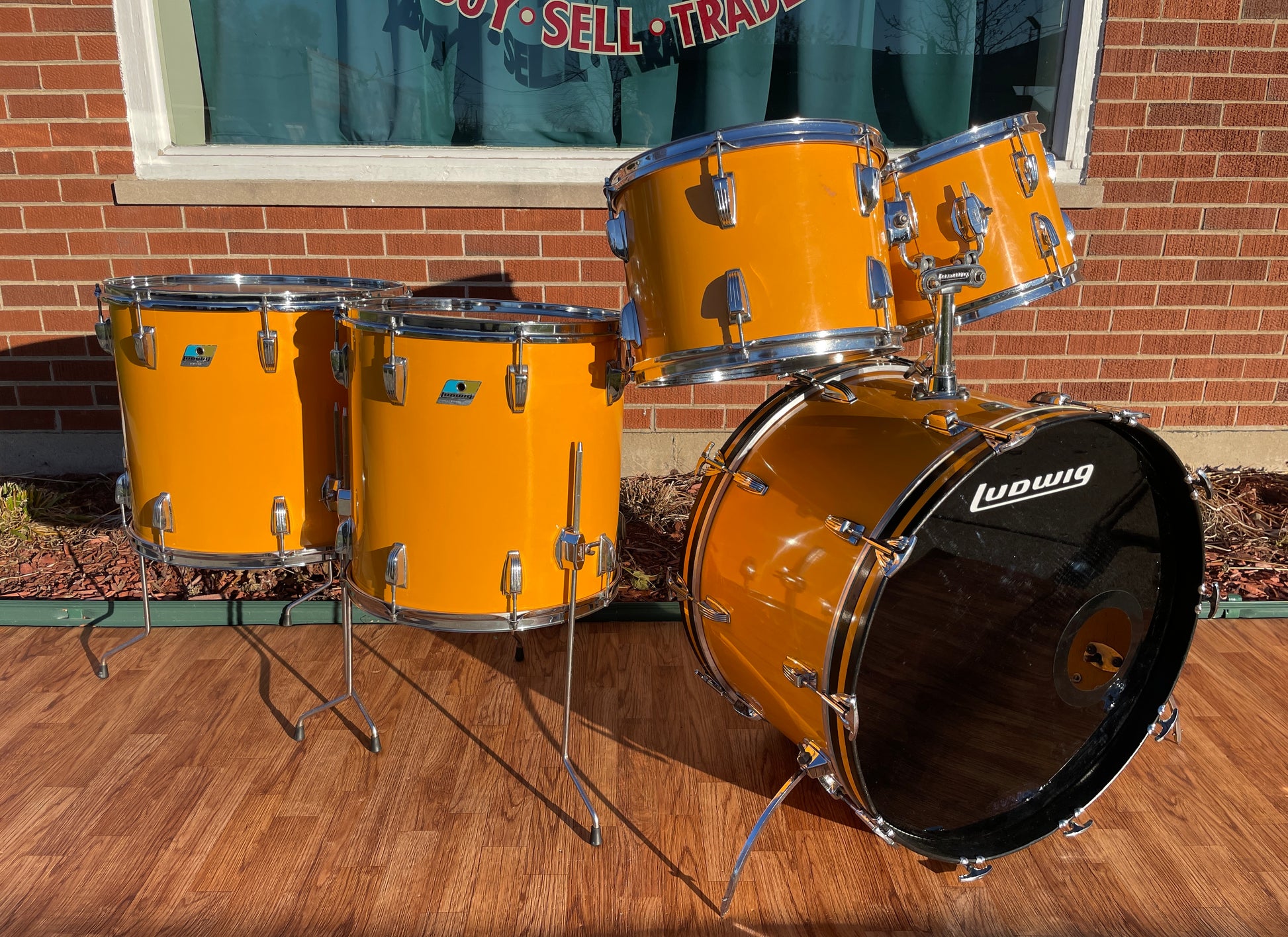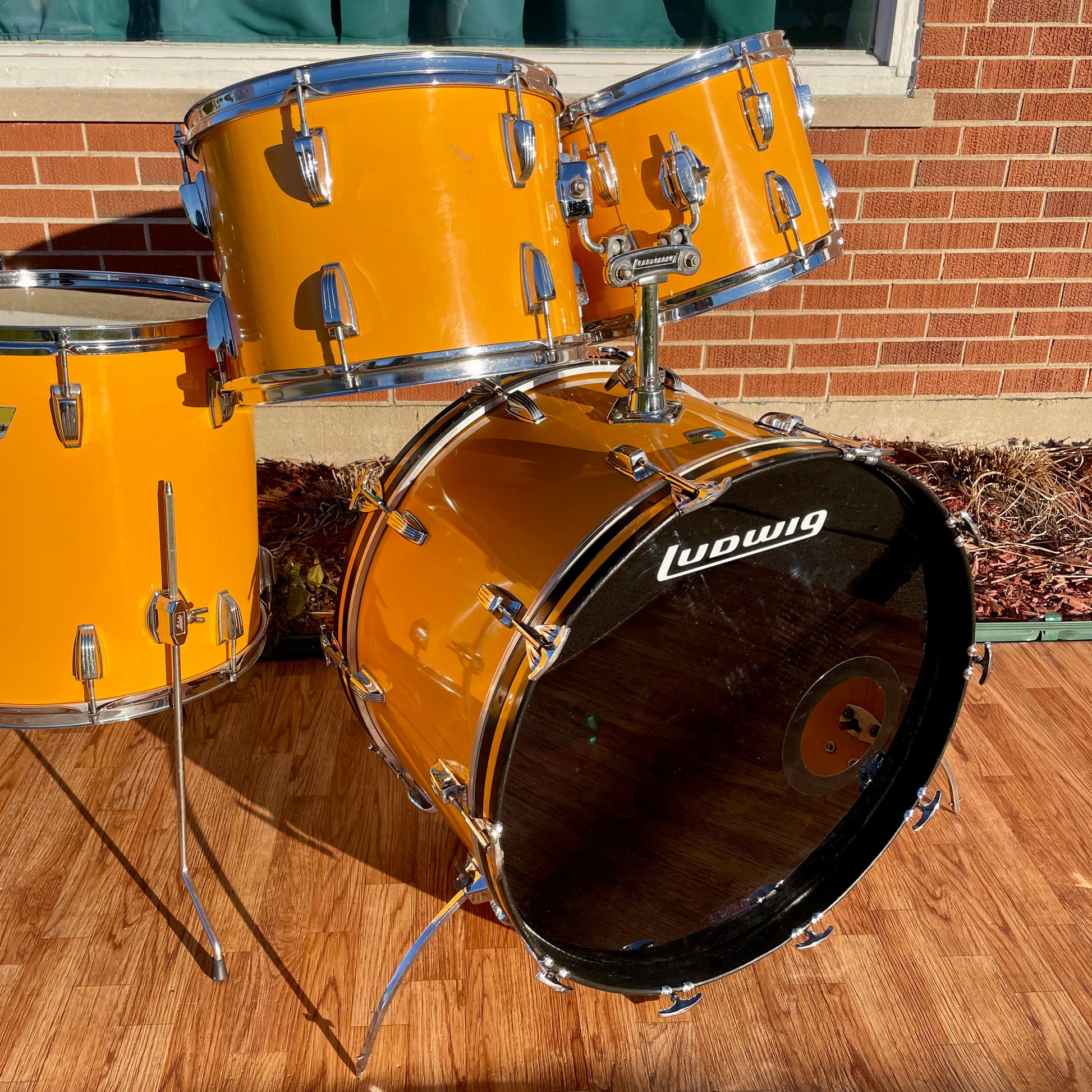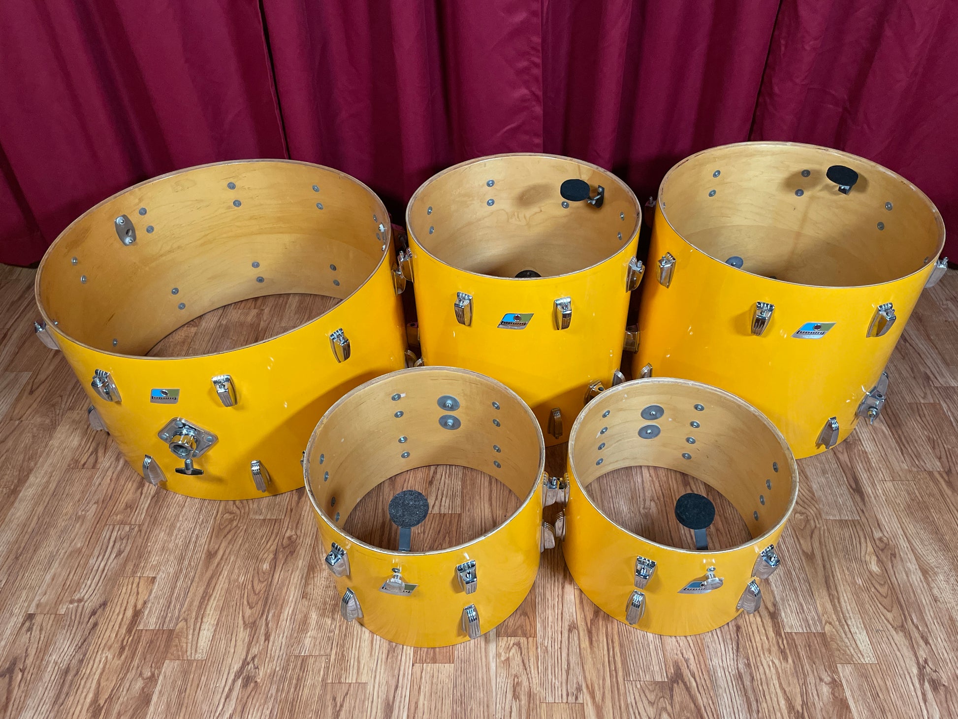 Rare 1970s Ludwig Drum Set Yellow Cortex 24/13/14/16/18