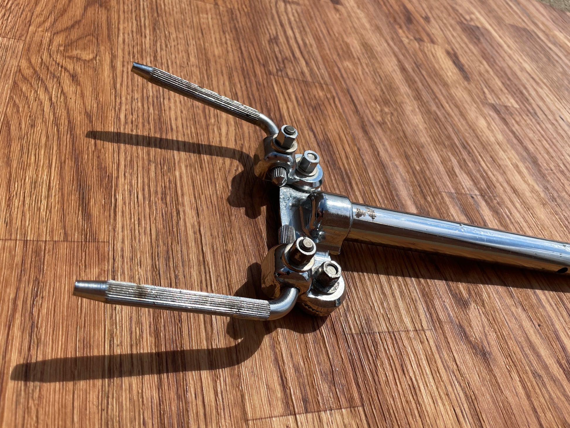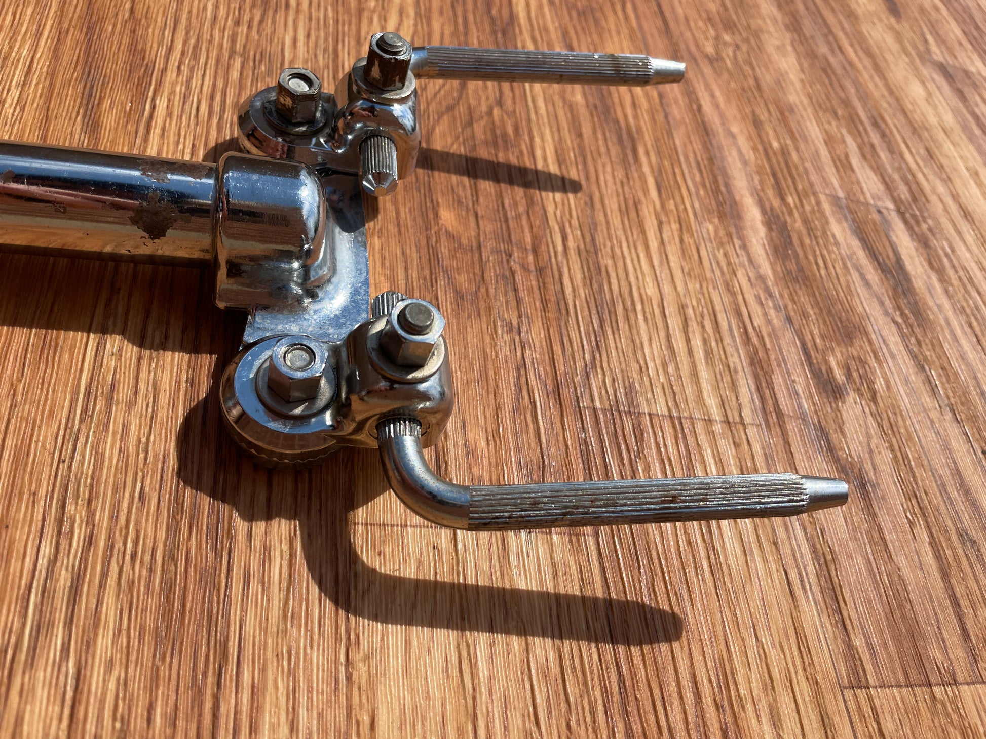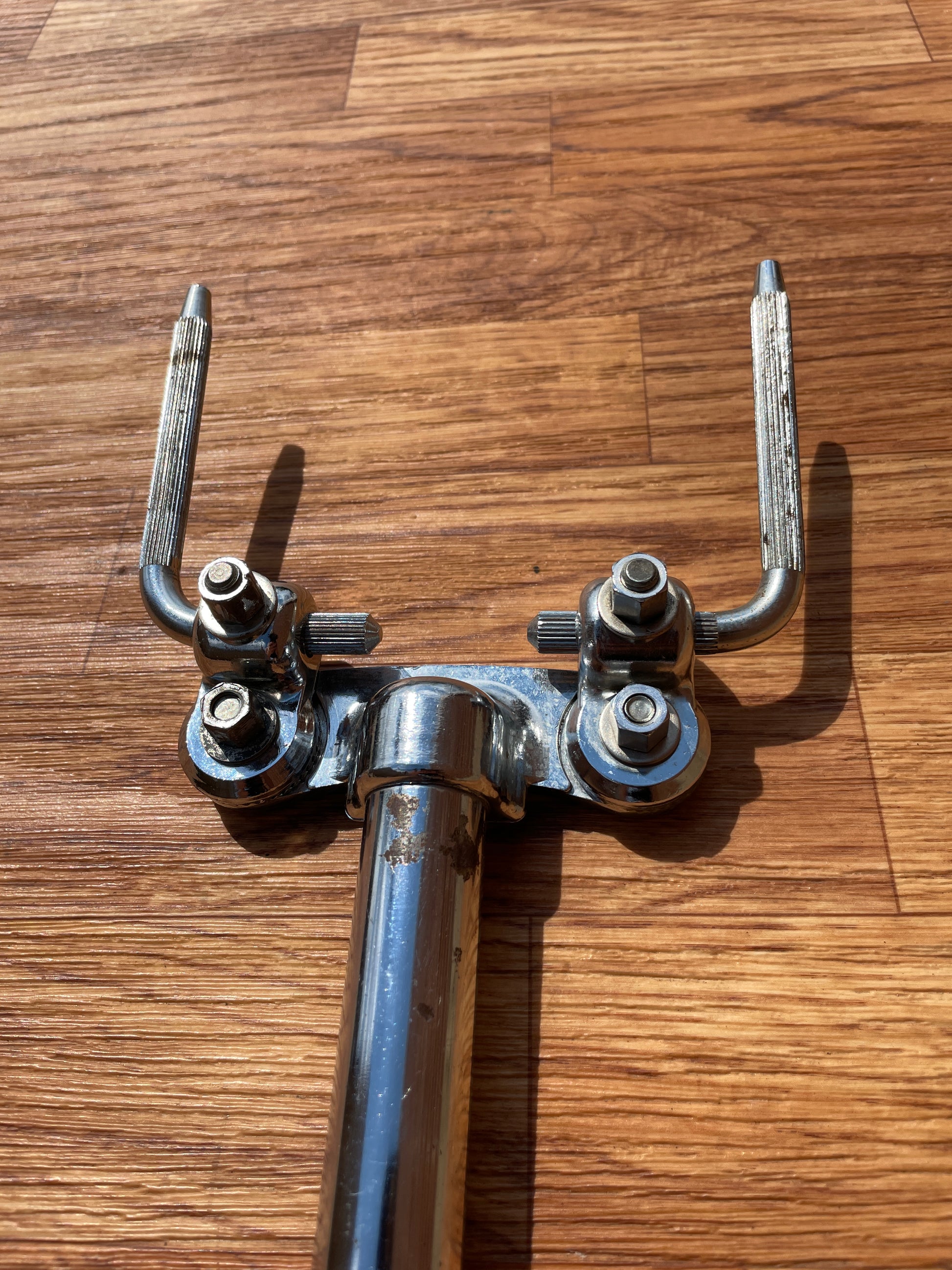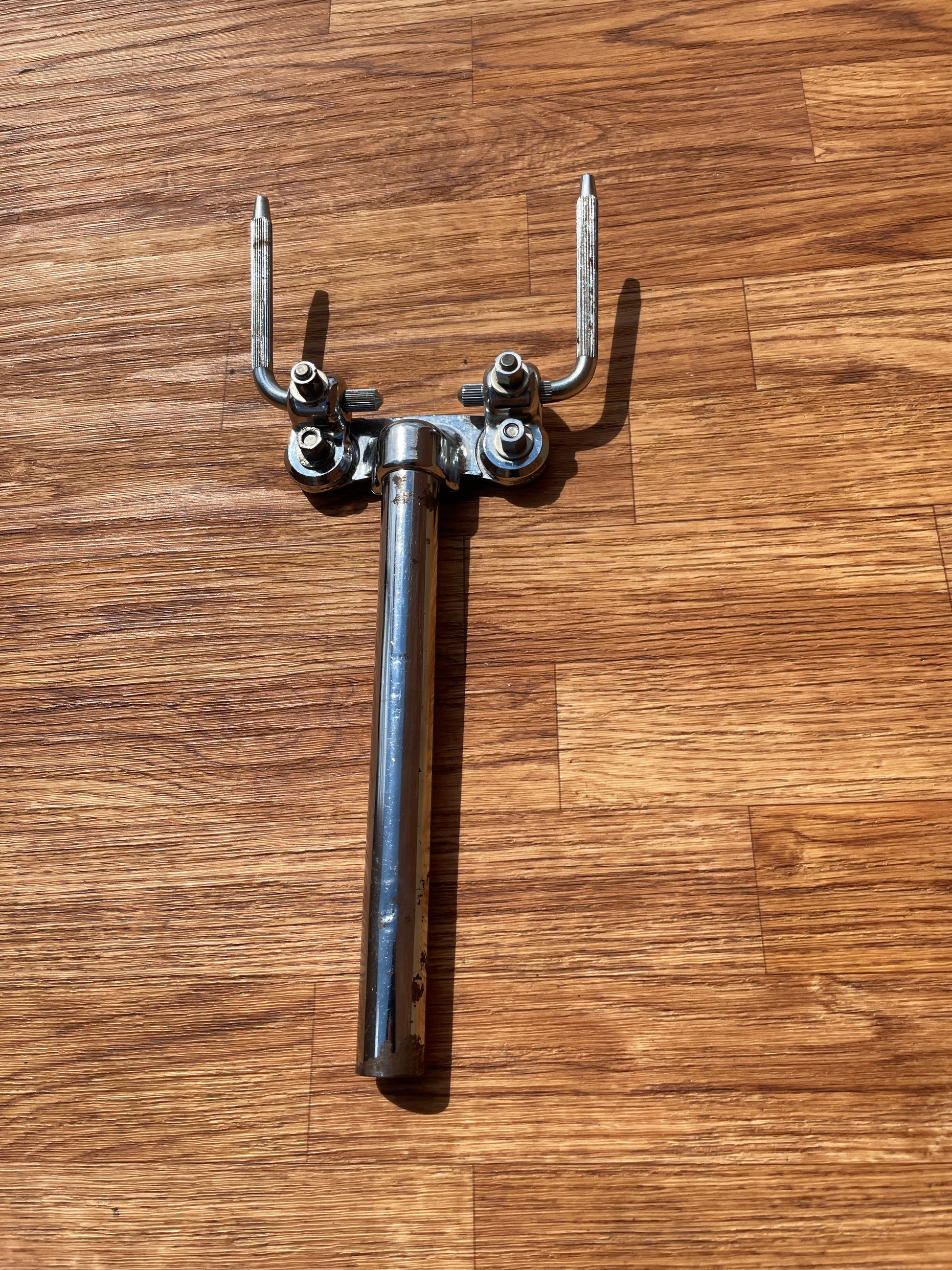 For your kind consideration is this vintage Ludwig No. 781-2 short double tom post from the 1970s. It's in good shape with normal play wear, including some marks and light oxidation, one hole drilled through the tube, see attached pics. Enjoy! shipping charges.
