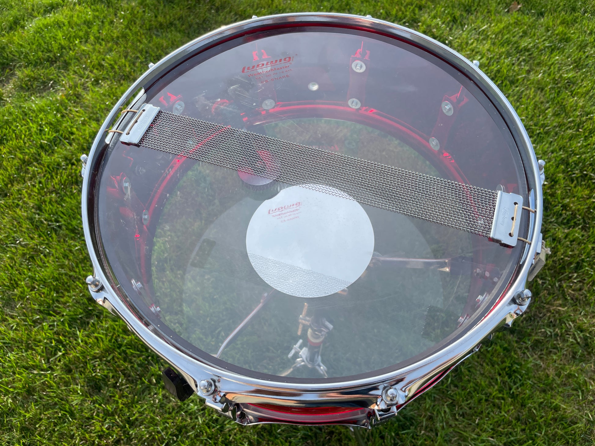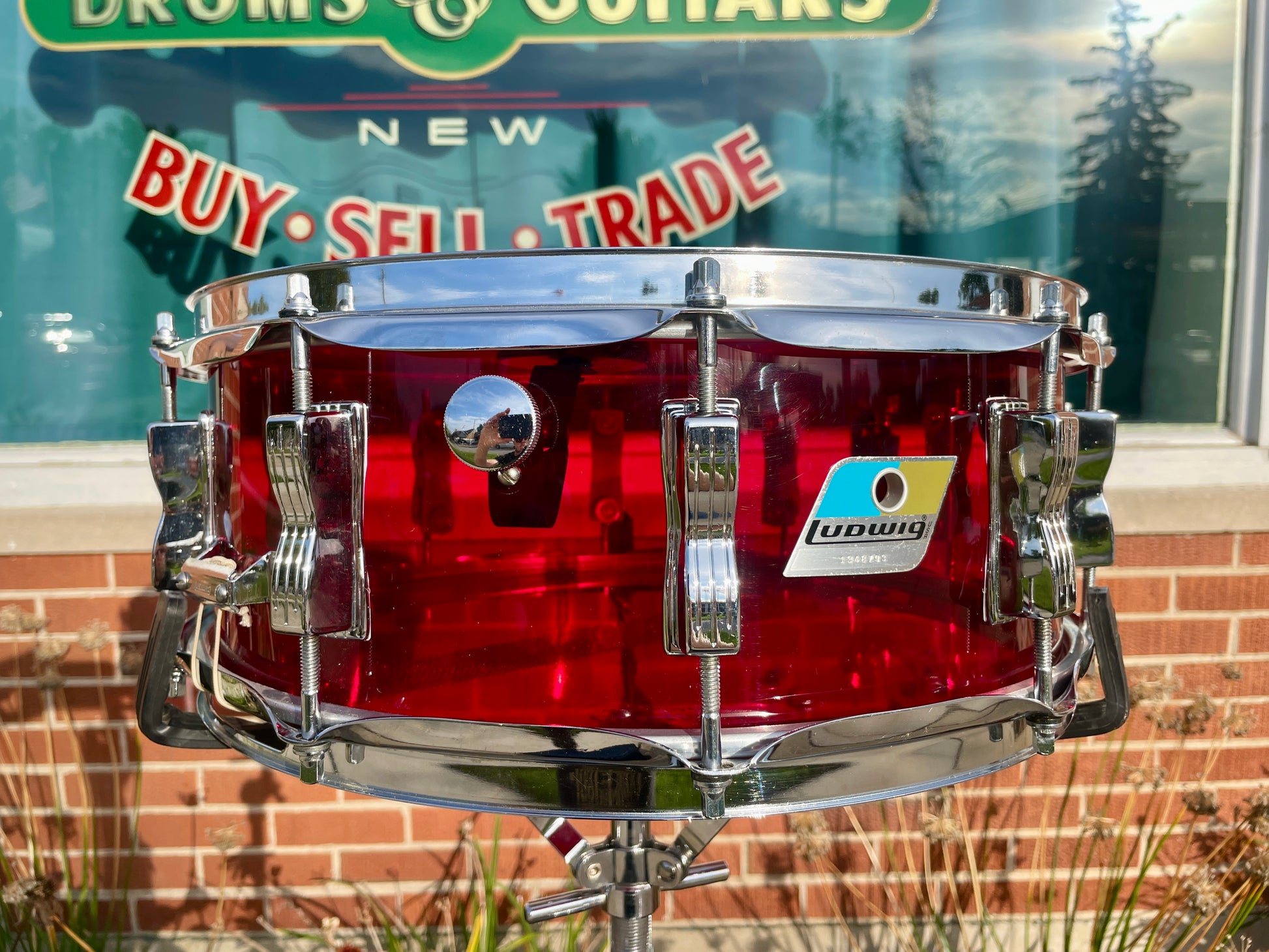 1970s Ludwig Red Vistalite 5x14 Snare Drum 10-Lug