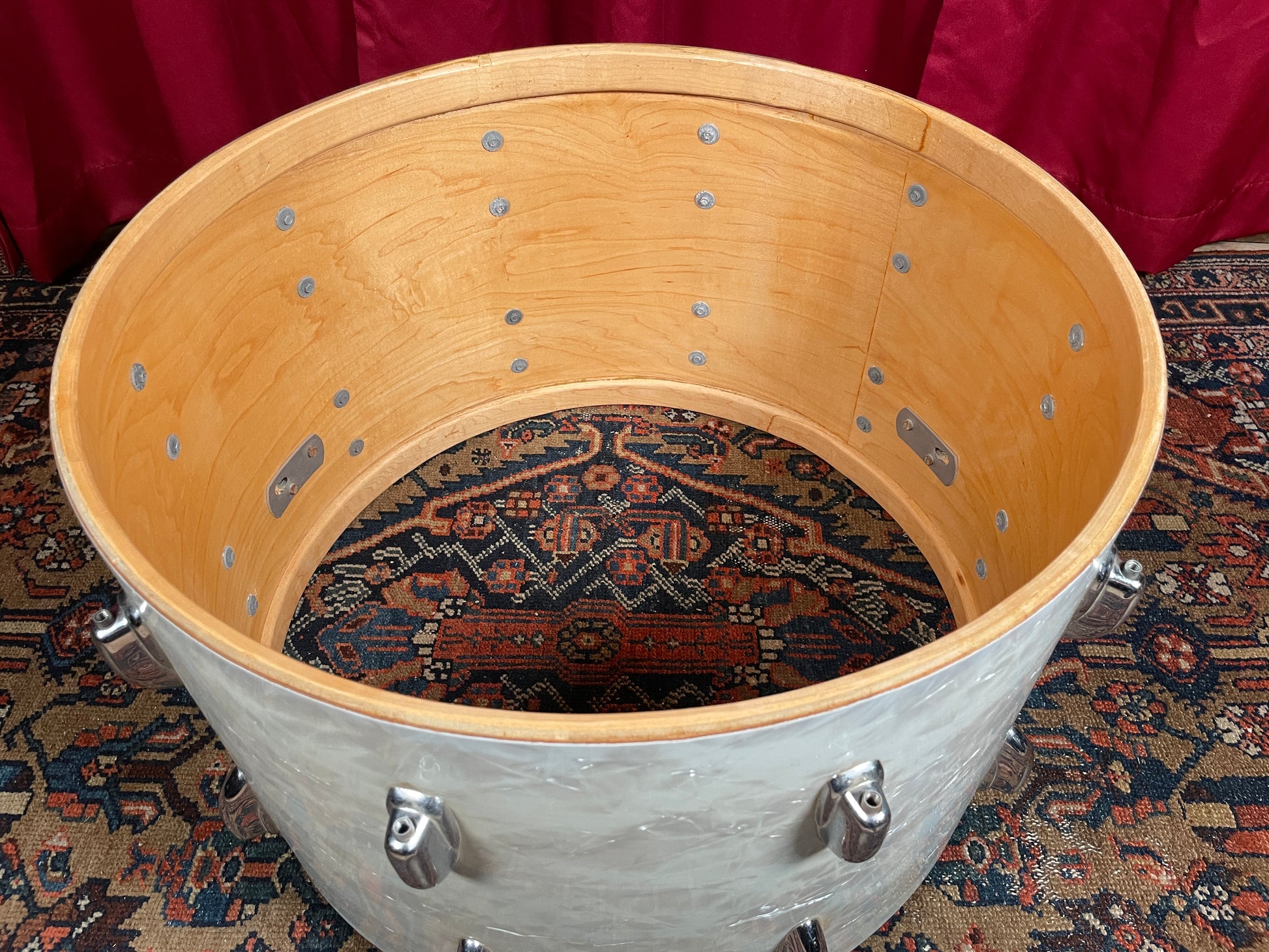 1970s Slingerland 14x22 Virgin Bass Drum White Marine Pearl