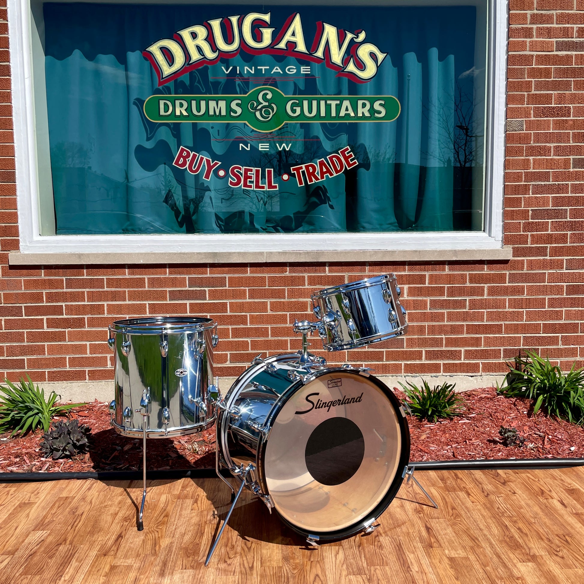 1970s Slingerland No. 9N Modern Jazz Outfit Drum Set Chrome Over Wood 20/12/14