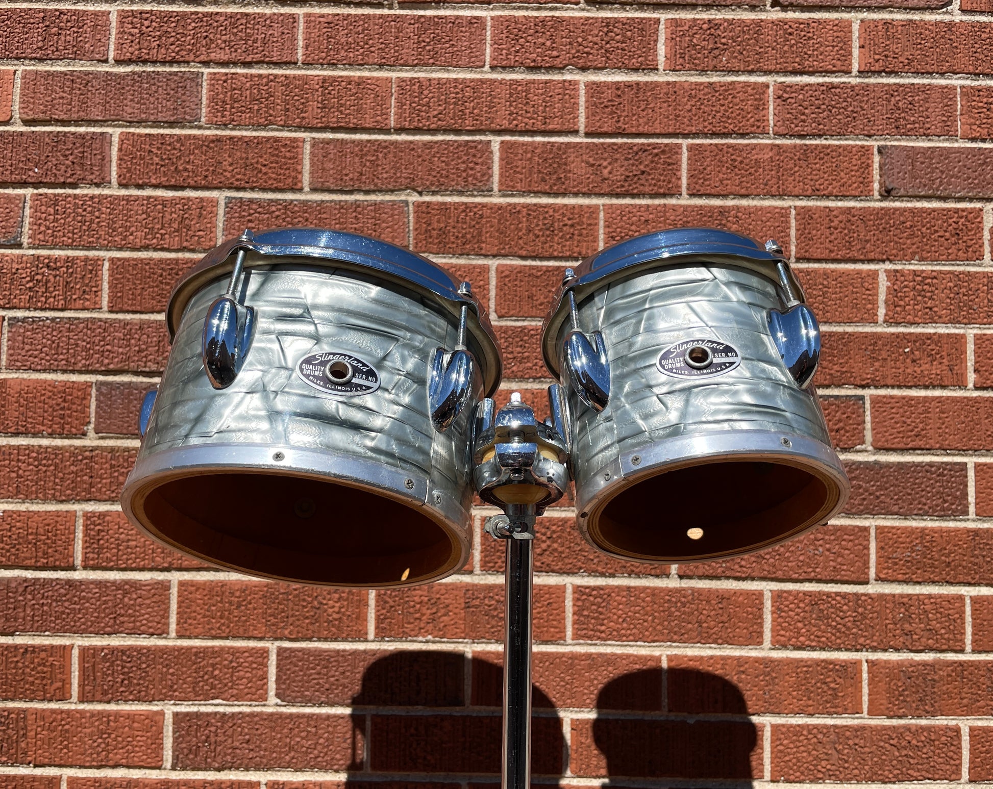 1970s Slingerland 6" / 8" Concert Tom Pair Sky Blue Pearl w/ Stand
