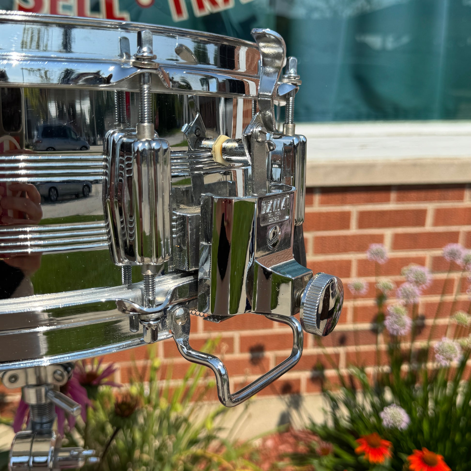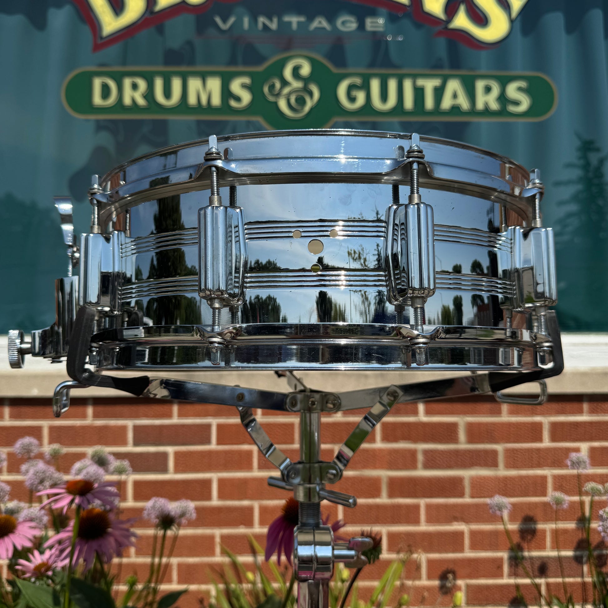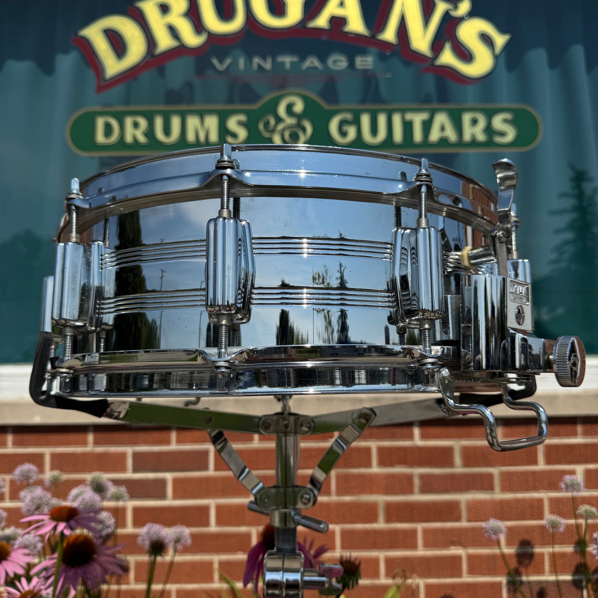 For your kind consideration is this vintage Tama 5x14 No. 8005 King Beat Seamless Steel snare drum made in Japan in the 1980s. It's in great overall condition with some light pitting and has the warm tone you expect from a 70s Tama steel snare. These heavy shells are the same used for Tama's Mastercraft snares during this era with a perfect 45 degree angle on the bearing edge. It has some very light aging as shown, is missing the muffler, and has non-original hoops. The original KG Parallel Action strainer and butt system works smoothly and has the original 6025 Steel Snappy Snares and bottom head. There are no extra holes or other modifications. Most importantly, it tunes up easily, sounds awesome and is a superb player's drum. Enjoy!