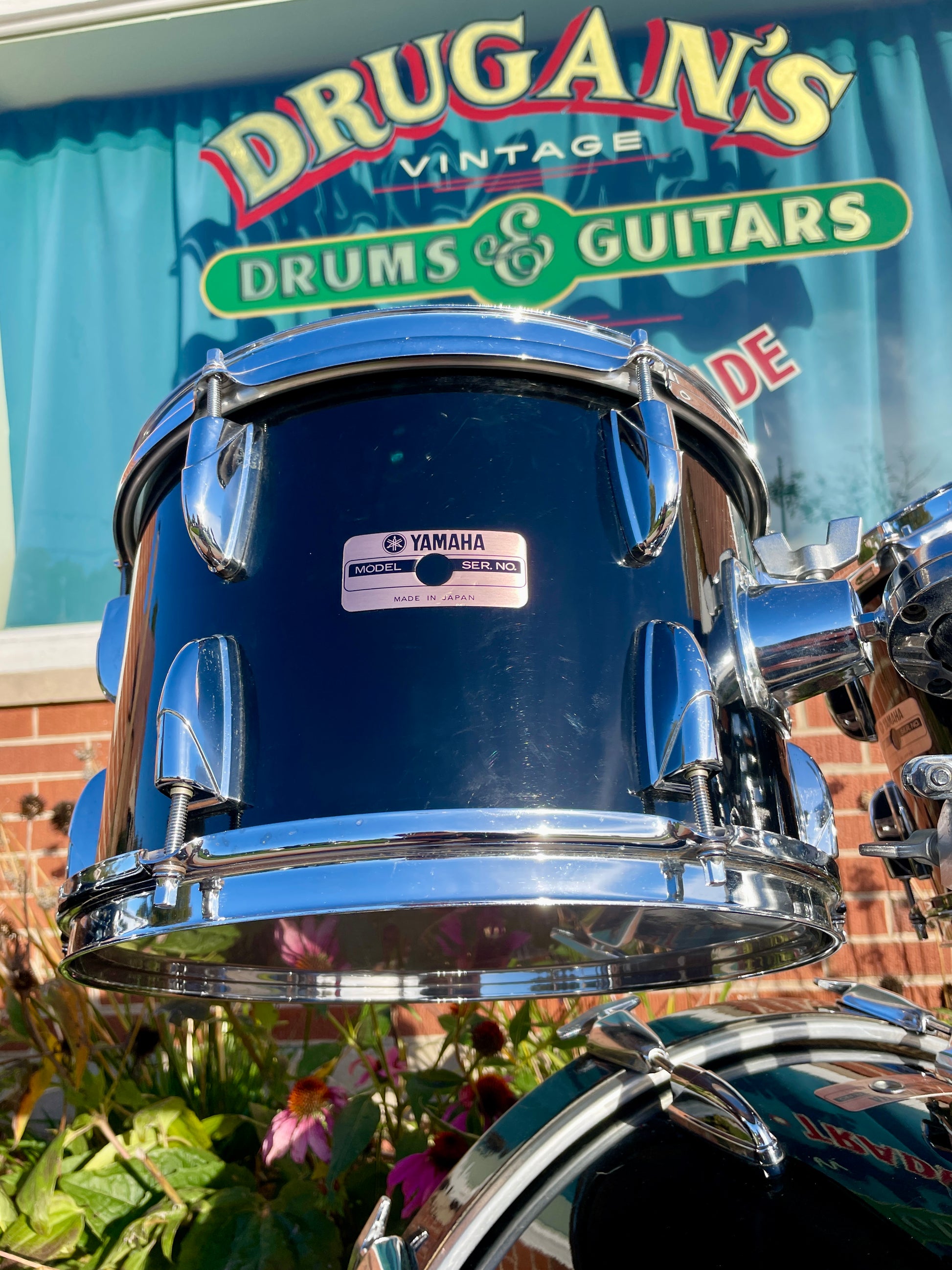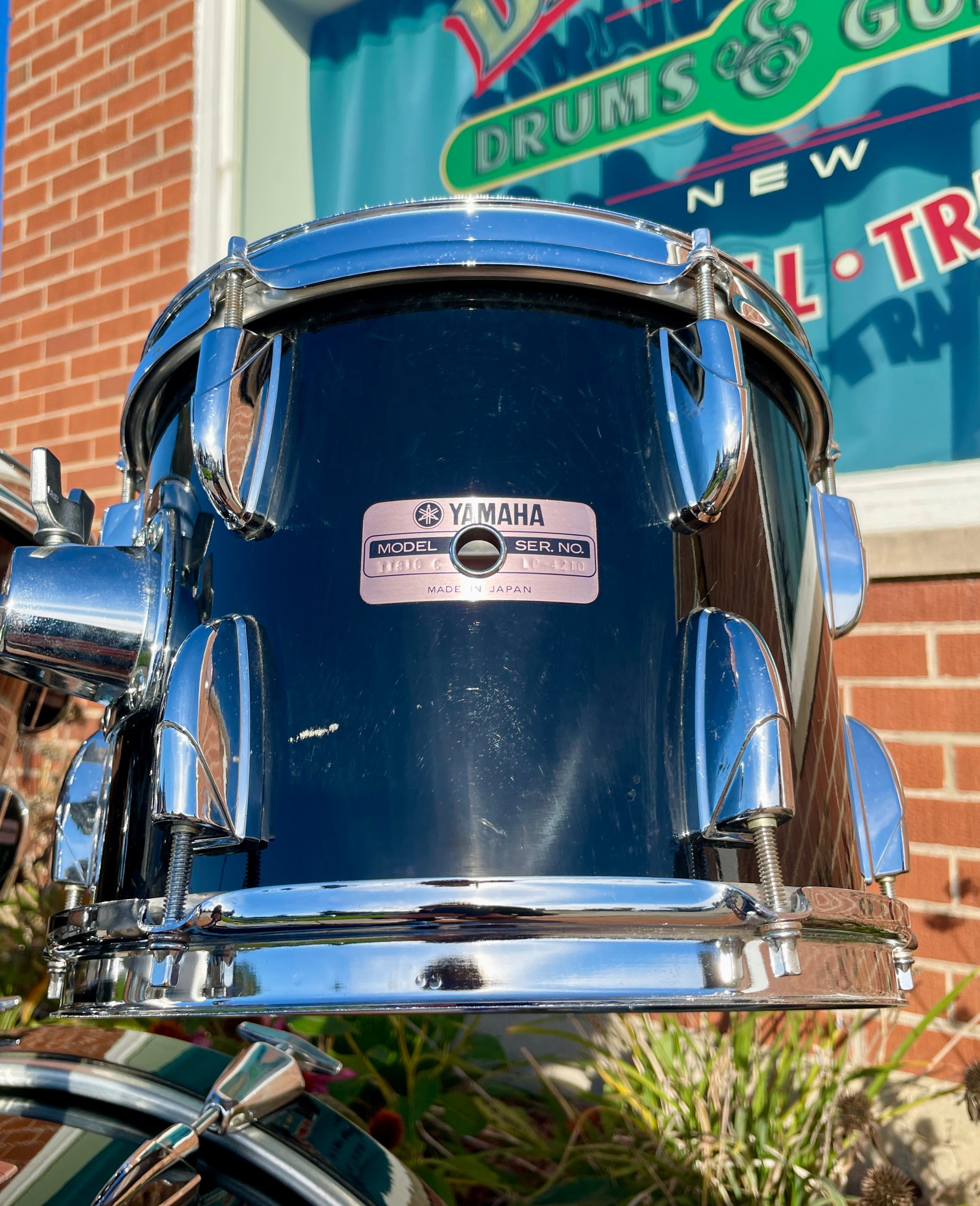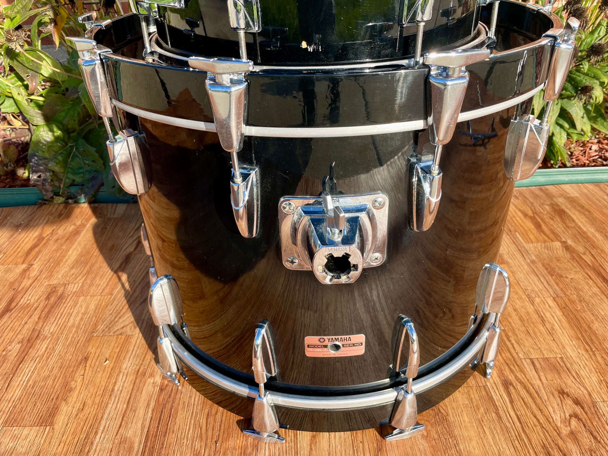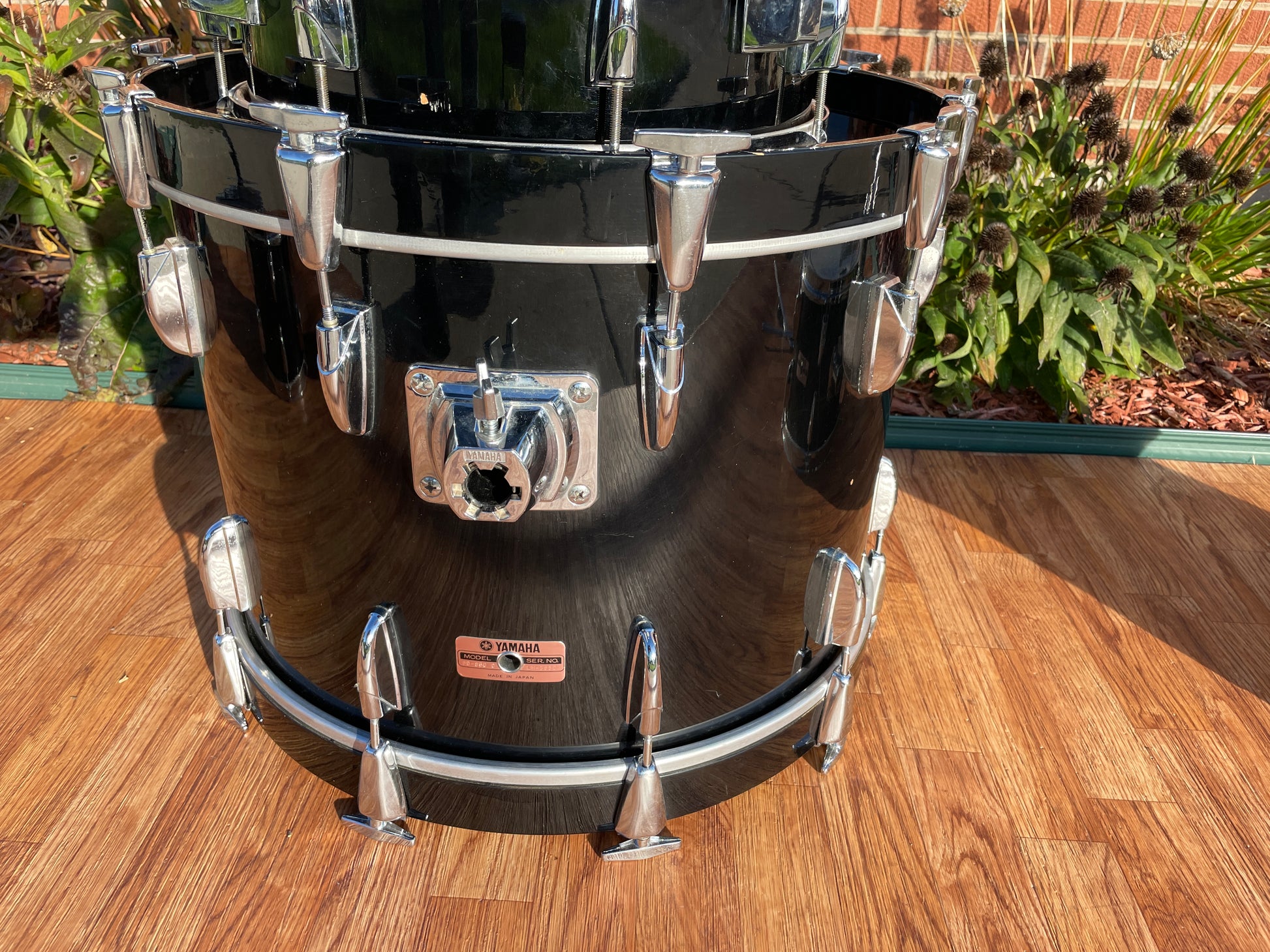 For your prime viewing pleasure is this killer Yamaha Tour Custom drum in Solid Piano Black lacquer finish from mid 1980s. This set is a made in Japan model built during what is widely considered Yamaha's golden period in September 1985 based on the serial number. The birch/mahogany shells have the powerful, deep, warm tone that the this series is known for. The set is in good condition with normal wear to the finish and hardware and a few small dings and dents as shown. It is all original including the heads, and the double tom mount and arms are included. Most importantly, it tunes up easily and sounds incredible! If you've been wanting to add Tour Custom set to your life, this one is ready to gig. Theses sizes don't pop up very often, so seize the moment. Enjoy!