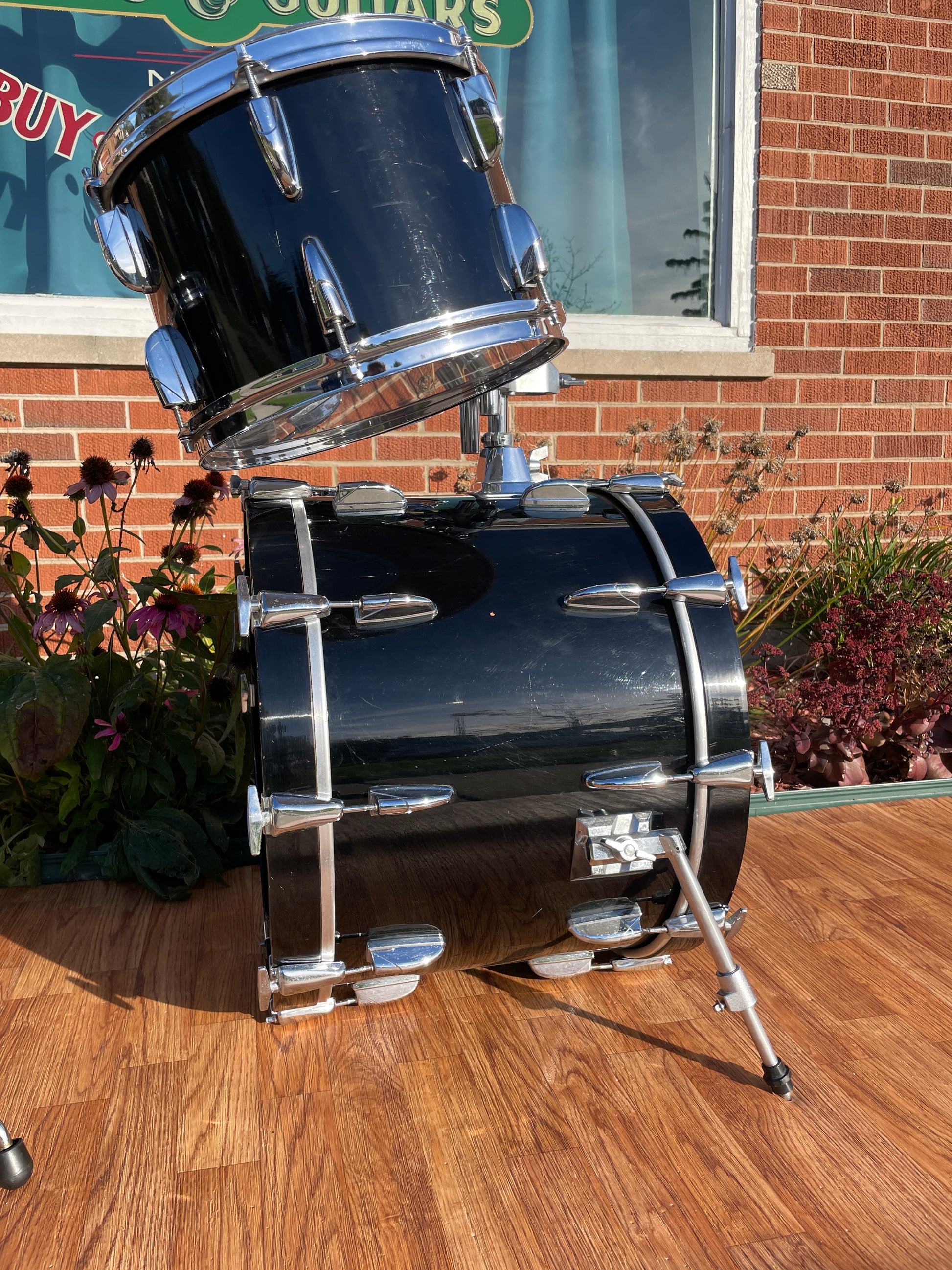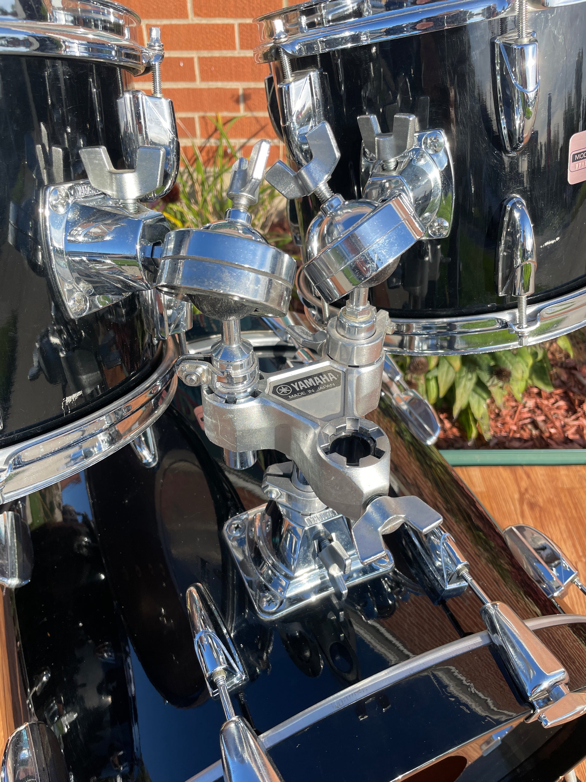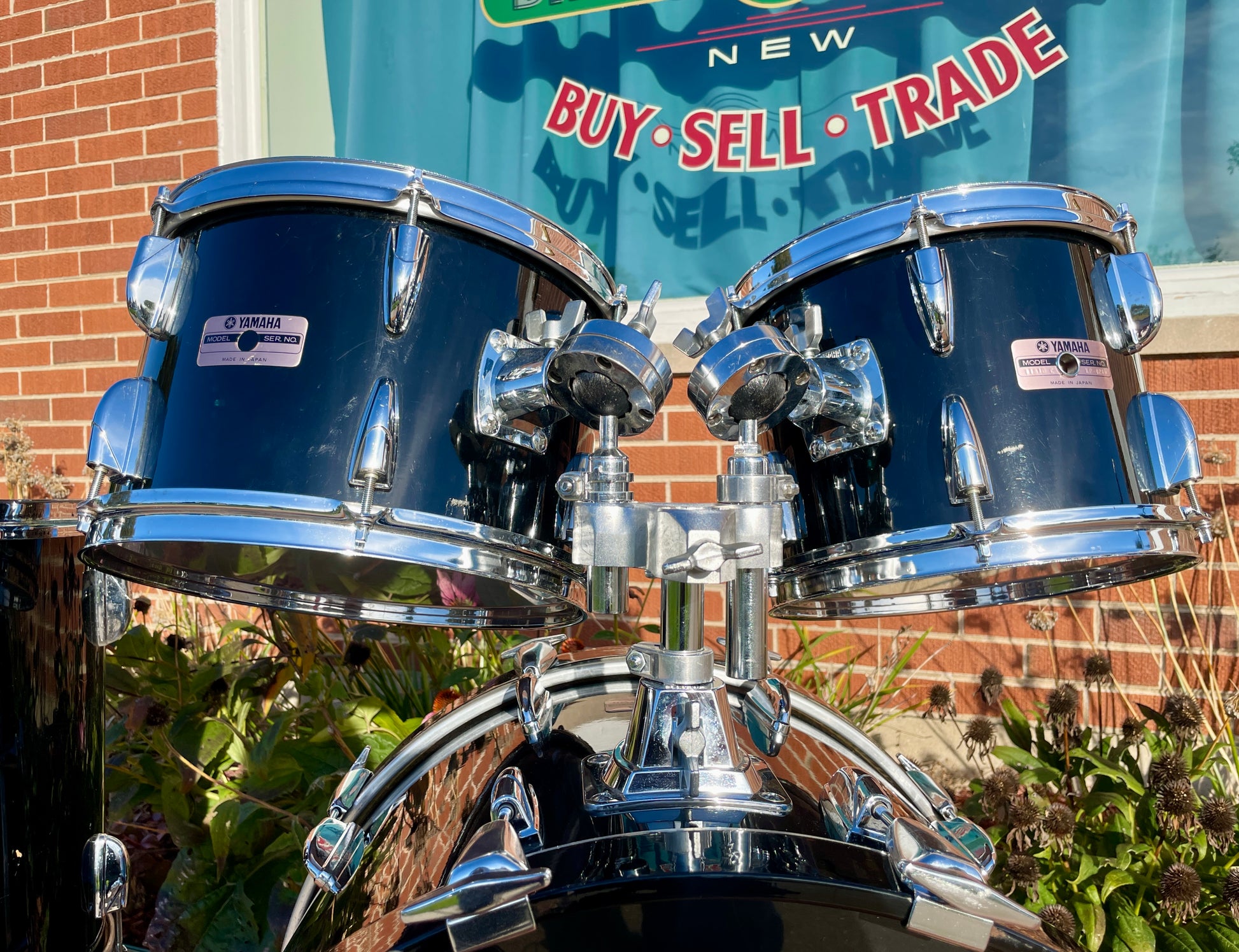 For your prime viewing pleasure is this killer Yamaha Tour Custom drum in Solid Piano Black lacquer finish from mid 1980s. This set is a made in Japan model built during what is widely considered Yamaha's golden period in September 1985 based on the serial number. The birch/mahogany shells have the powerful, deep, warm tone that the this series is known for. The set is in good condition with normal wear to the finish and hardware and a few small dings and dents as shown. It is all original including the heads, and the double tom mount and arms are included. Most importantly, it tunes up easily and sounds incredible! If you've been wanting to add Tour Custom set to your life, this one is ready to gig. Theses sizes don't pop up very often, so seize the moment. Enjoy!