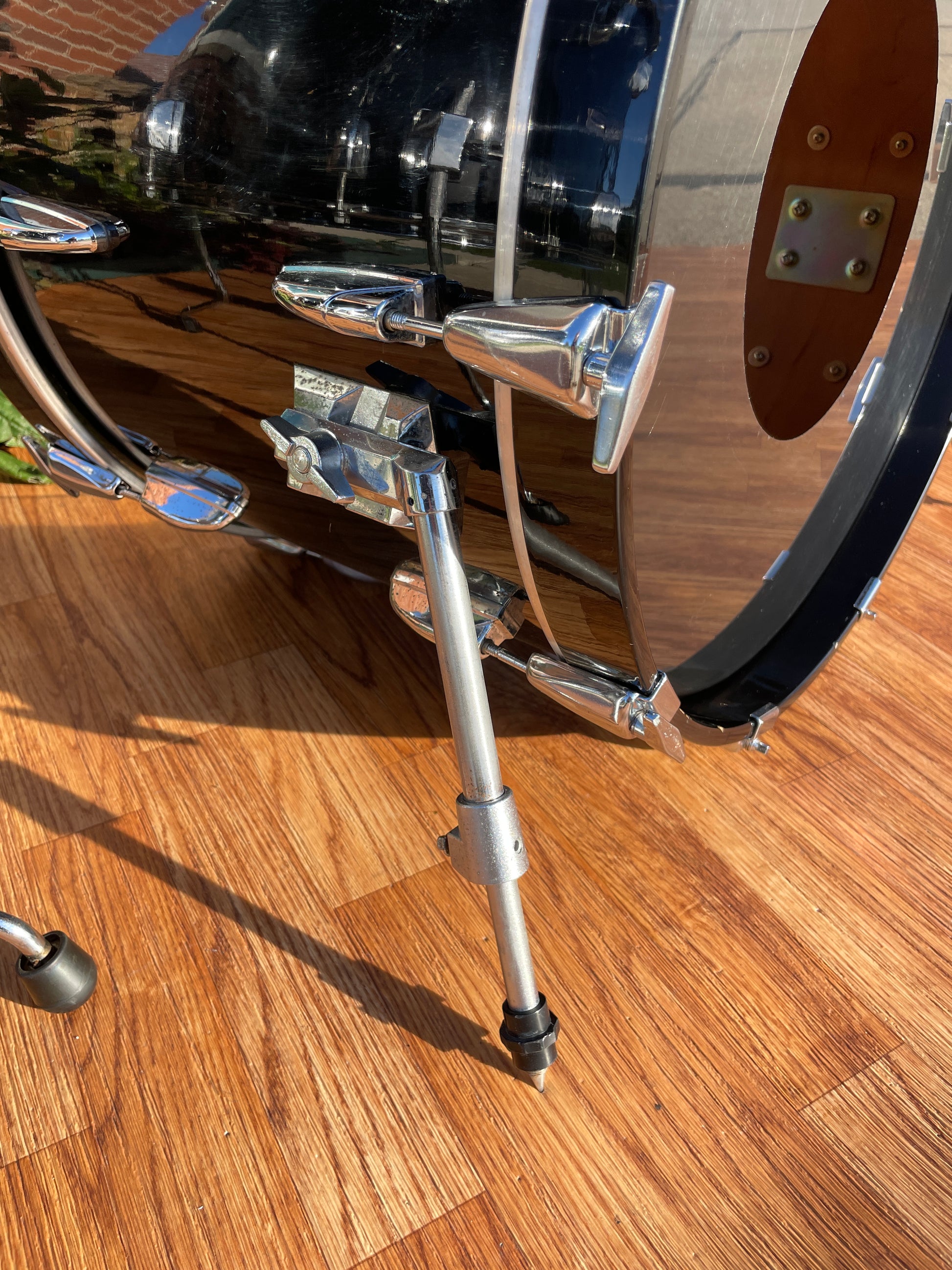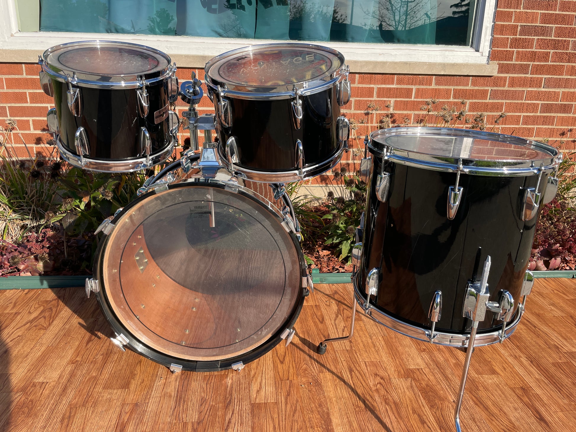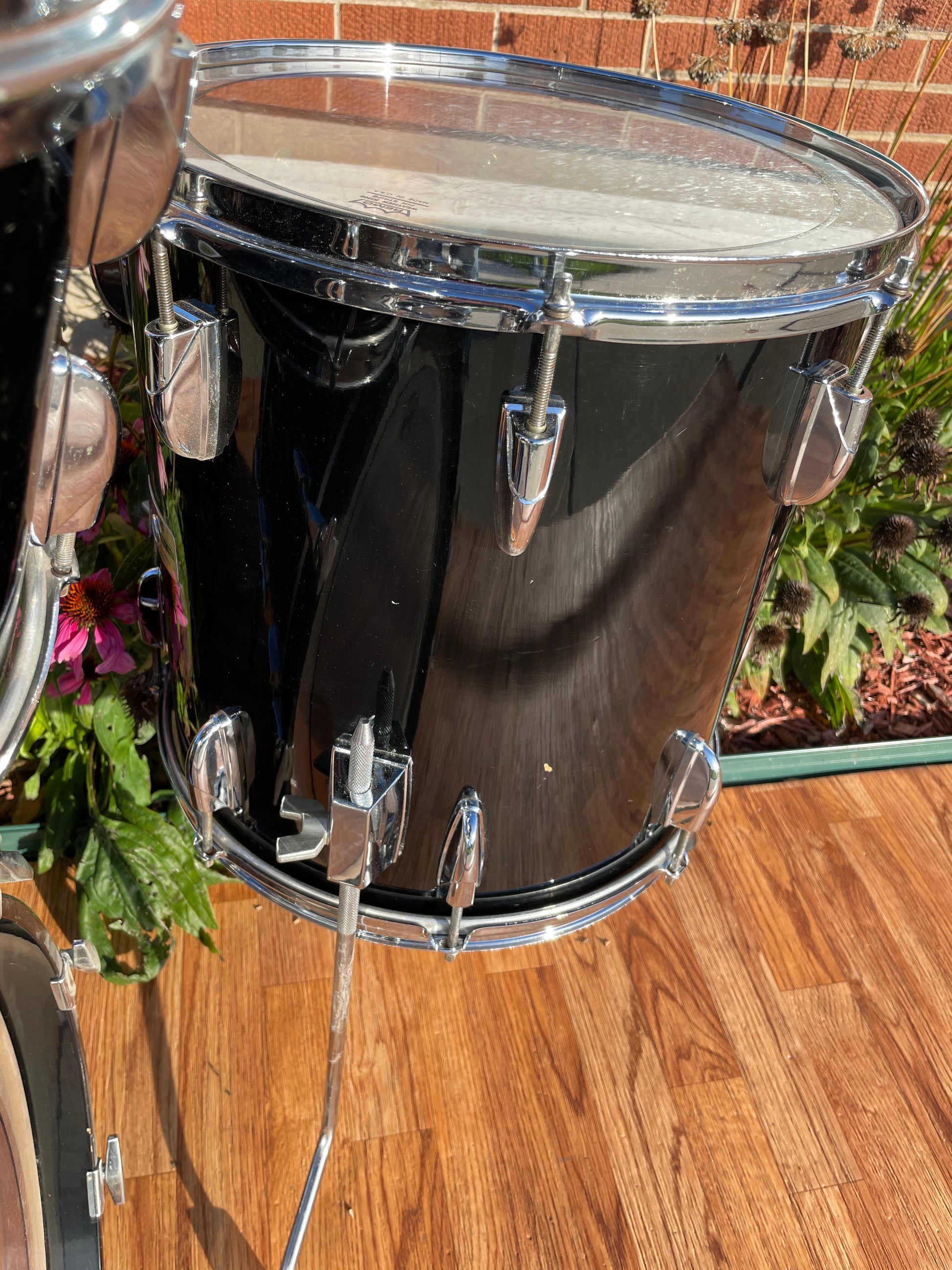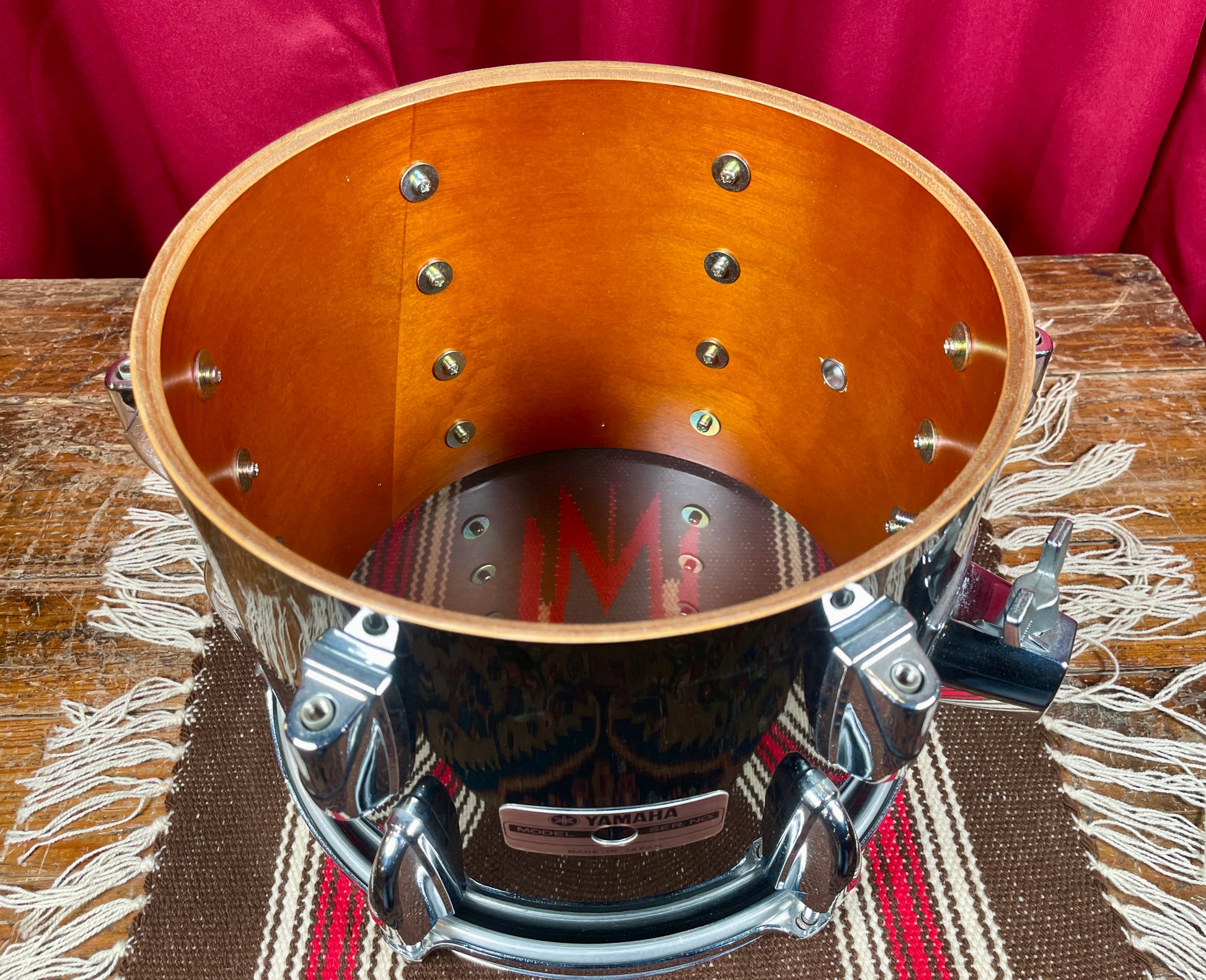For your prime viewing pleasure is this killer Yamaha Tour Custom drum in Solid Piano Black lacquer finish from mid 1980s. This set is a made in Japan model built during what is widely considered Yamaha's golden period in September 1985 based on the serial number. The birch/mahogany shells have the powerful, deep, warm tone that the this series is known for. The set is in good condition with normal wear to the finish and hardware and a few small dings and dents as shown. It is all original including the heads, and the double tom mount and arms are included. Most importantly, it tunes up easily and sounds incredible! If you've been wanting to add Tour Custom set to your life, this one is ready to gig. Theses sizes don't pop up very often, so seize the moment. Enjoy!