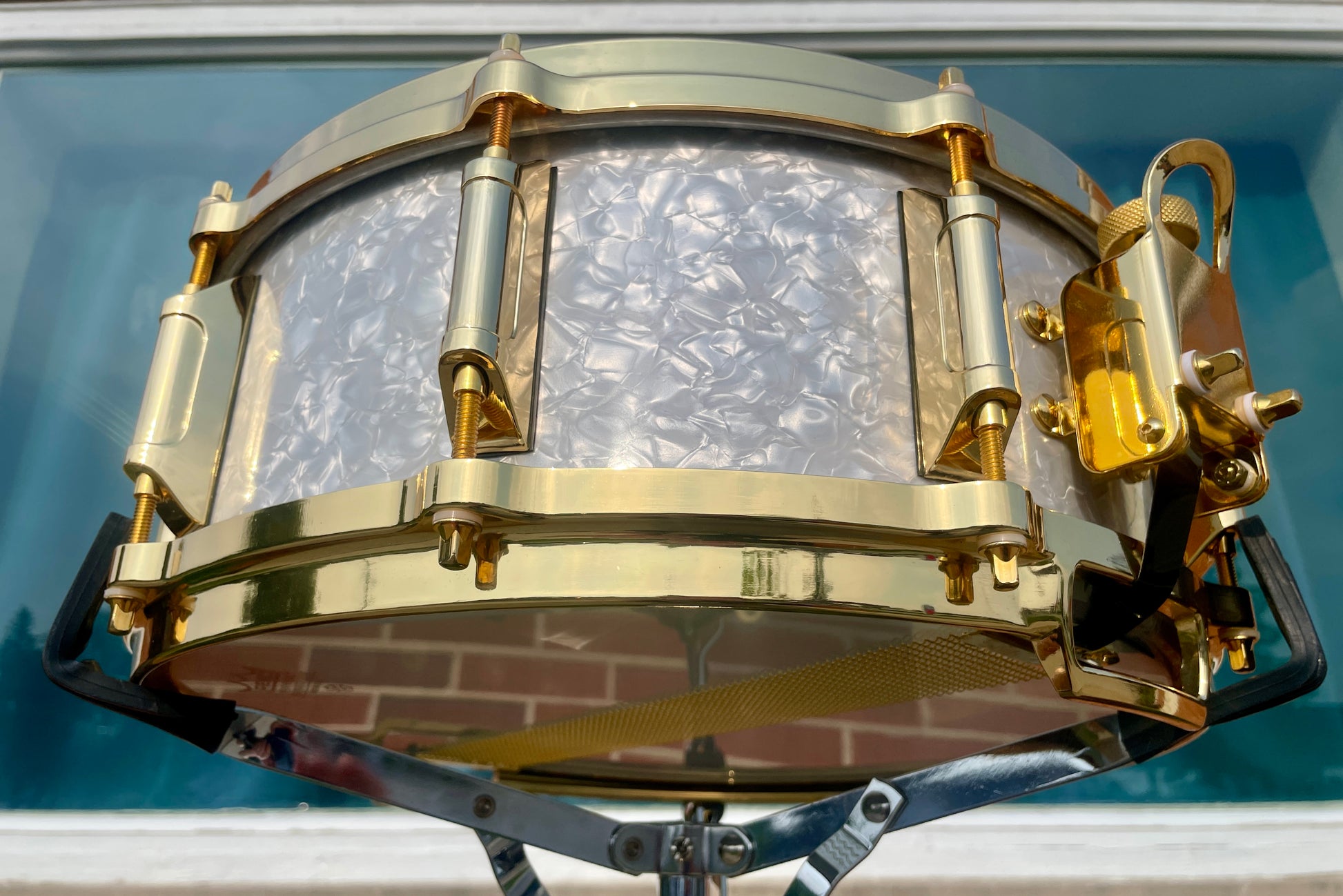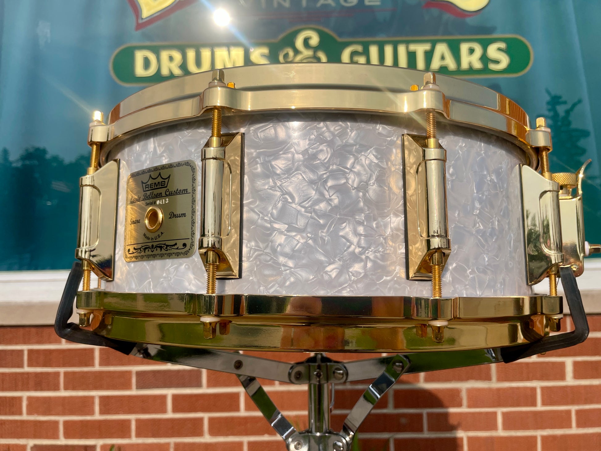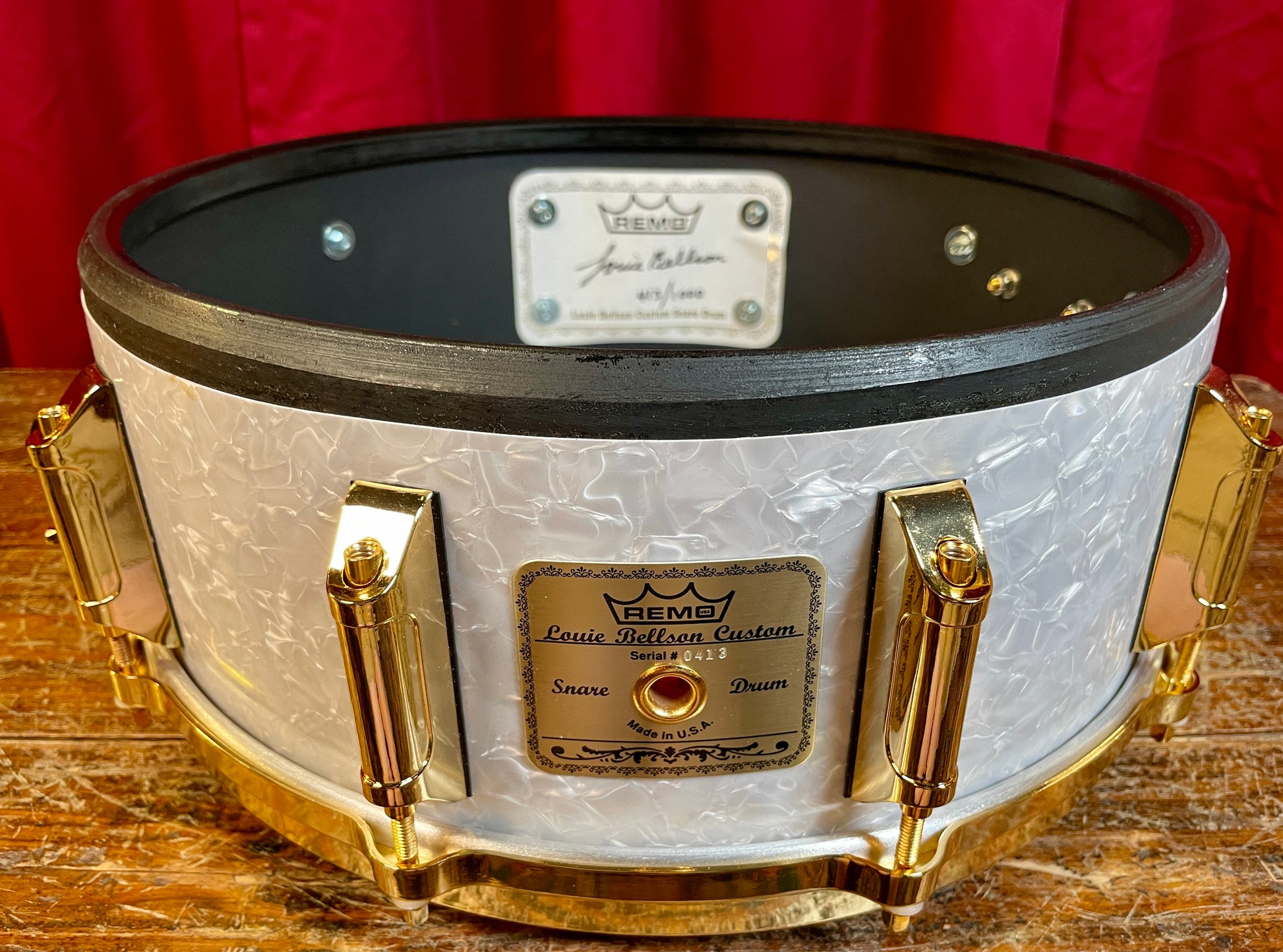 1999 Remo Louie Bellson Signature 5.5x14 Snare Drum White Marine Pearl #413 of 1000 NOS