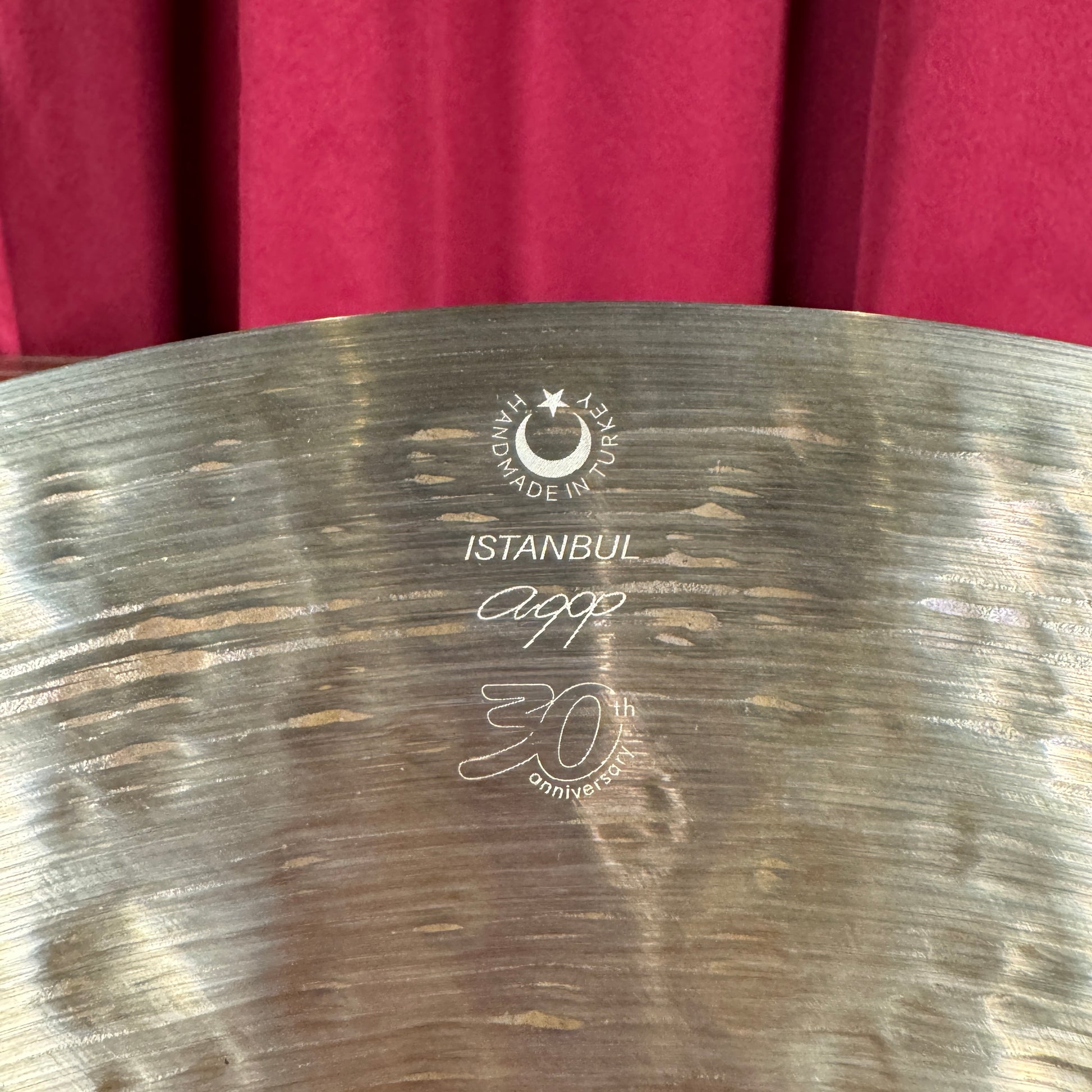 For your kind consideration is this brand new 20" Istanbul Agop 30th Anniversary ride cymbal. These ride cymbals offer rich, full tone and definitive sticking with a complex dark roar underneath. This one weighs in at 1906 grams. Enjoy!
