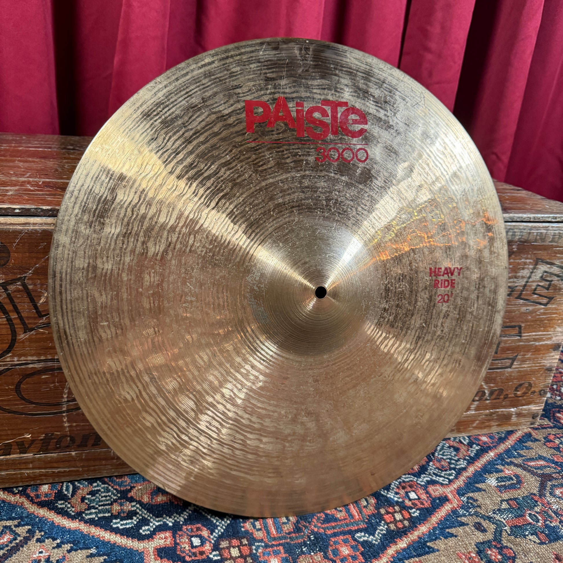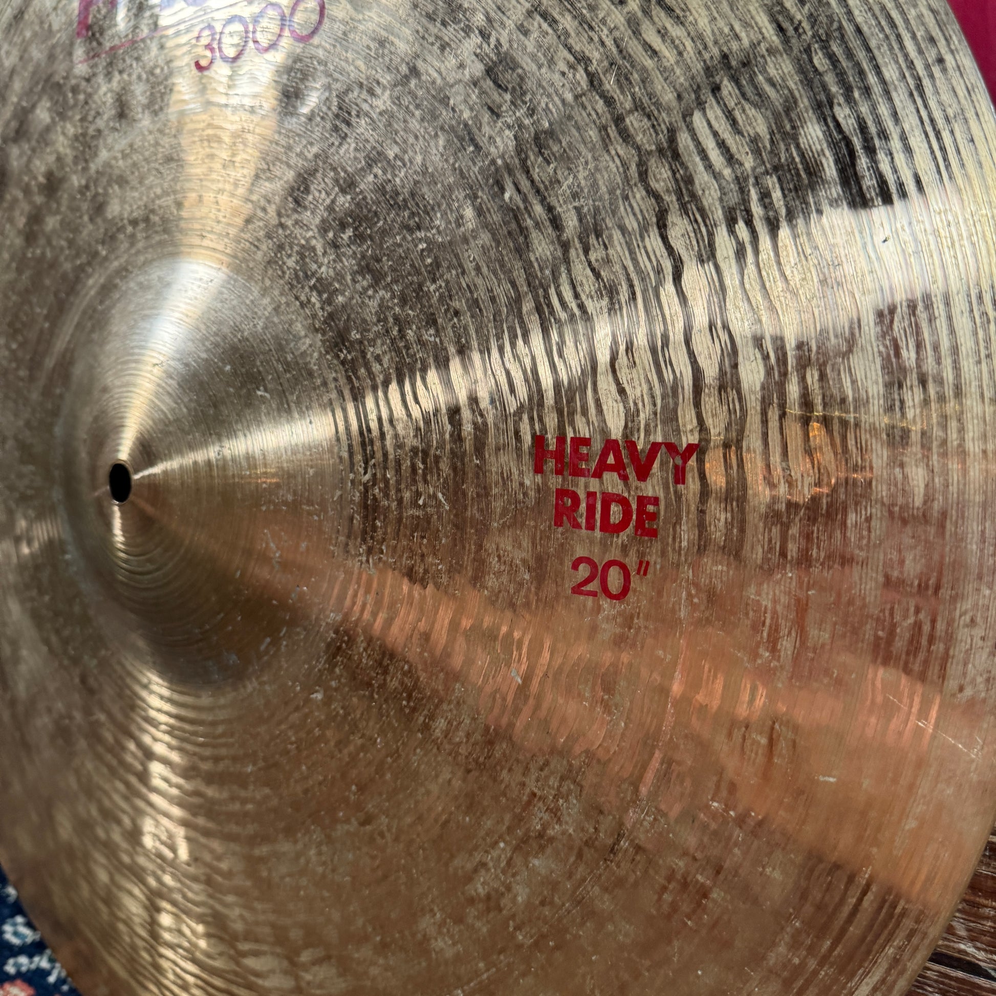 For your kind consideration is this 20" Paiste 3000 Heavy Ride cymbal from 1987. It's in very good condition and sounds huge. Slightly darker sound with lots of projection and a strong stick definition that can cut through heavy guitar tones with ease. No cracks, bends, flea bites, or keyhole. Weighs in at 2972 grams. Enjoy!