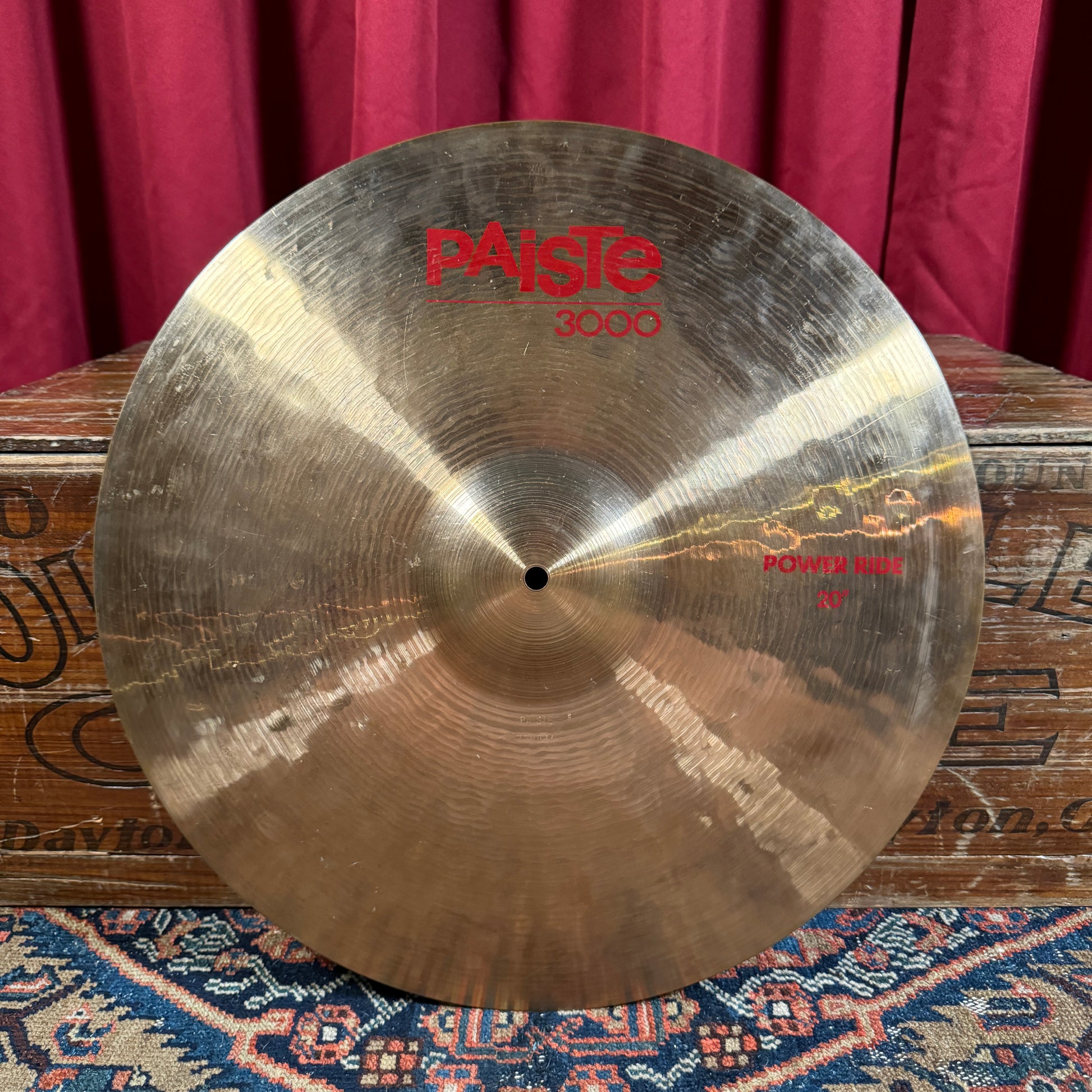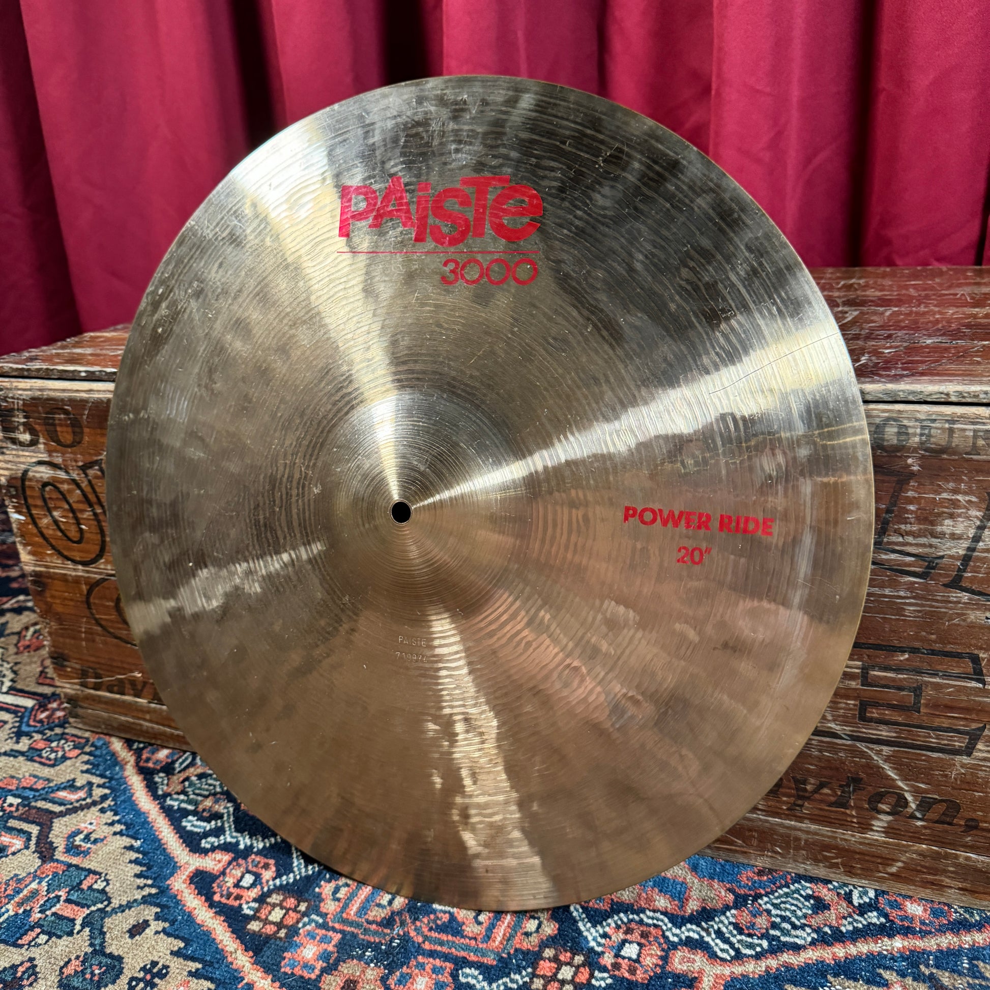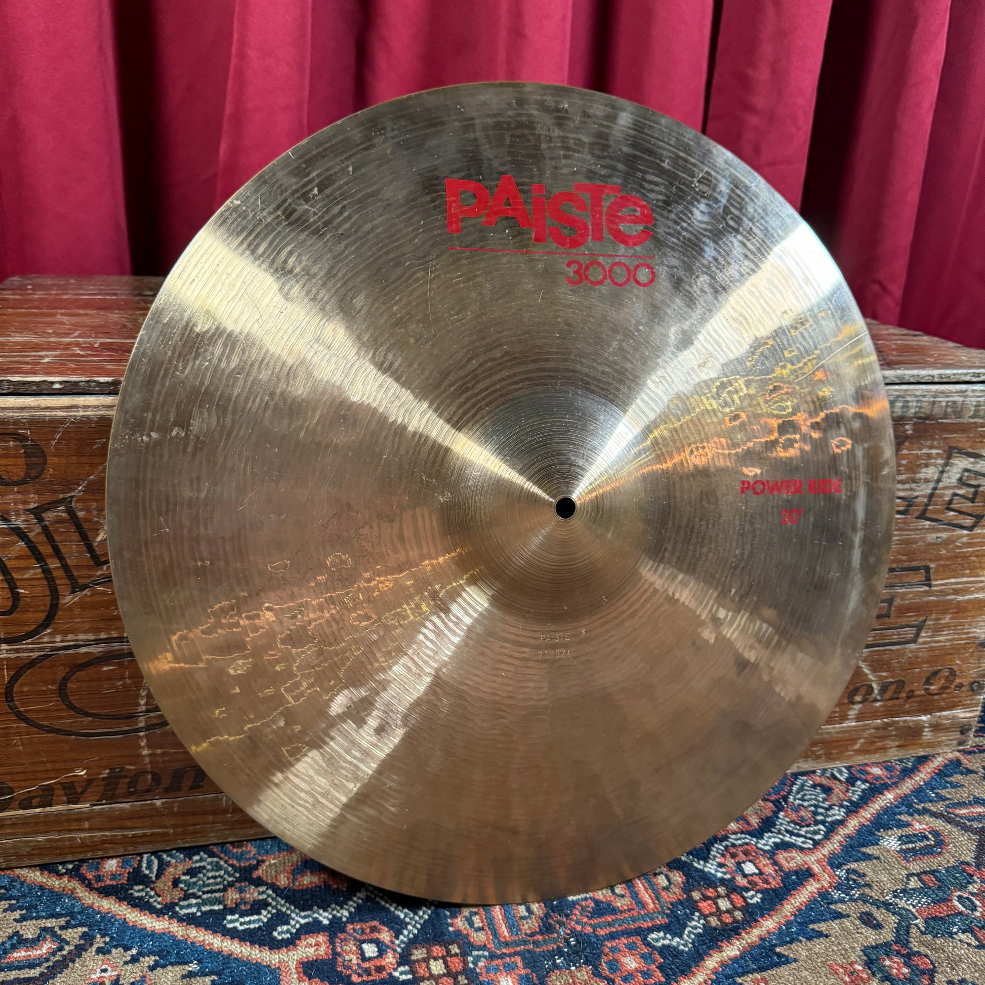 For your kind consideration is this 20" Paiste 3000 Power Ride cymbal from 1987. It's in great condition and sounds loud and powerful. Bright, clear ping with a short sustain and a little wash, this ride cuts! There are a few small spots of edge roughness and no cracks, bends, flea bites, or keyhole. Weighs in at 2846 grams. Enjoy!