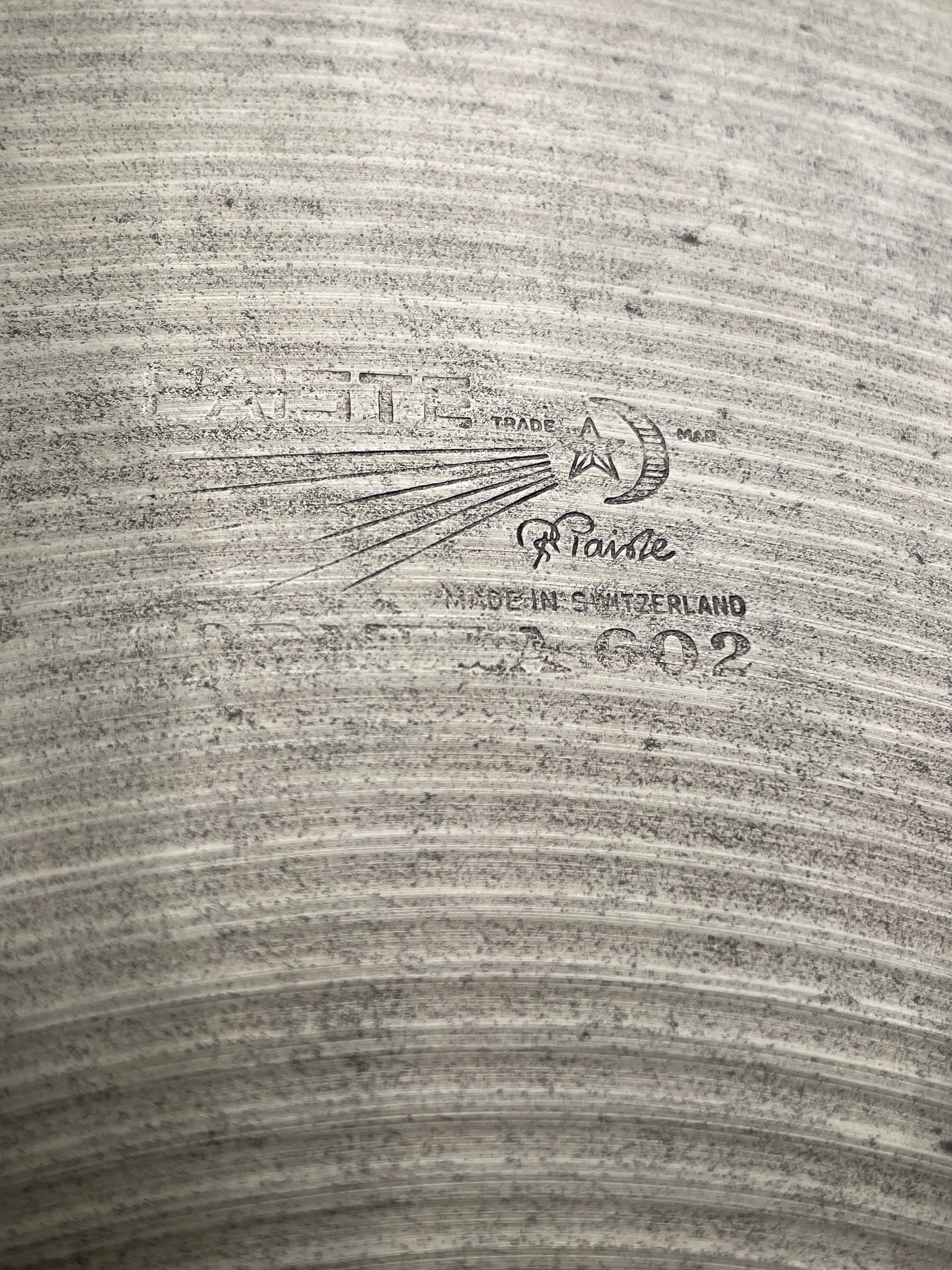 For your viewing pleasure is this vintage 20" Paiste Formula 602 ride cymbal from the 60s. This pre-serial B20 cymbal was made in Switzerland with the classic Formula 602 sound these cymbals are revered for. It's a clear, well balanced ride with a pure and musical tone. There are no cracks, bends, flea bites, or key hole. Weighs in at a lovely 2400 grams. Enjoy!