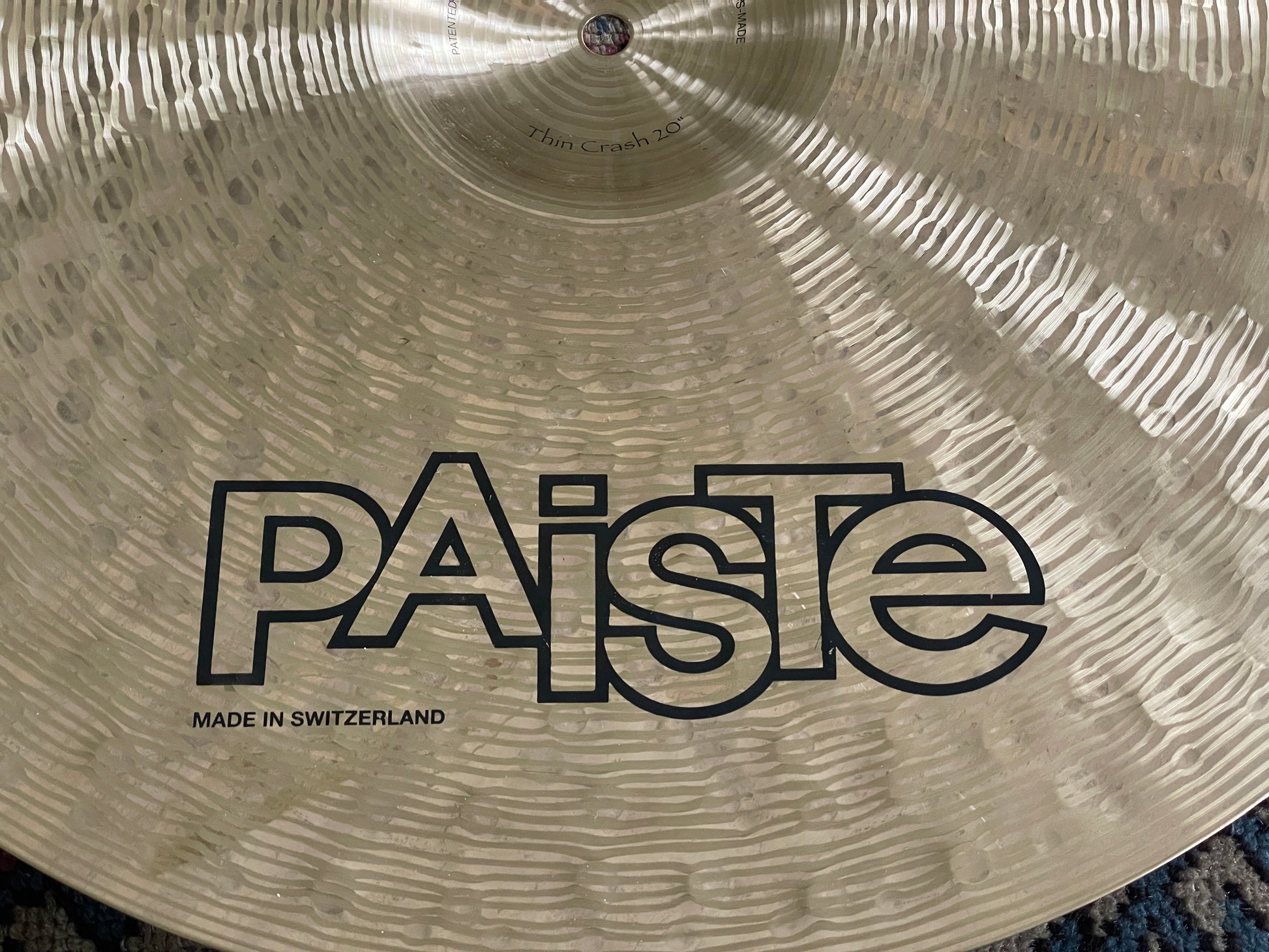 For your kind consideration is this 20" Paiste Signature Traditional Thin Crash. It's in great condition and sounds fantastic. Nearly new condition. Dark, transparent, warm. Loose frequency range, very complex mix. Very sensitive, soft response and feel. Suitable for light ride playing in larger sizes. No cracks, bends, flea bites, or keyhole. Weighs in at 1836 grams. Why pay $505 for a new 20" Paiste Signature Traditional Thin Crash when you could have this cymbal for a fraction of the price? Enjoy!
