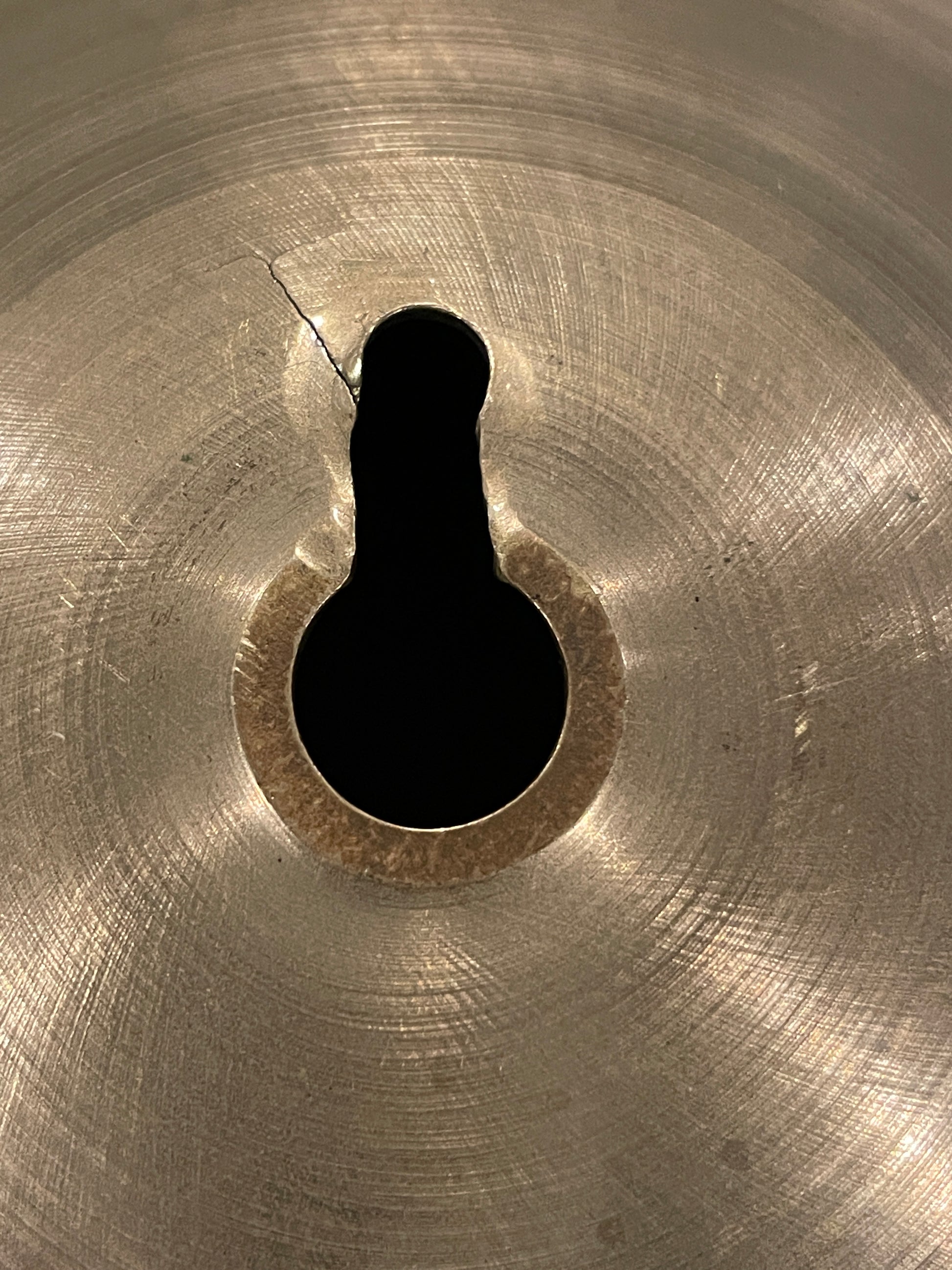 For your kind consideration is this vintage Zildjian A ride cymbal from the late 1950s. Despite its keyhole and small fissure near the hole, this cymbal will treat you right for many years and sound fabulous. Aside from the small crack by the hole, there are no other cracks, bends, or flea bites. This one weighs 2238 grams. Enjoy!