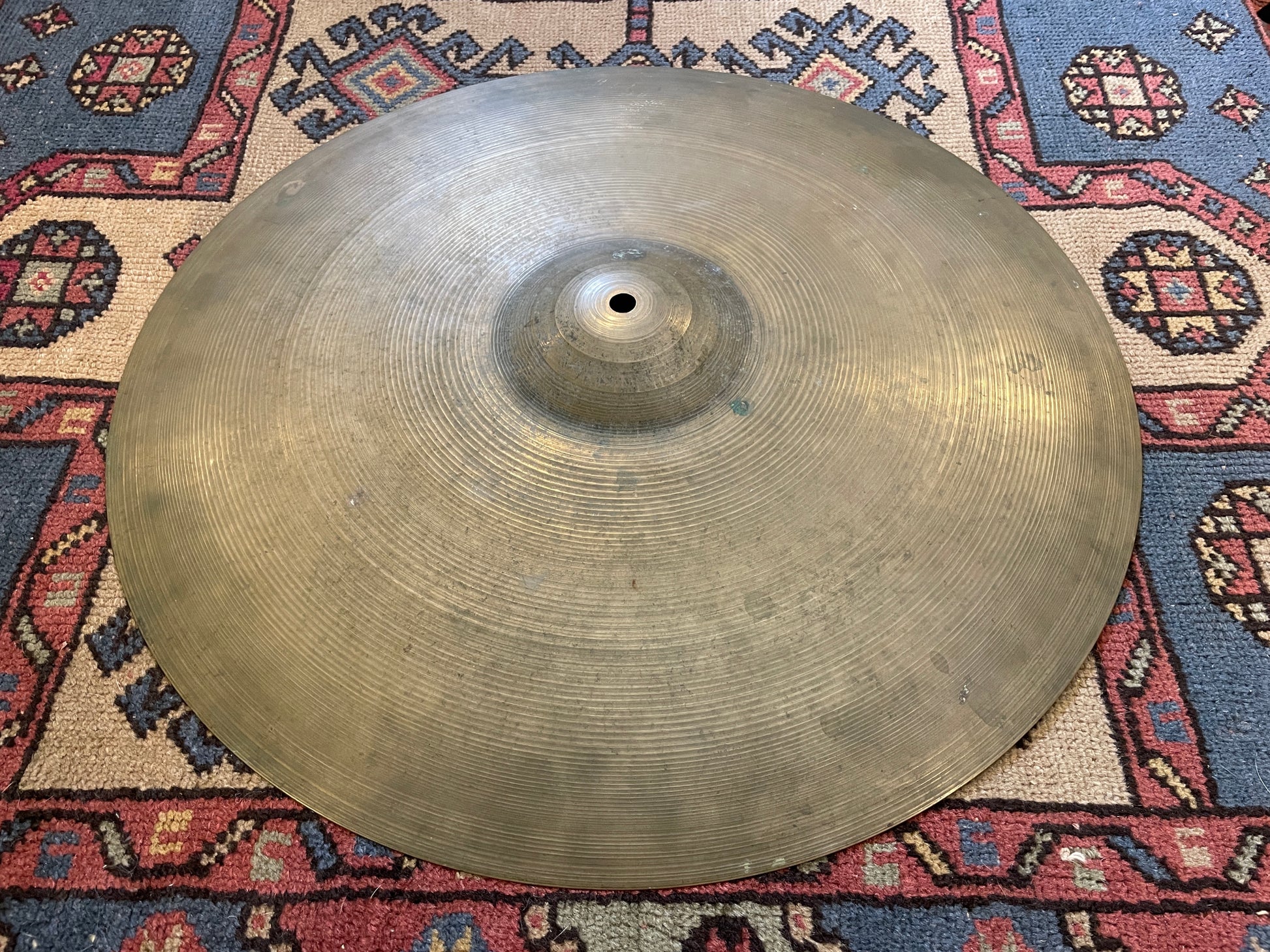 For your kind consideration is this vintage 20" Zildjian A ride cymbal from the 1950s. It's in great condition and sounds fantastic with nice sticking, pronounced musical bell tone, and a warm crash. No cracks, bends, flea bites, or keyhole. Weighs in at 2366 grams. Enjoy!