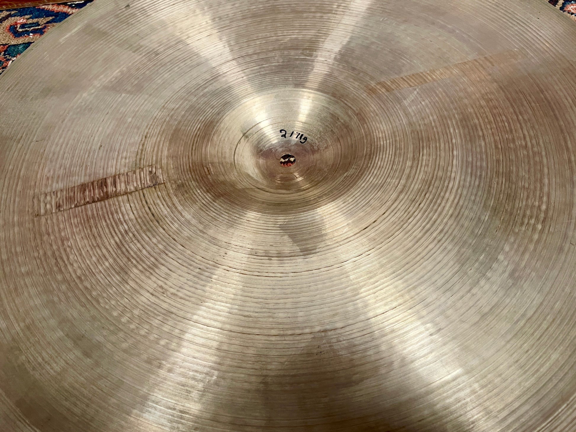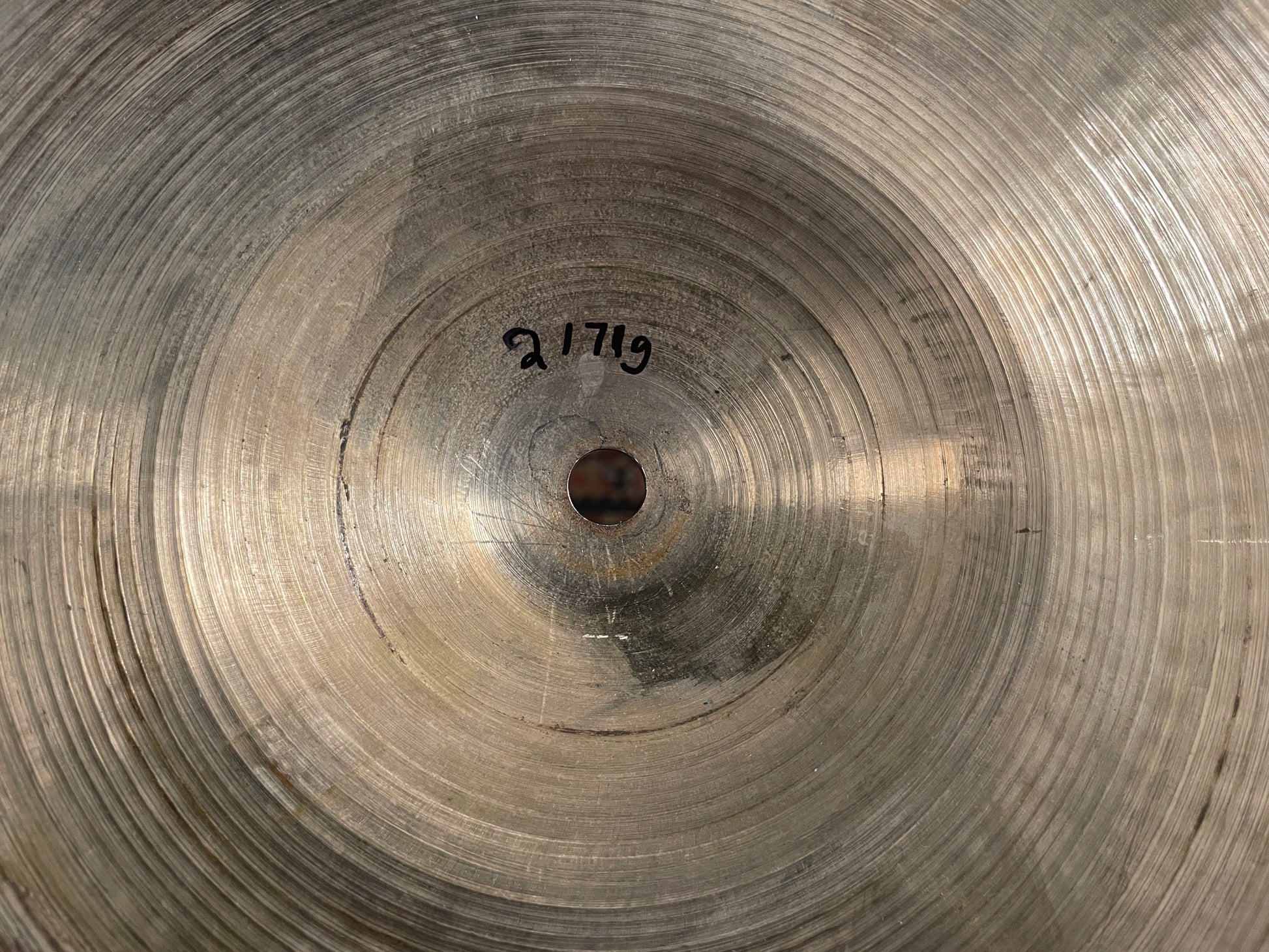For your kind consideration is this vintage Zildjian A 1950s Small Stamp ride cymbal. It's in great condition and sounds awesome. This ride has the quintessential sound you'd expect from a 50s Zildjian in this weight, clear and bright with a nice musicality and a strong bell. There is one minuscule flea bite that's almost not worth mentioning. No cracks, bends, or keyhole. Weighs in at 2171 grams. Enjoy!