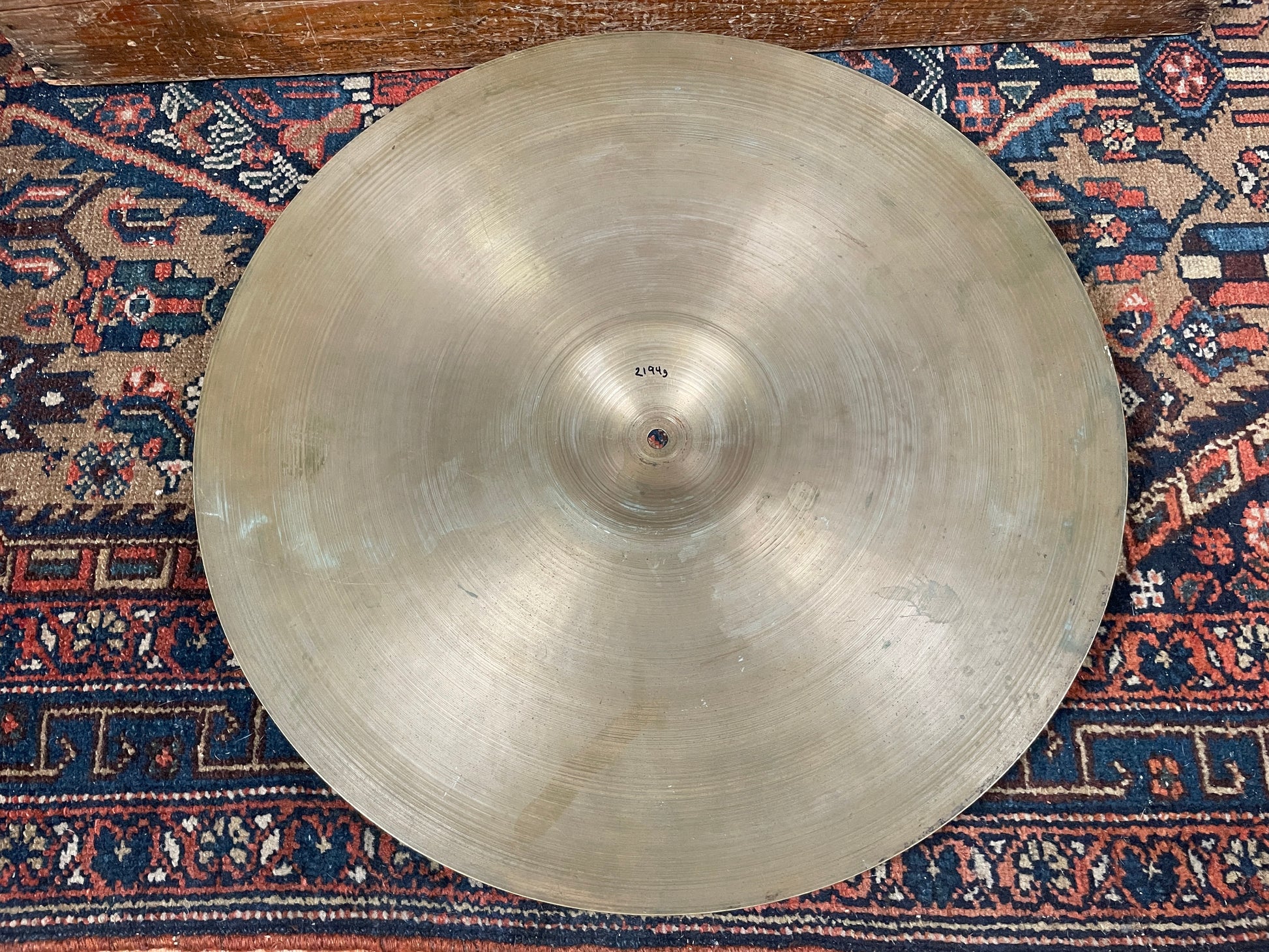 For your kind consideration is this 20" Zildjian A ride cymbal from the 1950s. It's in excellent condition overall with some nice patina and aging and sounds great. Clear stick definition, strong bell, and a full crash. No cracks bends, flea bites, and a near perfect hole. Weighs in at 2194 grams. Enjoy!