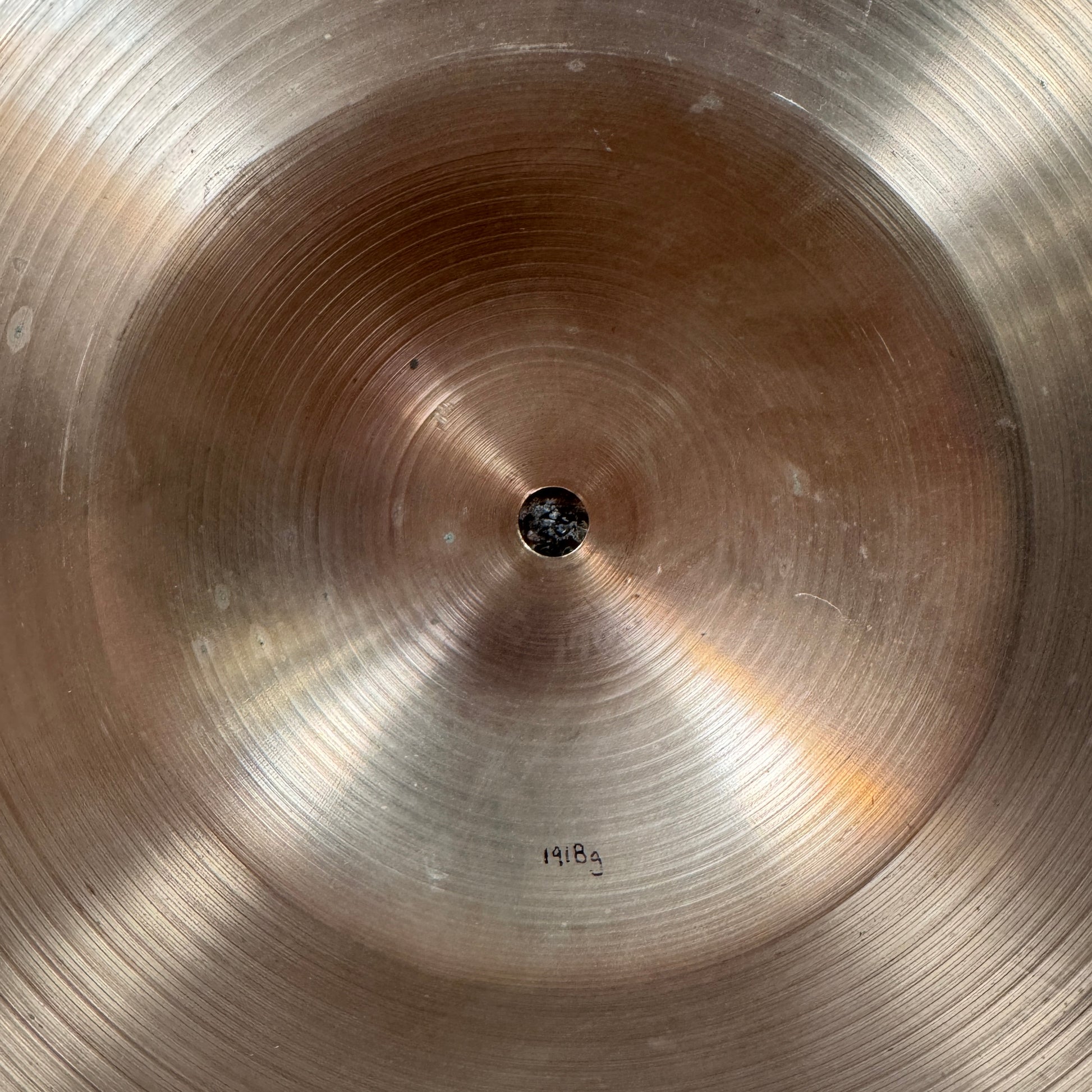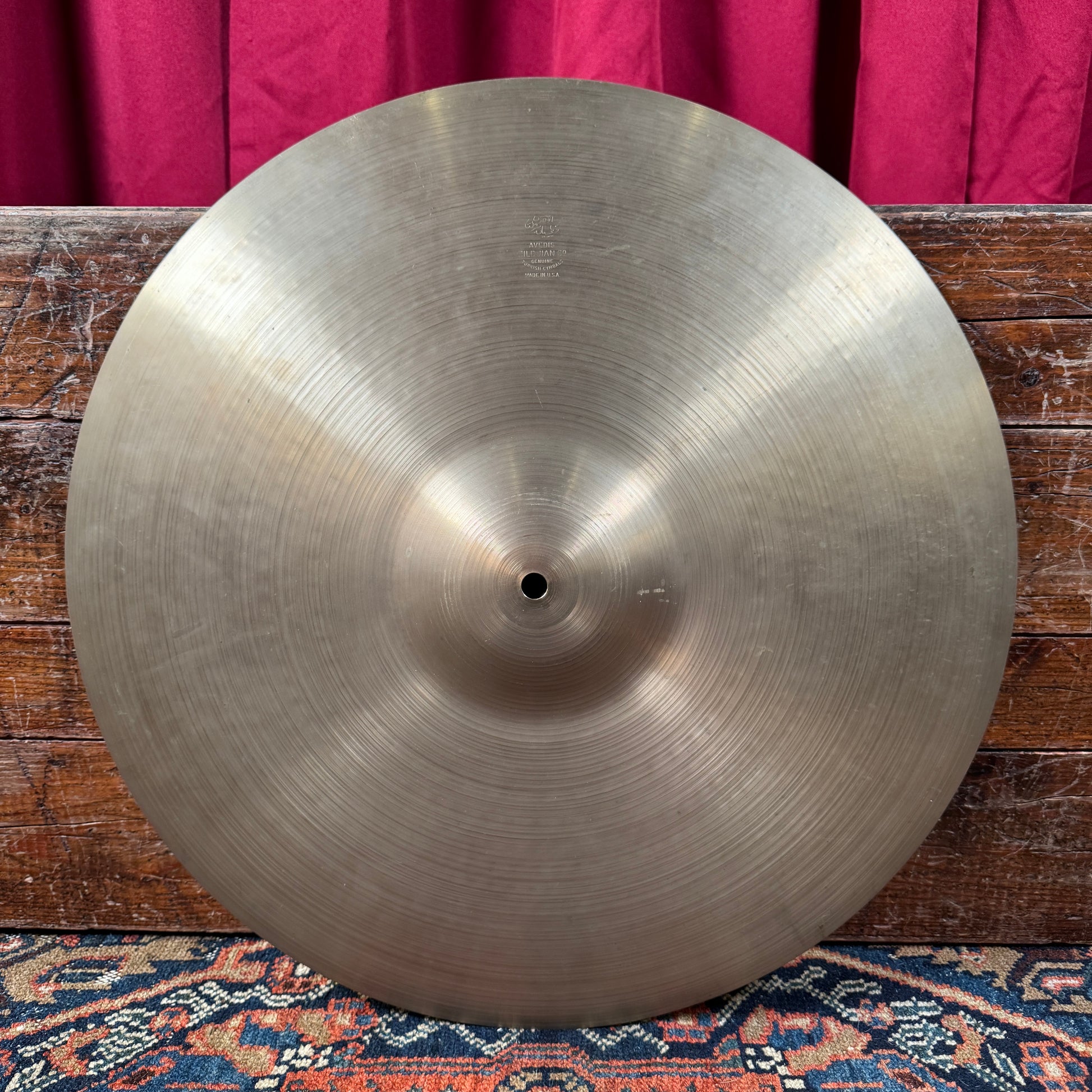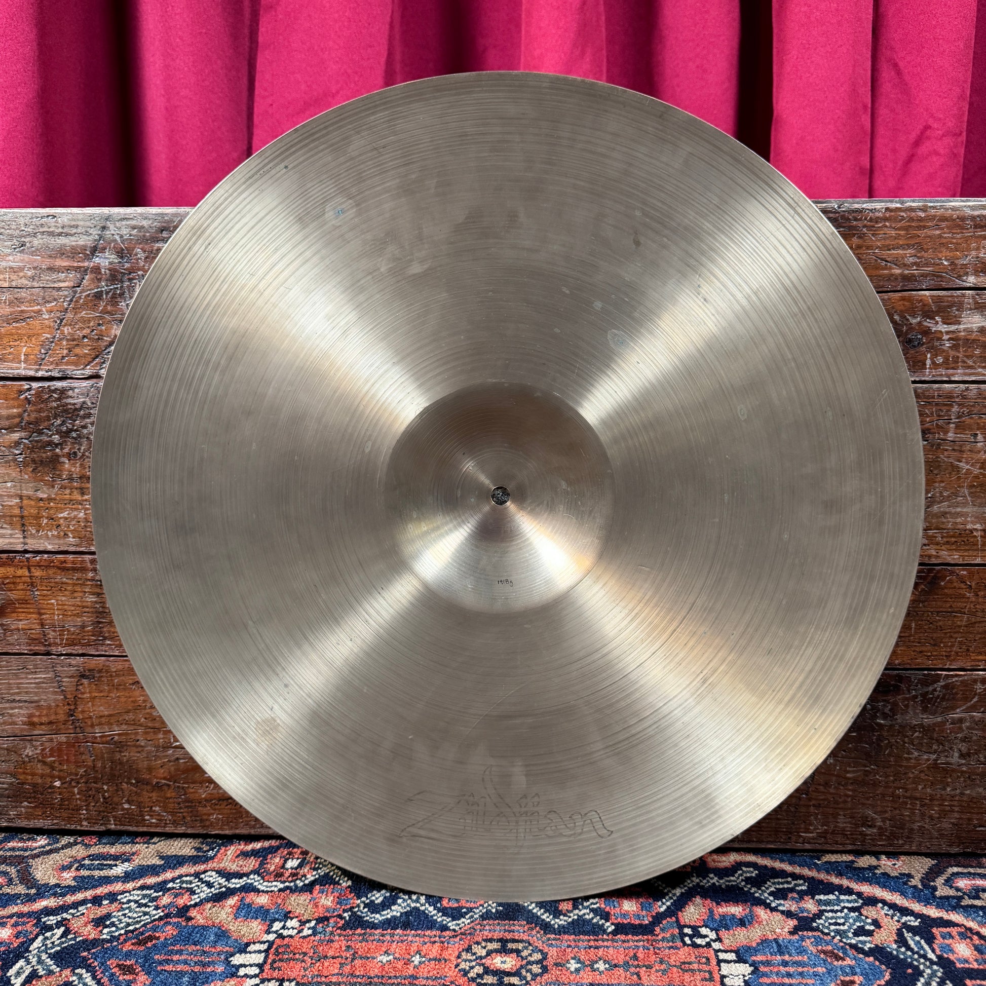 For your kind consideration is this vintage 20" Zildjian A cymbal from the 1970s. It's in fantastic condition and sounds wonderful. The hollow Zildjian ink stamp logo is still visible on the underside. This cymbal may have been sold as crash as it has a beautiful full, bright crash sound that would cut easily through heavy guitars. It also works great as a light ride with clear stick definition, just the right amount of "ping", and a loud bell. No cracks, bends, or keyhole and just a couple minuscule flea bites that can be felt more than seen. Weighs in at 1918 grams. Enjoy!