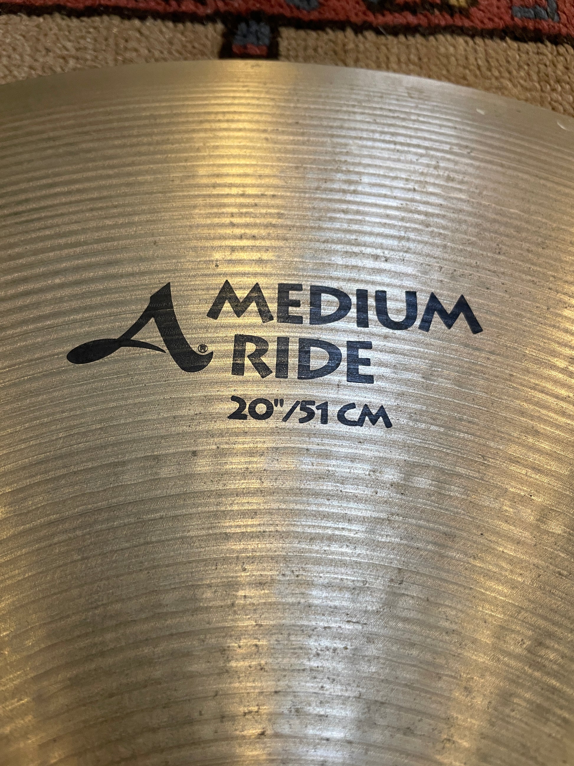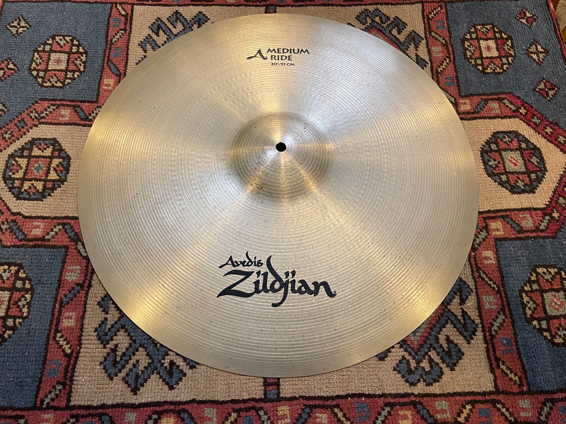 For your kind consideration is this 20" Zildjian A Medium Ride. It's in great condition and sounds fantastic. Bright ride cymbal with versatility for playing clear stick patterns and crashing accents. No cracks, bends, flea bites, or keyhole. Weighs in at 2518 grams. Why pay $349.95 for a new 20" Zildjian Medium Ride when you could have this superior sounding cymbal for a fraction of the price? Enjoy!