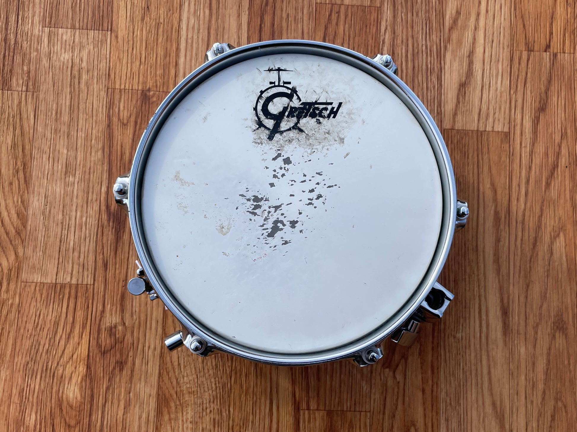 For your kind consideration is this Blackhawk by Gretsch 5.5x8 Mighty Mini steel snare drum from the early 2000s. It's all original down to the heads and wires and is in great condition with minimal wear, most of which is on the batter head. This little 6-lug snare features a 1.2mm steel shell with 1.6mm triple flange hoops and has a mounting bracket that fits a 12.7mm L-arm. Most importantly it tunes up easily and sounds awesome. Awesome compact popcorn snare that cracks! Enjoy!