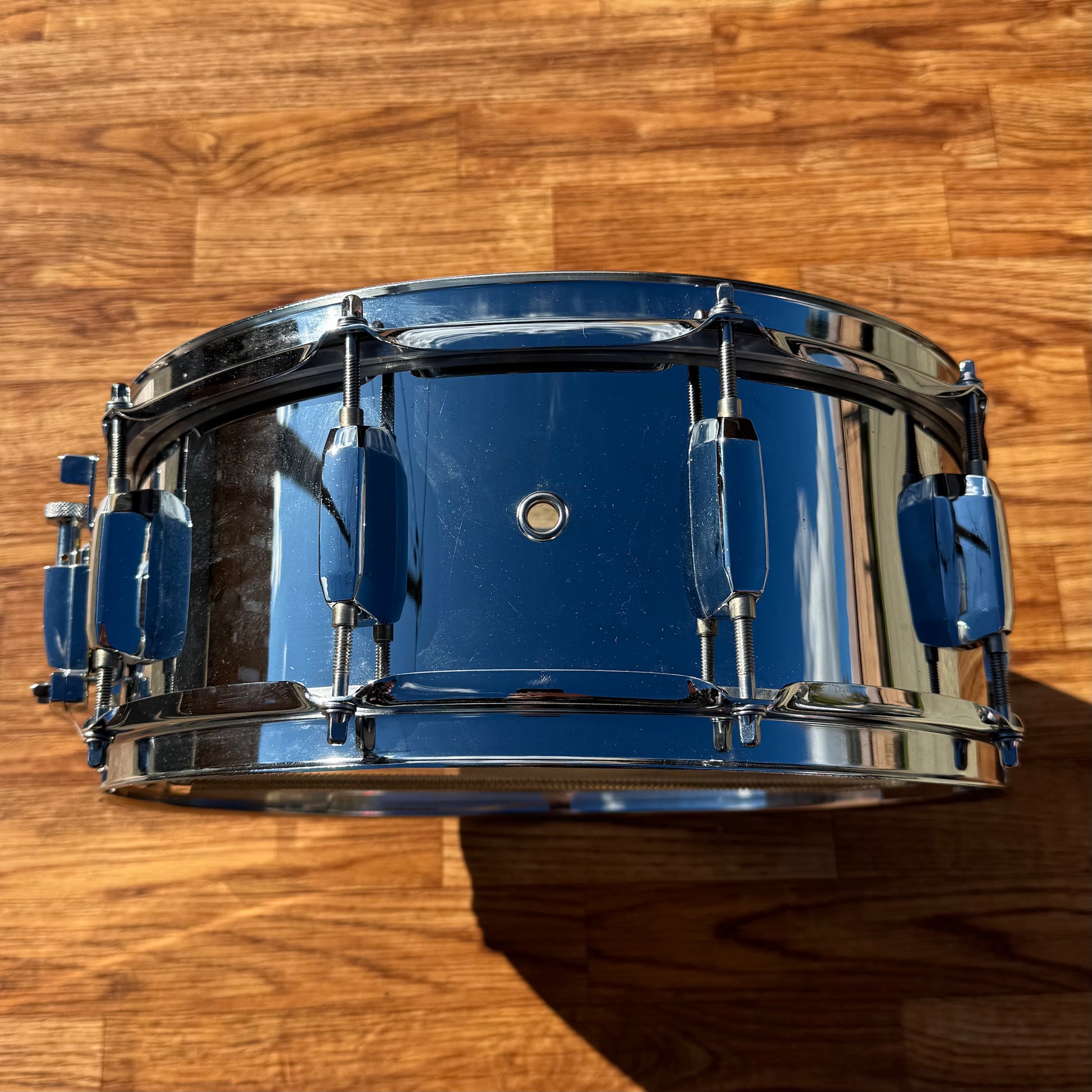 For your kind consideration is this Pearl Steel 5x14 snare drum from the 2000s. It's in excellent condition with minimal signs of age on the chrome over steel shell as shown. It is all original aside down to the heads and wires. The strainer and internal muffler are both fully functional. These snares are an exceptional bang for the buck ad this one tunes up with ease. Enjoy!