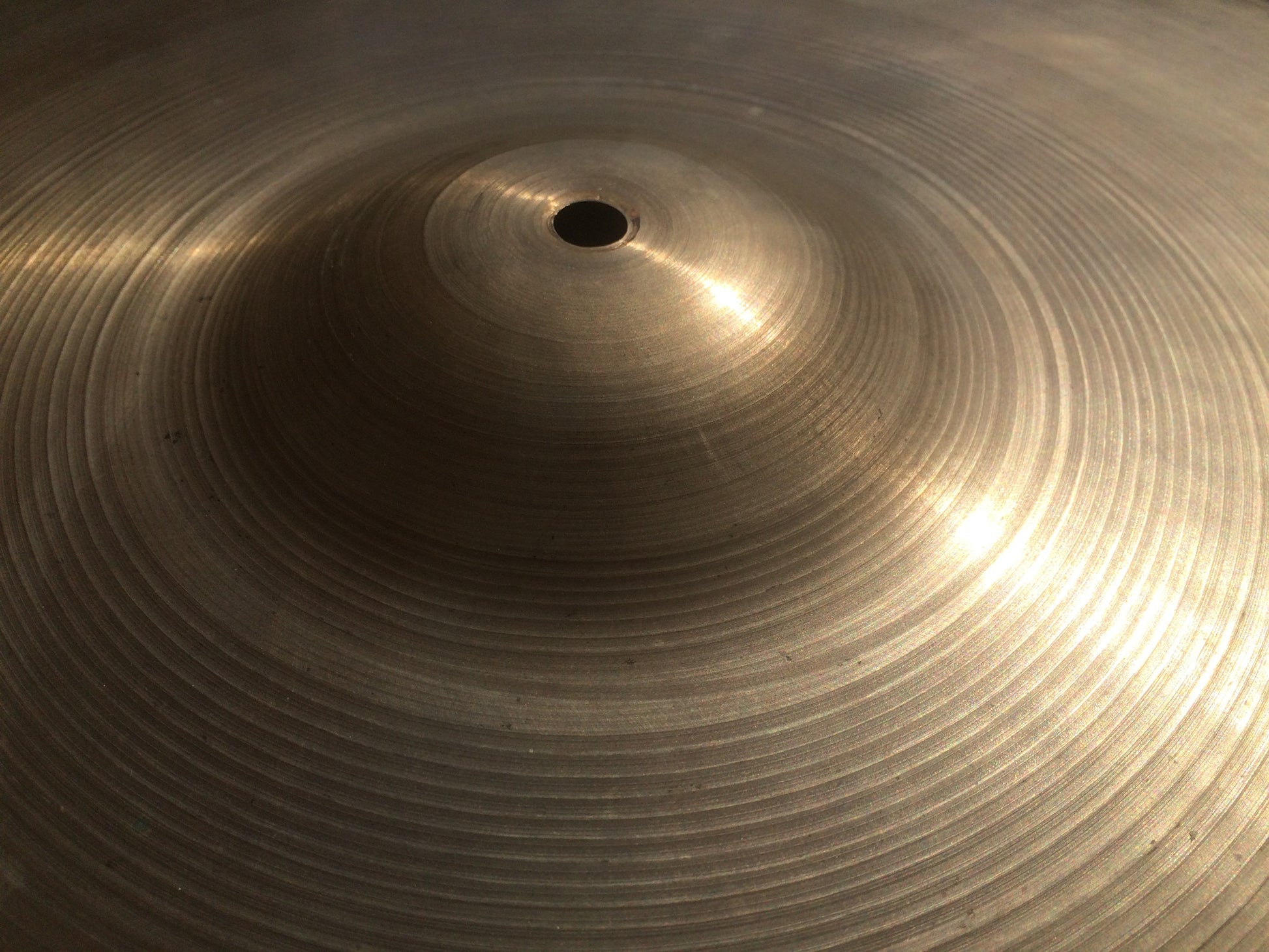 This is a beautiful 21" Zildjian Trans Stamp Ride cymbal from the late 40's/early 50's. It's in great shape with no key-holing, flea bites or bends. It conveys a nice even & controlled stick tone with pleasant & musical sounding bell & full deep crash. This is a great weight on a great cymbal from the best era of A cymbals. These late 40's/early 50's Trans Stamp A's provide the closest tone pallet to an old K of the same era more so then any of the other eras of A's. Nice hand hammering on the bottom.
