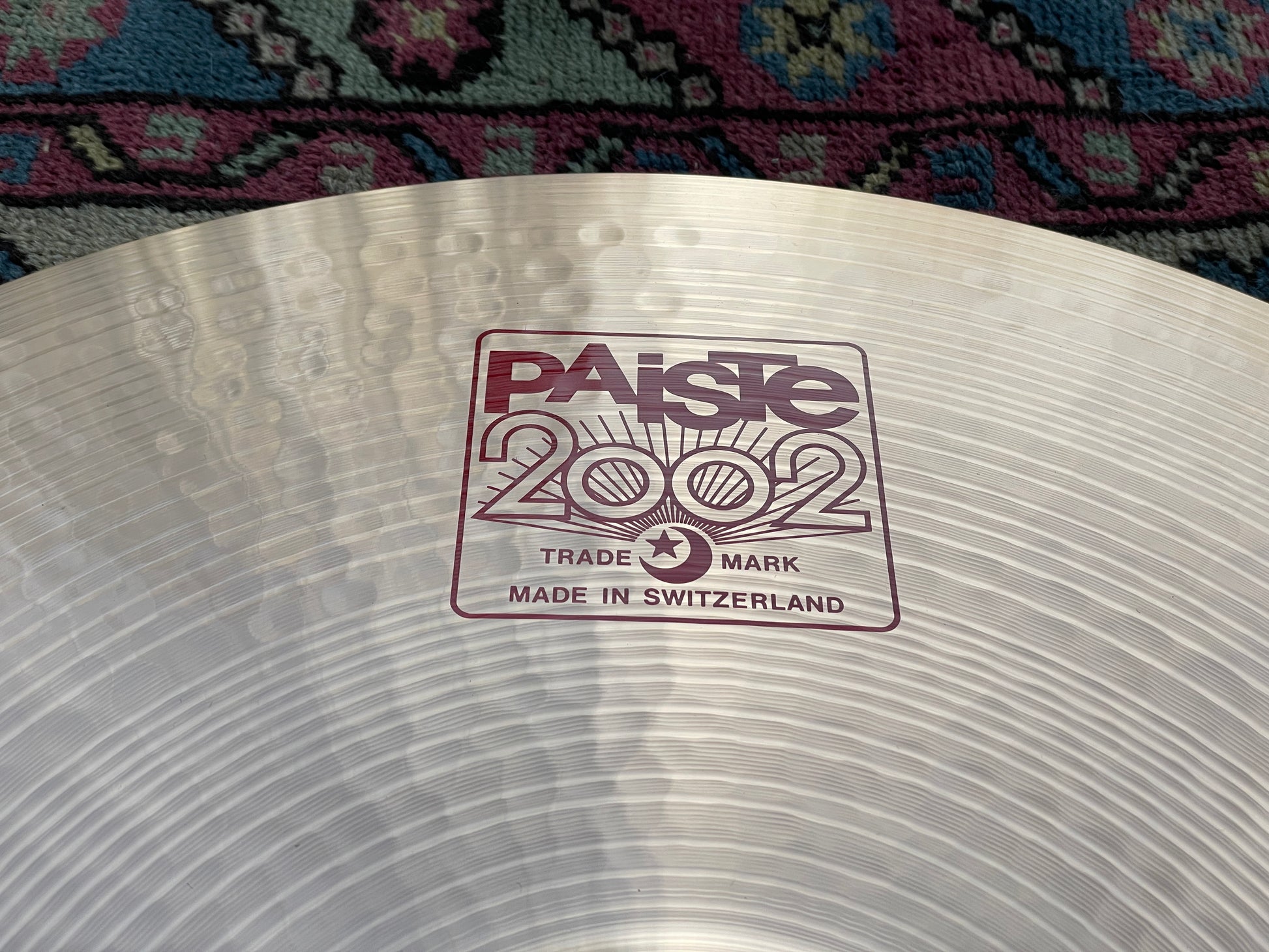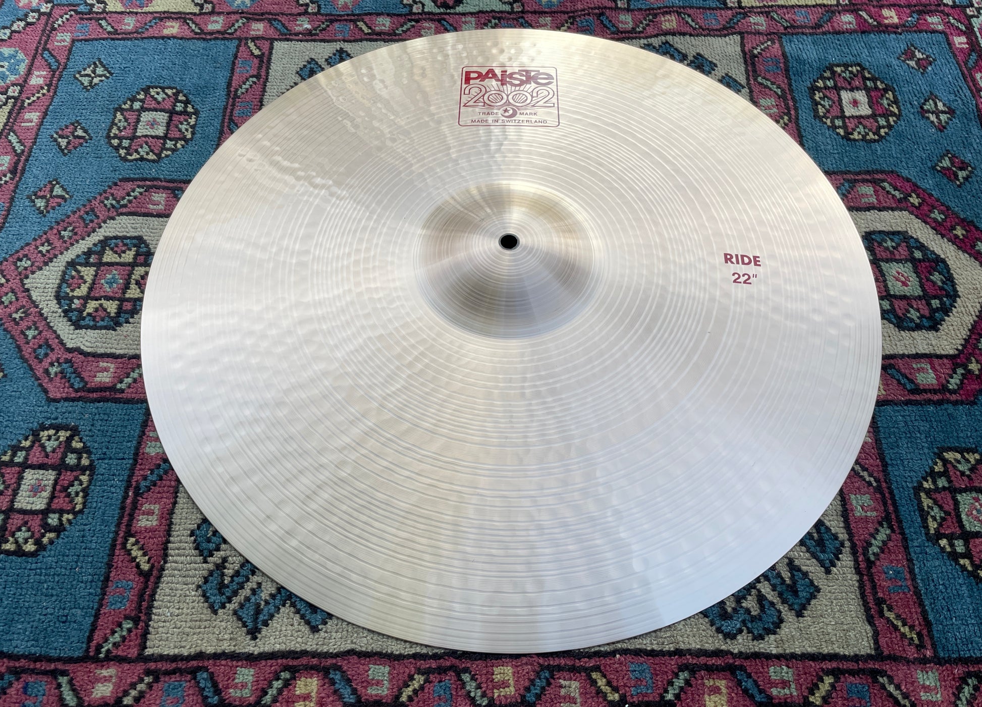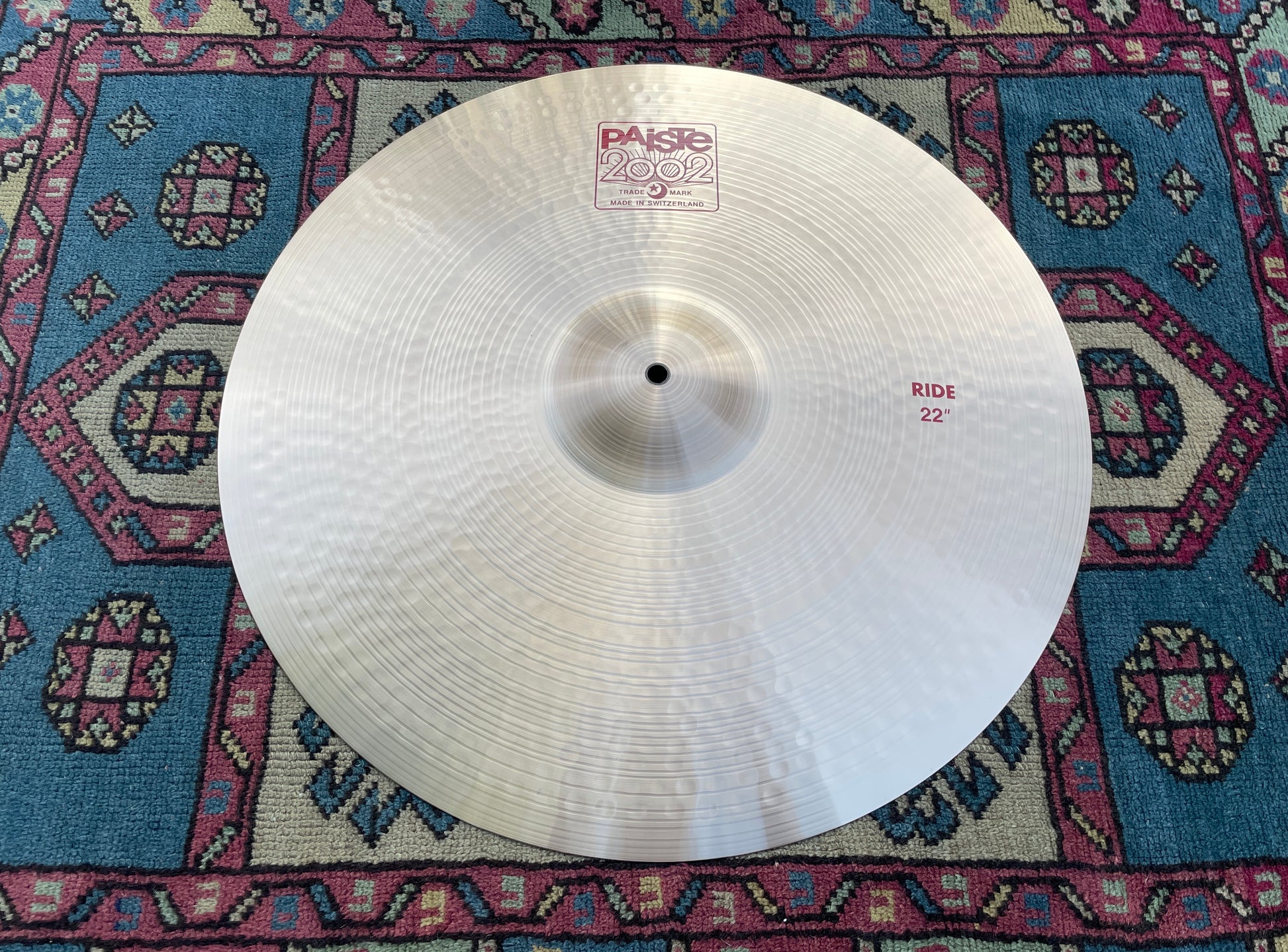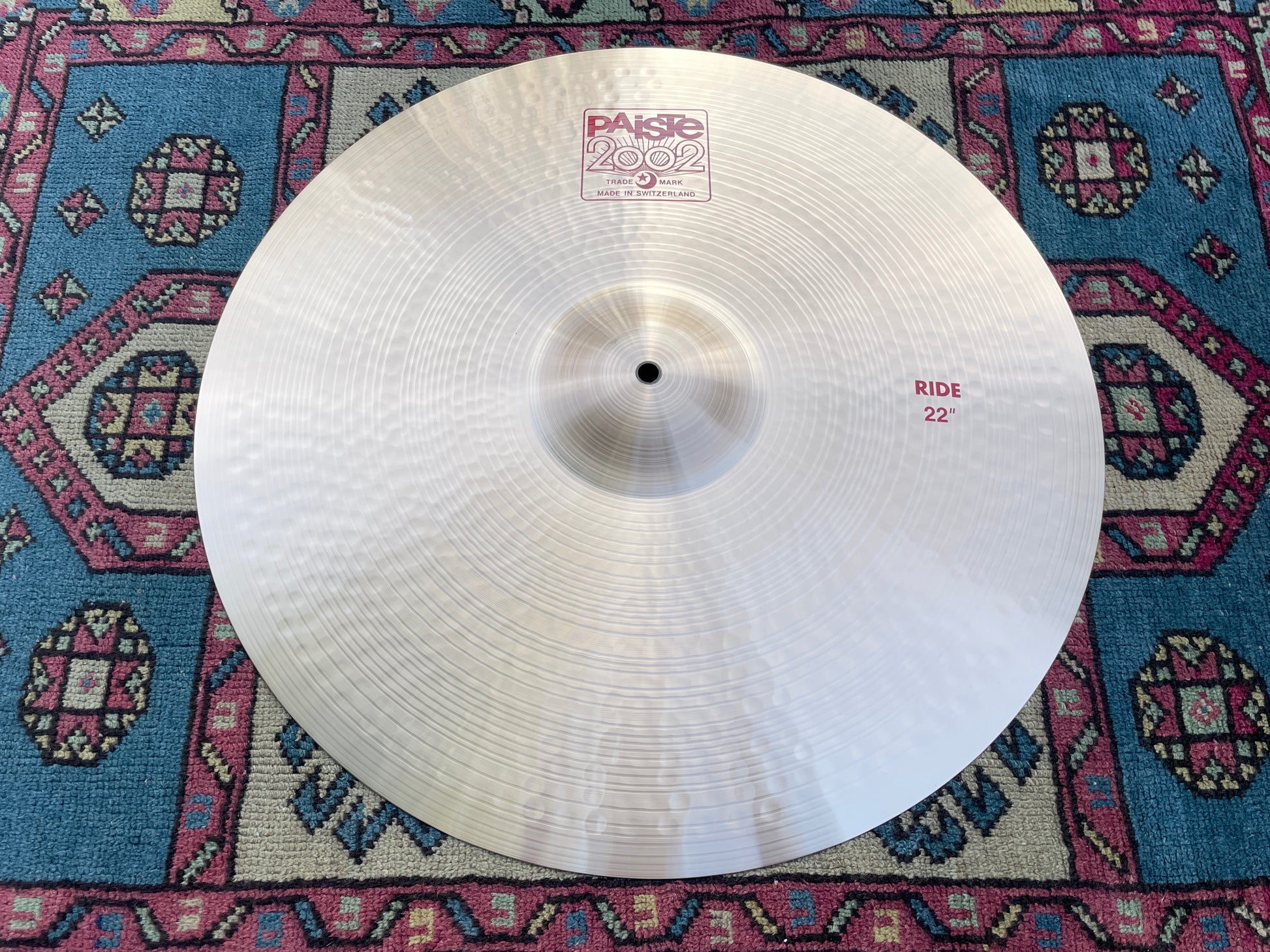 For your kind consideration is this 22" Paiste 2002 ride cymbal. It's in near mint condition and sounds gorgeous. Warm, full, lively, brilliant. Wide range, clean mix. Even, balanced feel. Clear defined ping over full, clear wash. Versatile general purpose ride. Extremely classic rock ride sound. No cracks, bends, flea bites, or keyhole. Weighs in at 3244 grams. Why pay $445 for a new 22" Paiste 2002 ride when you could have this one for a fraction of the price? Enjoy!
