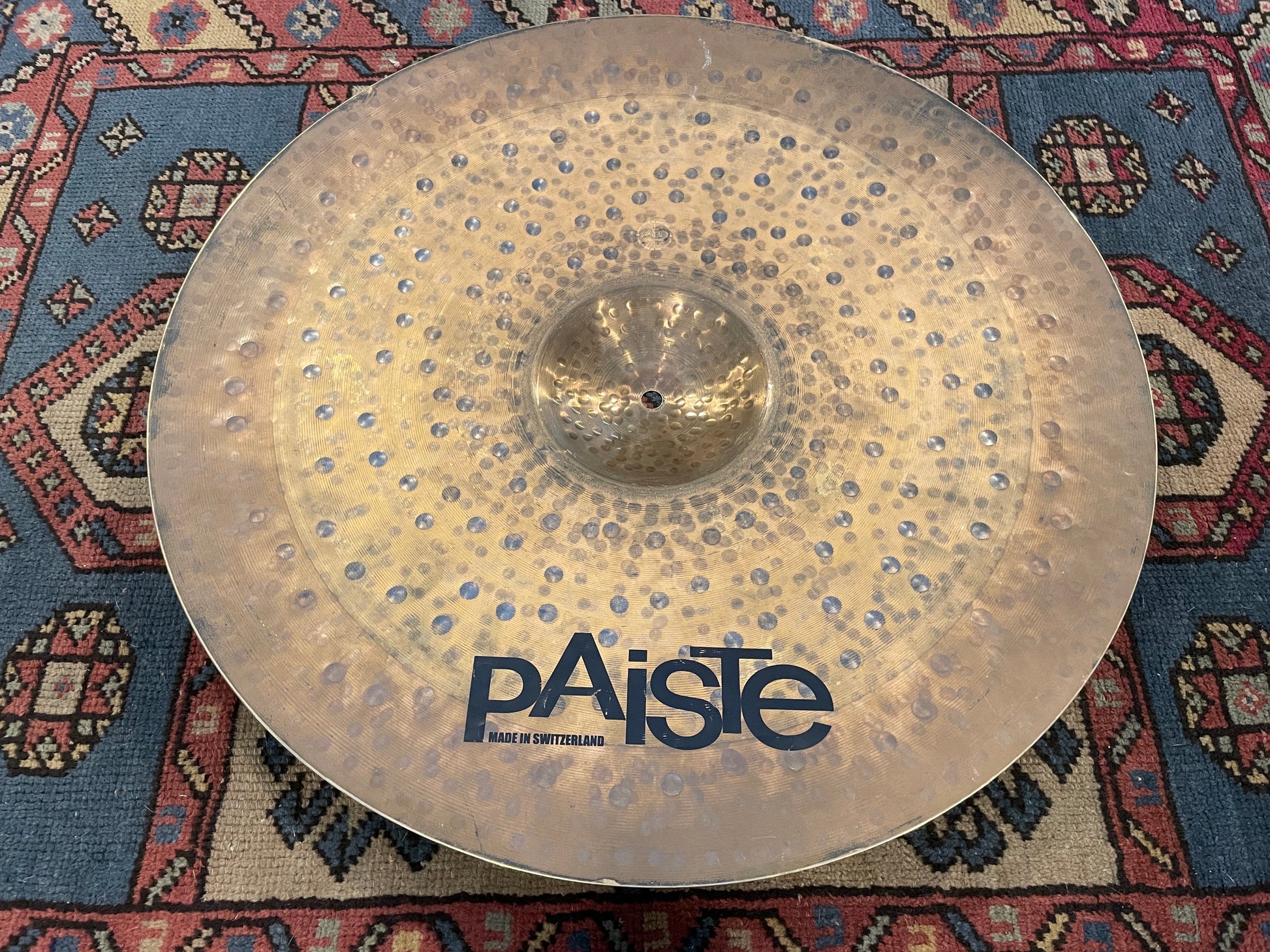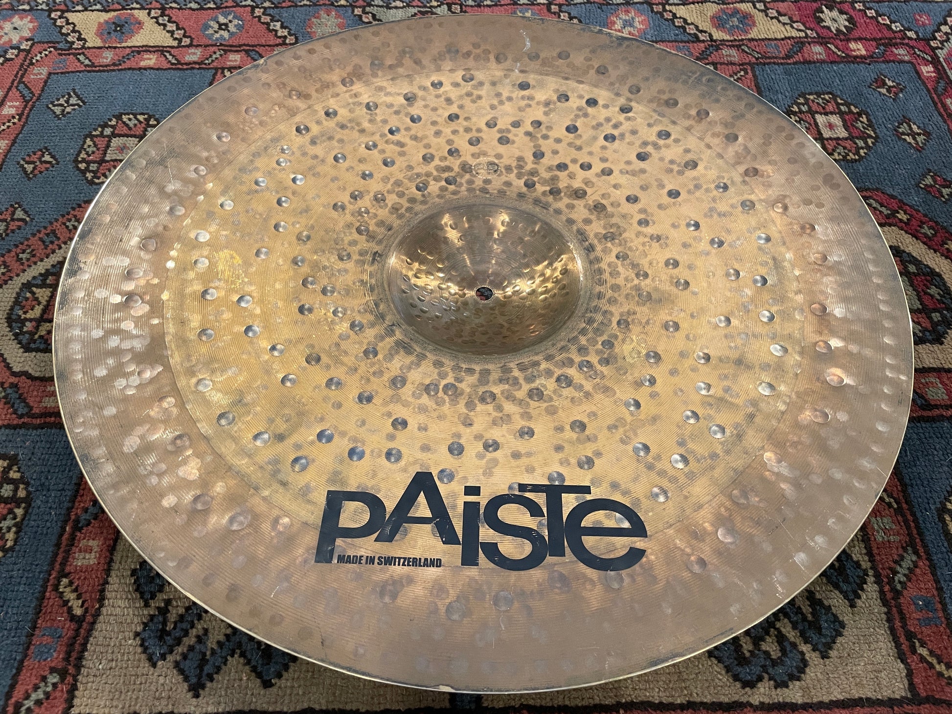 For your kind consideration is this 22" Paiste Signature Dark Energy Ride Mark I. It's in great condition and sounds fabulous. A fusion of darkness, energy, projection, and brilliance. Very wide range, complex, musical mix. Responsive feel, extremely controllable. Woody, silvery, spanky ping over crunchy, thriving wash. Extremely versatile, flexible ride for wide ranging application in modern blended music styles. Mark I: Tends to be a bit quieter, darker and drier. This manifests itself in the overall sound character and in particular in the bell and ping sound. No cracks, flea bites, or keyhole, two cosmetic edge bends that do not affect the sound. Weighs in at 3044 grams. Why pay $605 for a new 22" Paiste Signature Dark Energy Ride Mark I when you could have this cymbal for a fraction of the price? Enjoy!